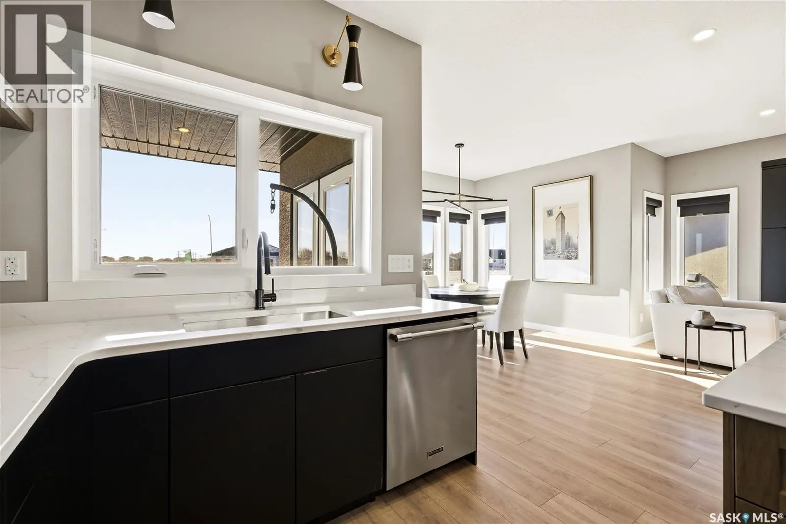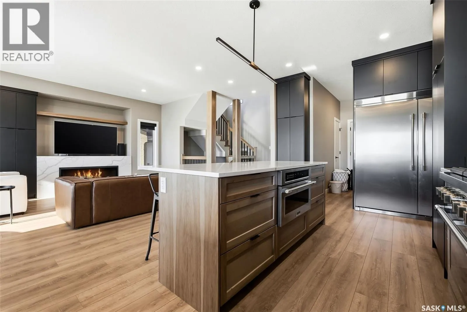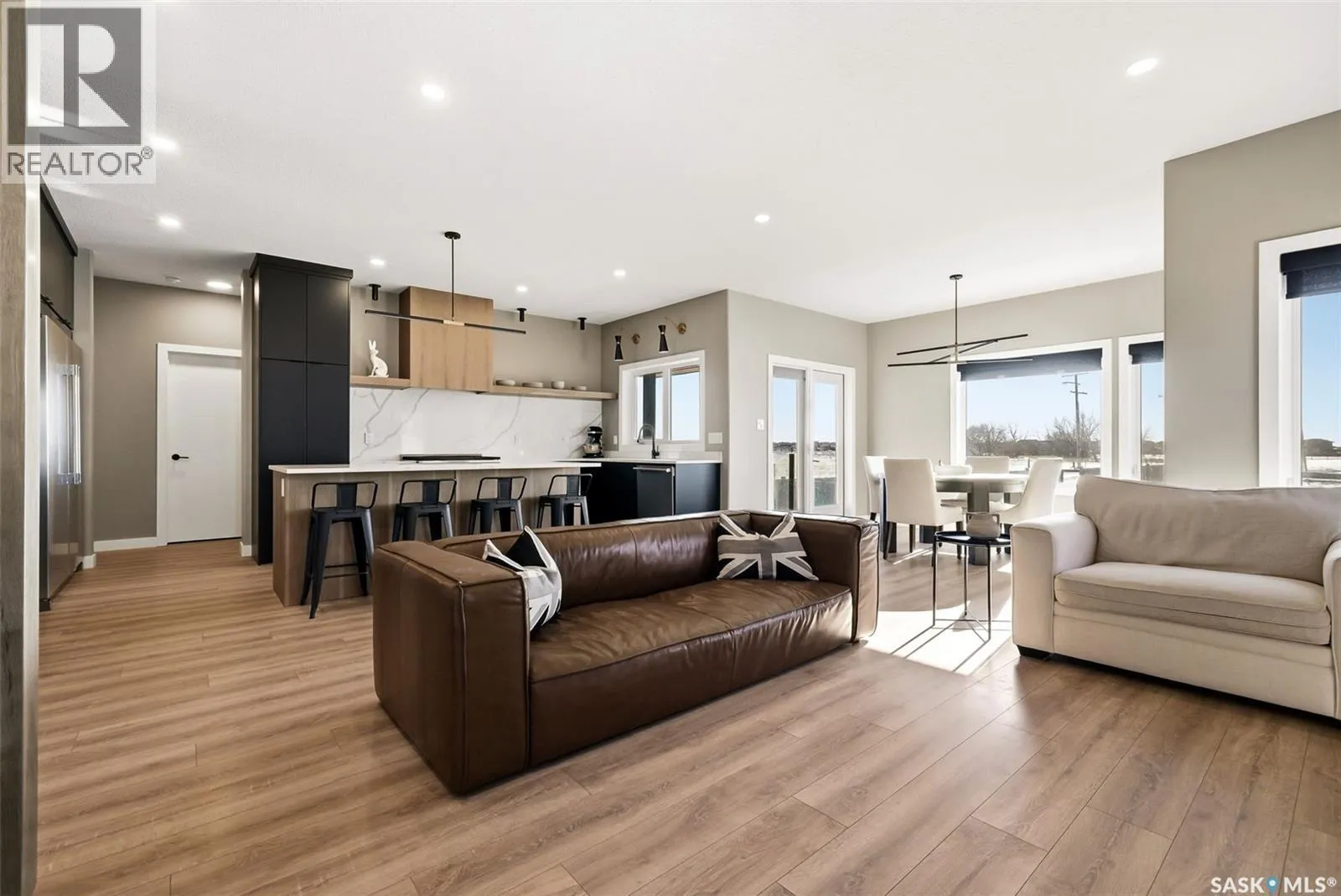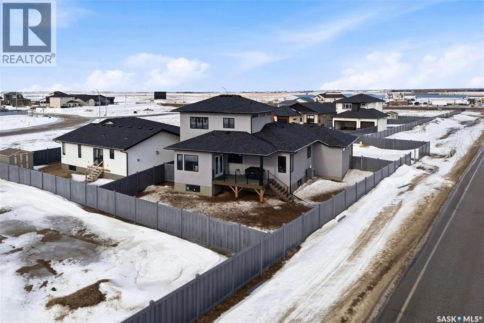 Welcome to 13 Plains Green, a stunning 2025 custom-built Scandinavian modern home located in the sought-after community of Pilot Butte. This thoughtfully designed bunga-loft style two-storey blends modern architecture with warm, functional living. The home features a unique and highly desirable layout with a private primary suite upstairs, creating a peaceful retreat complete with a spacious bedroom and spa-inspired ensuite. On the main floor, youâll find two additional bedrooms, ideal for family, guests, or a home office; perfect for those seeking main-level living without sacrificing space. Designed with intention and quality throughout, the home features 9â ceilings on all three levels, enhancing the sense of space and light. Clean lines, expansive windows, and a neutral Scandinavian palette fill the open-concept main living area, making it ideal for both everyday living and entertaining. The chef-inspired kitchen is equipped with a 6-burner gas range and a double-wide, side-by-side refrigerator and freezer, combining style with serious functionality. The home is solar power ready and includes a natural gas BBQ hookup, offering future-forward efficiency and convenience. Step outside to a covered back deck, perfect for year-round enjoyment, all within a fully fenced yardâideal for kids, pets, or private outdoor living. The north side of the lot offers additional space, well-suited for a large shed or other desired use, adding flexibility and future potential. An extra-wide concrete walkway leads to the front door, enhancing curb appeal and creating a welcoming first impression. A triple attached garage provides ample space for vehicles, storage, and recreation. Located on a quiet street in a growing community just minutes from Regina, Pilot Butte offers small-town charm with city convenience. Modern. Functional. Timeless. 13 Plains Green is a rare opportunity to own a truly distinctive new build in one of Saskatchewanâs most desirable bedroom communities. (id:27476)