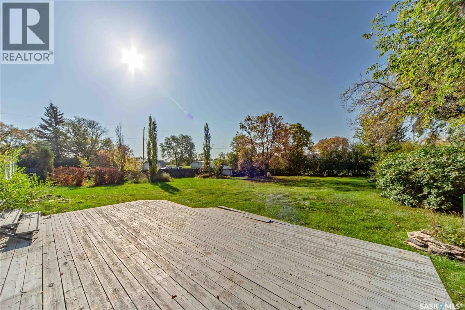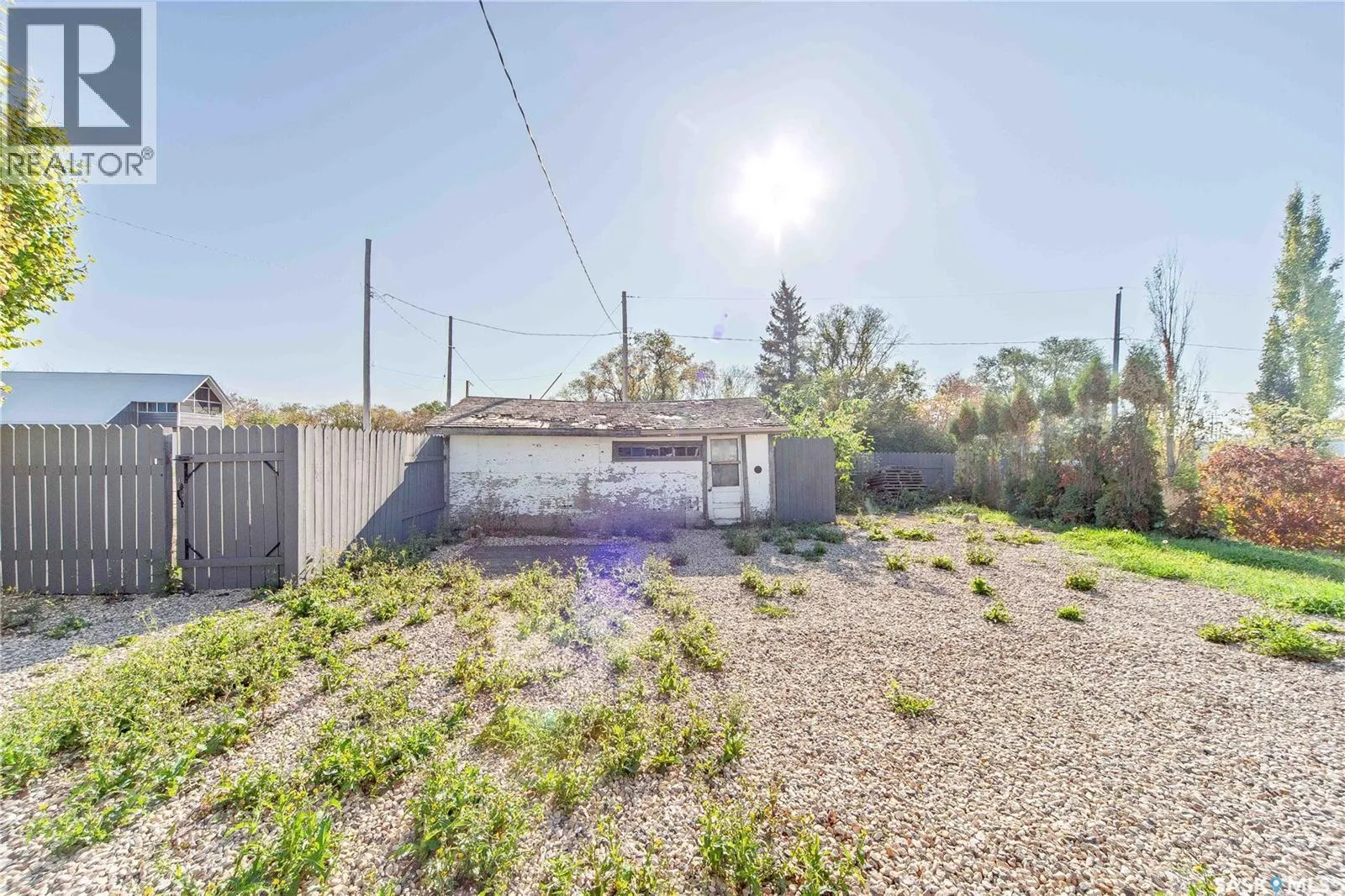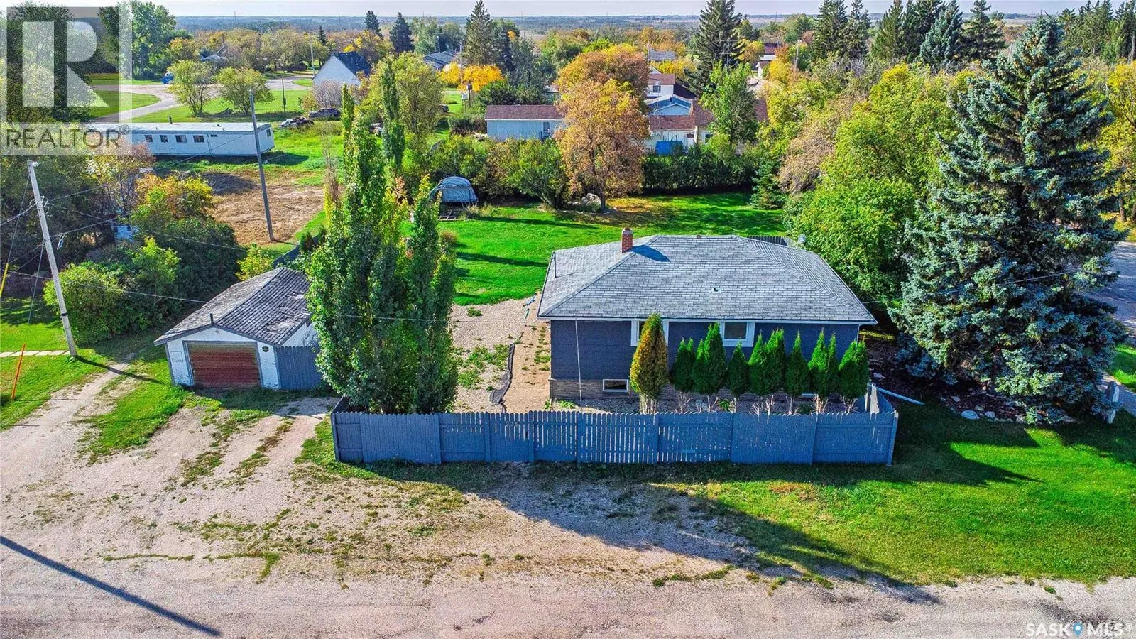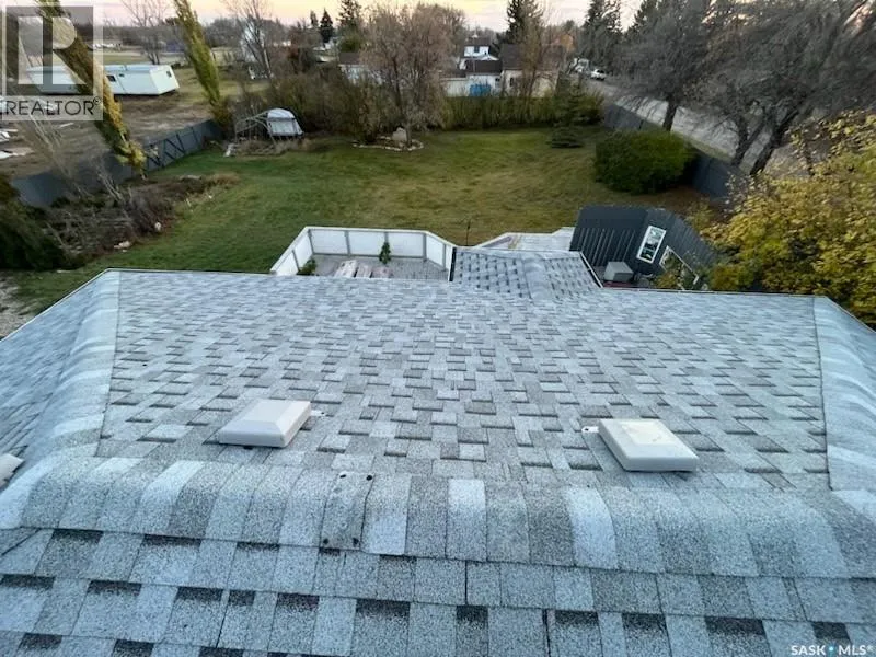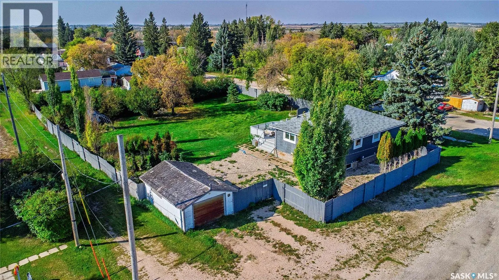 2 + 1 bedroom, 1 bathroom bungalow situated on 4 lots (total of 120' x 165') in the community of Plunkett. Quaint but well situated just 20 minutes from the Colonsay & Lanigan mine sites, 20 minutes from Lanigan, just under one hour from Saskatoon & within 80km of the world-class Jansen Lake project & future mine site. School bus to Viscount. New shingles have just been installed (see photos) along with some repairs to roof sheathing. Good layout with lots of potential, large living & dining area, some vinyl-frame windows, newer kitchen & bathroom, huge deck constructed in 2019 (according to SAMA) facing the vast back yard space. Basement is mostly unfinished, has 1 bedroom completed and another one started, bathroom is framed with a toilet installed, lots of storage space and potential for a rec room to be finished. There is a garden area and patio stone fire pit area that could be revitalized with some clean up. Property is being sold as-is, where-is, no disclosure statement available. (id:27476)