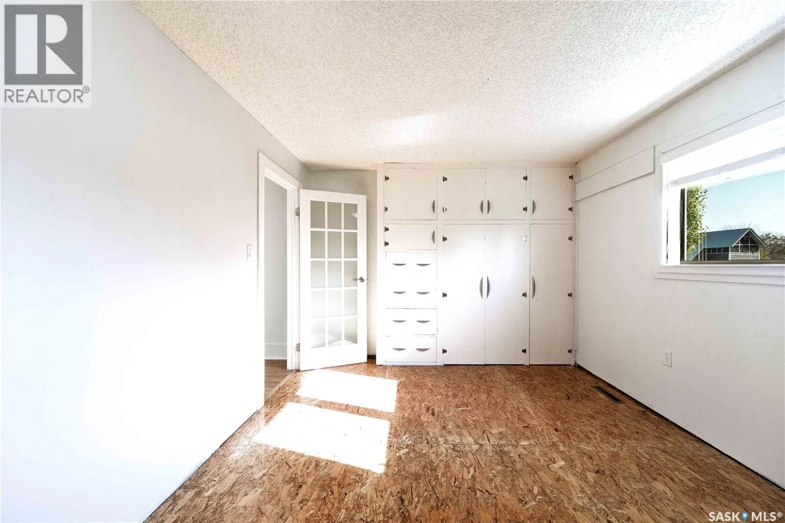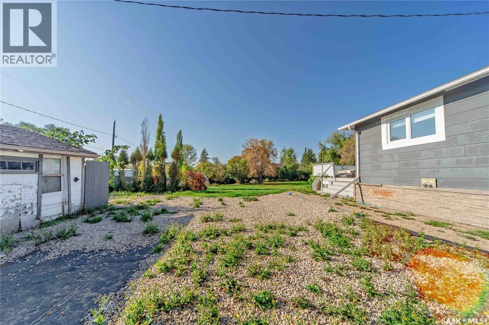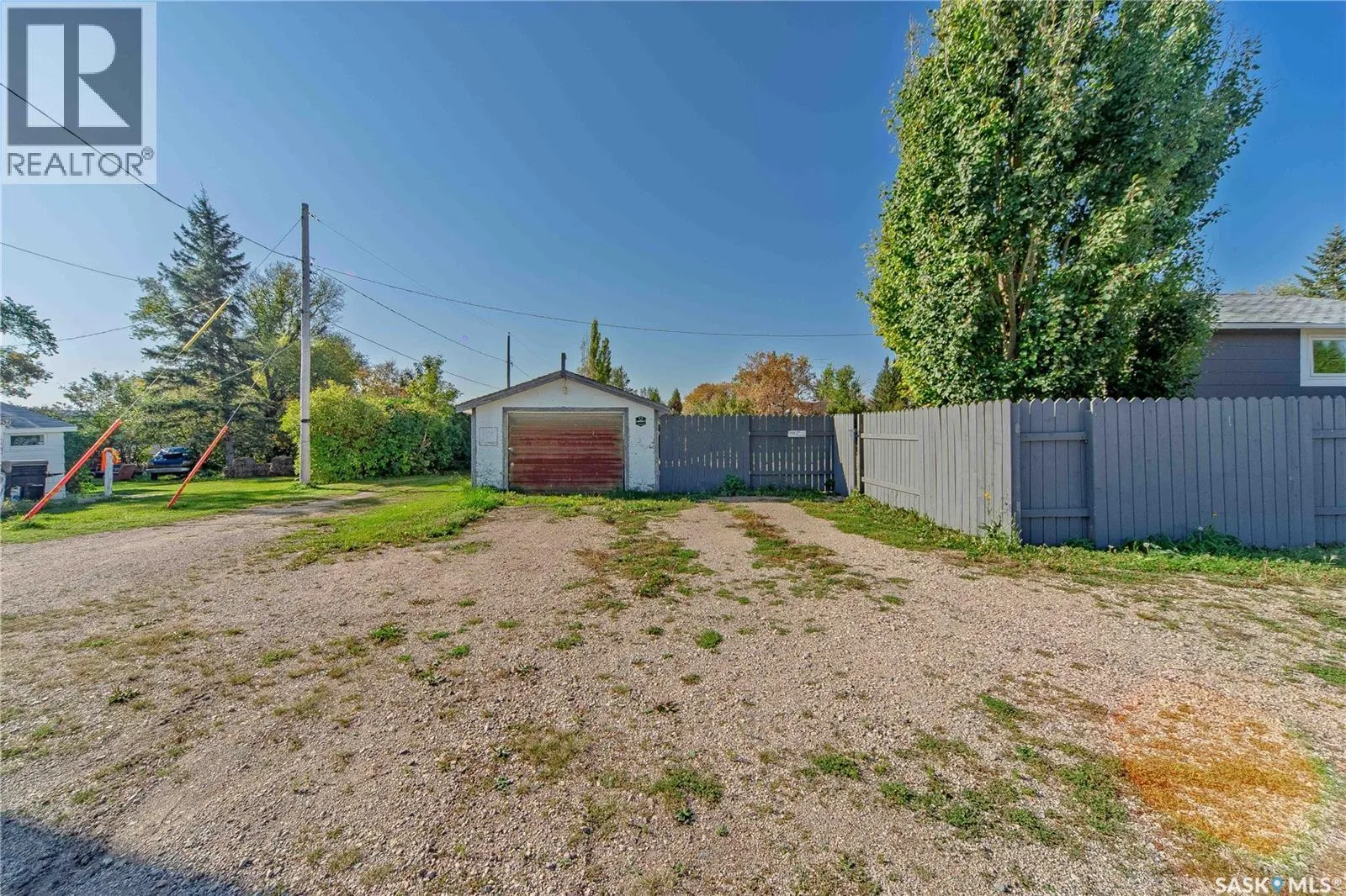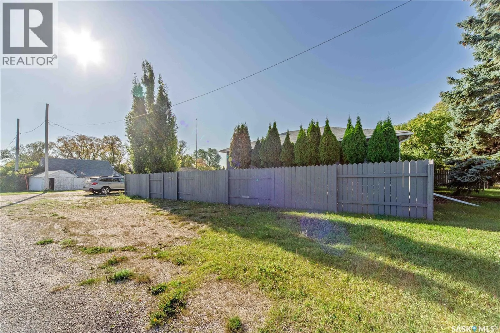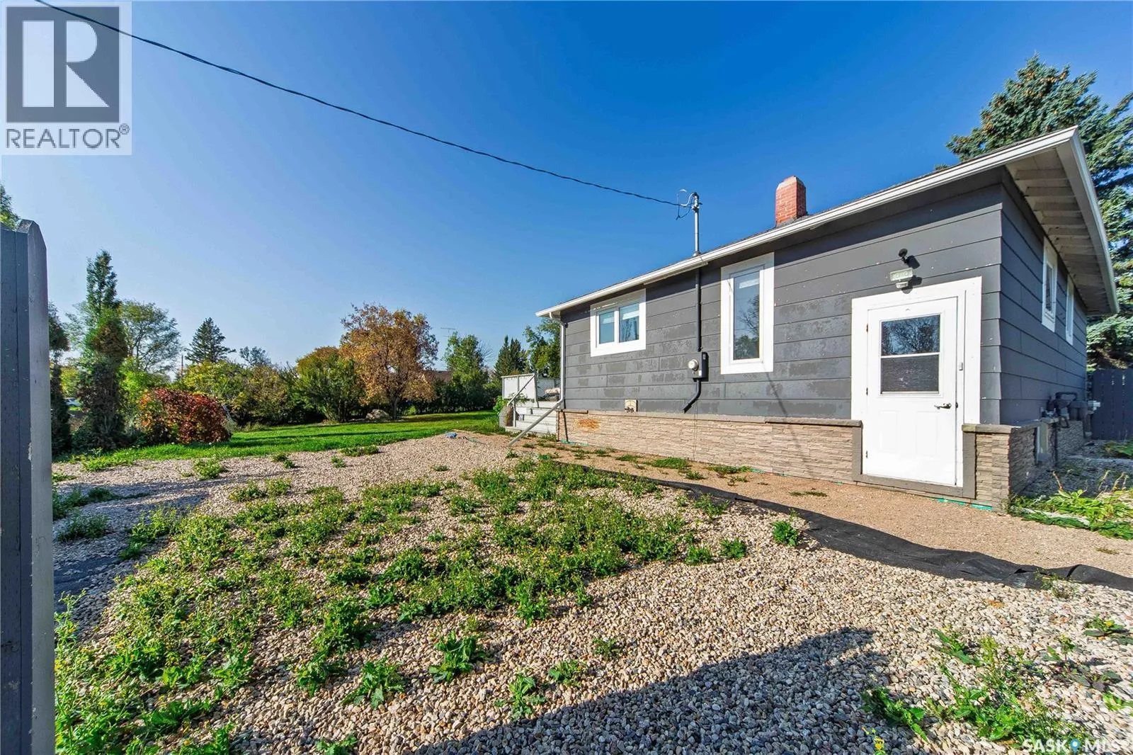 2 + 1 bedroom, 1 bathroom bungalow situated on 4 lots (total of 120' x 165') in the community of Plunkett. Quaint but well situated just 20 minutes from the Colonsay & Lanigan mine sites, 20 minutes from Lanigan, just under one hour from Saskatoon & within 80km of the world-class Jansen Lake project & future mine site. School bus to Viscount. New shingles have just been installed (see photos) along with some repairs to roof sheathing. Good layout with lots of potential, large living & dining area, some vinyl-frame windows, newer kitchen & bathroom, huge deck constructed in 2019 (according to SAMA) facing the vast back yard space. Basement is mostly unfinished, has 1 bedroom completed and another one started, bathroom is framed with a toilet installed, lots of storage space and potential for a rec room to be finished. There is a garden area and patio stone fire pit area that could be revitalized with some clean up. Property is being sold as-is, where-is, no disclosure statement available. (id:27476)