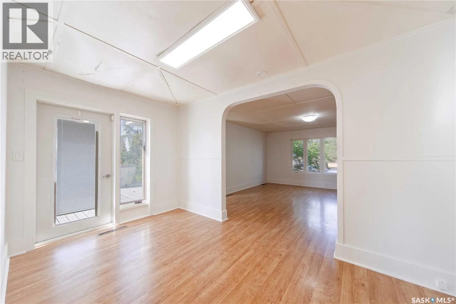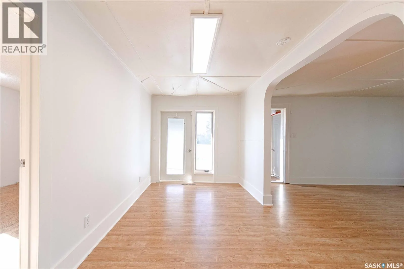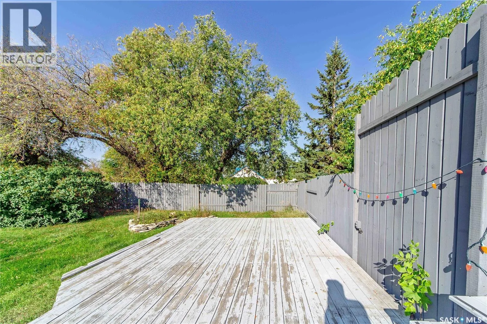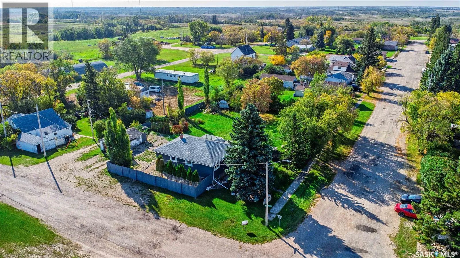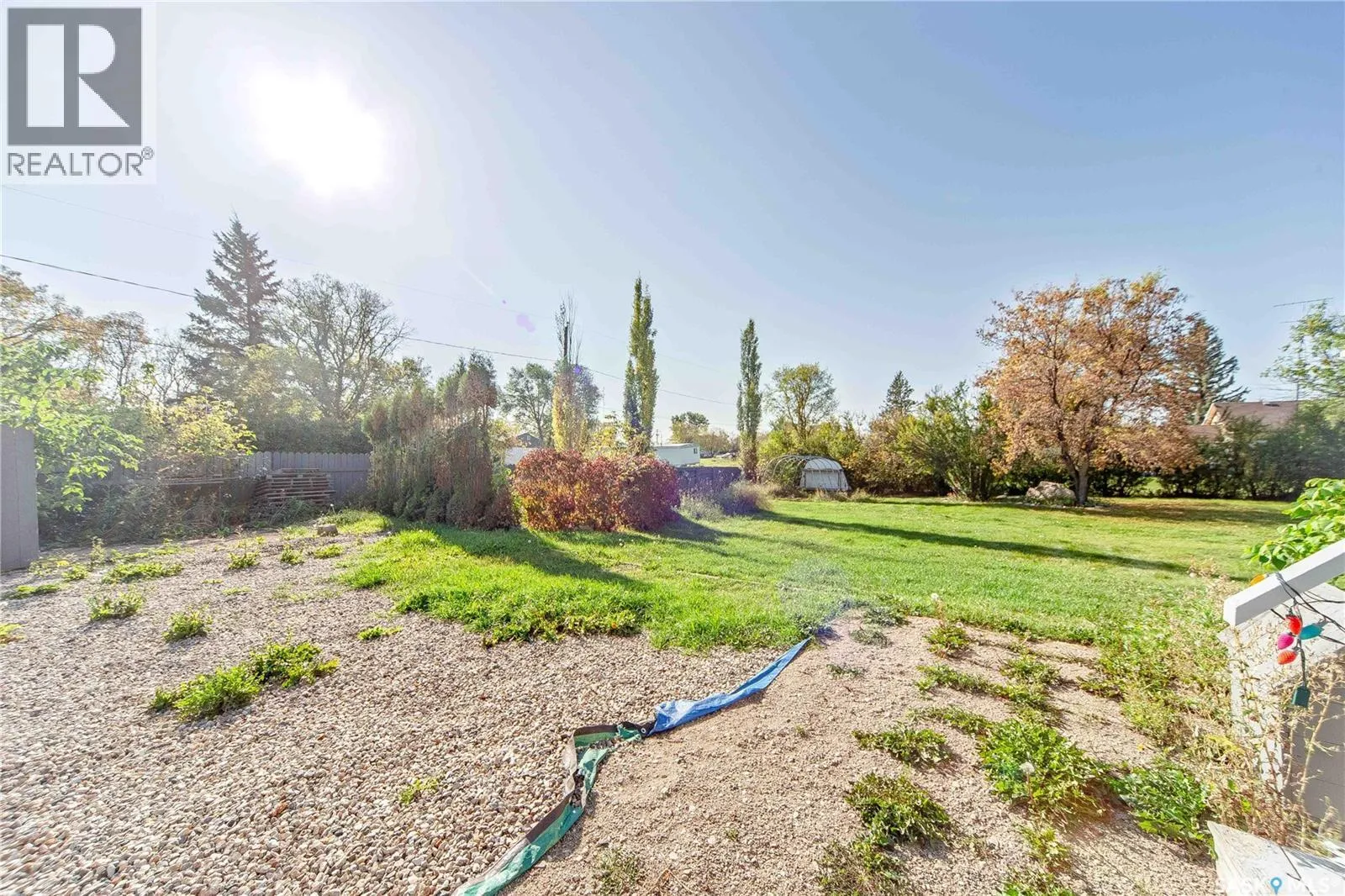 2 + 1 bedroom, 1 bathroom bungalow situated on 4 lots (total of 120' x 165') in the community of Plunkett. Quaint but well situated just 20 minutes from the Colonsay & Lanigan mine sites, 20 minutes from Lanigan, just under one hour from Saskatoon & within 80km of the world-class Jansen Lake project & future mine site. School bus to Viscount. New shingles have just been installed (see photos) along with some repairs to roof sheathing. Good layout with lots of potential, large living & dining area, some vinyl-frame windows, newer kitchen & bathroom, huge deck constructed in 2019 (according to SAMA) facing the vast back yard space. Basement is mostly unfinished, has 1 bedroom completed and another one started, bathroom is framed with a toilet installed, lots of storage space and potential for a rec room to be finished. There is a garden area and patio stone fire pit area that could be revitalized with some clean up. Property is being sold as-is, where-is, no disclosure statement available. (id:27476)