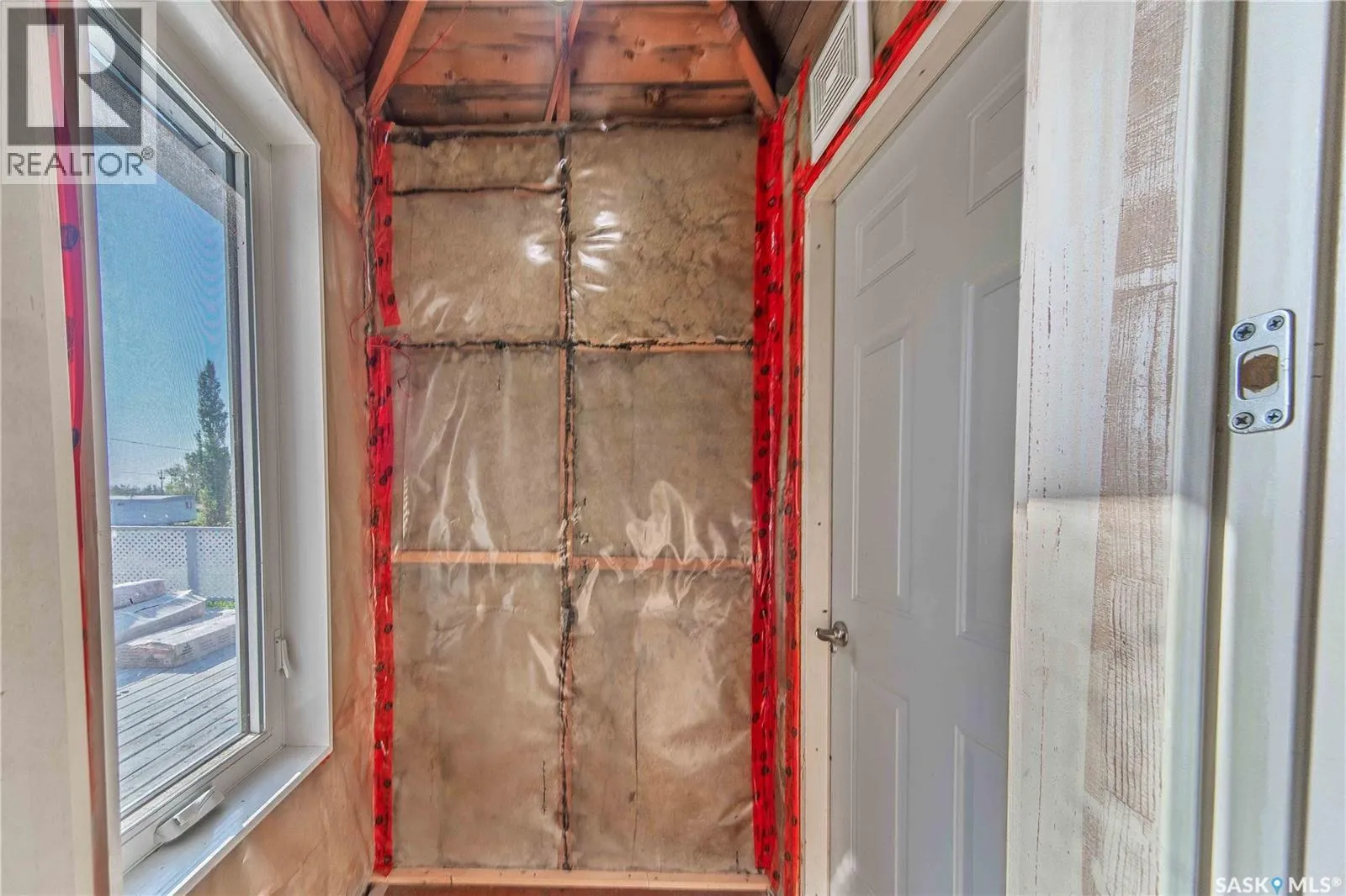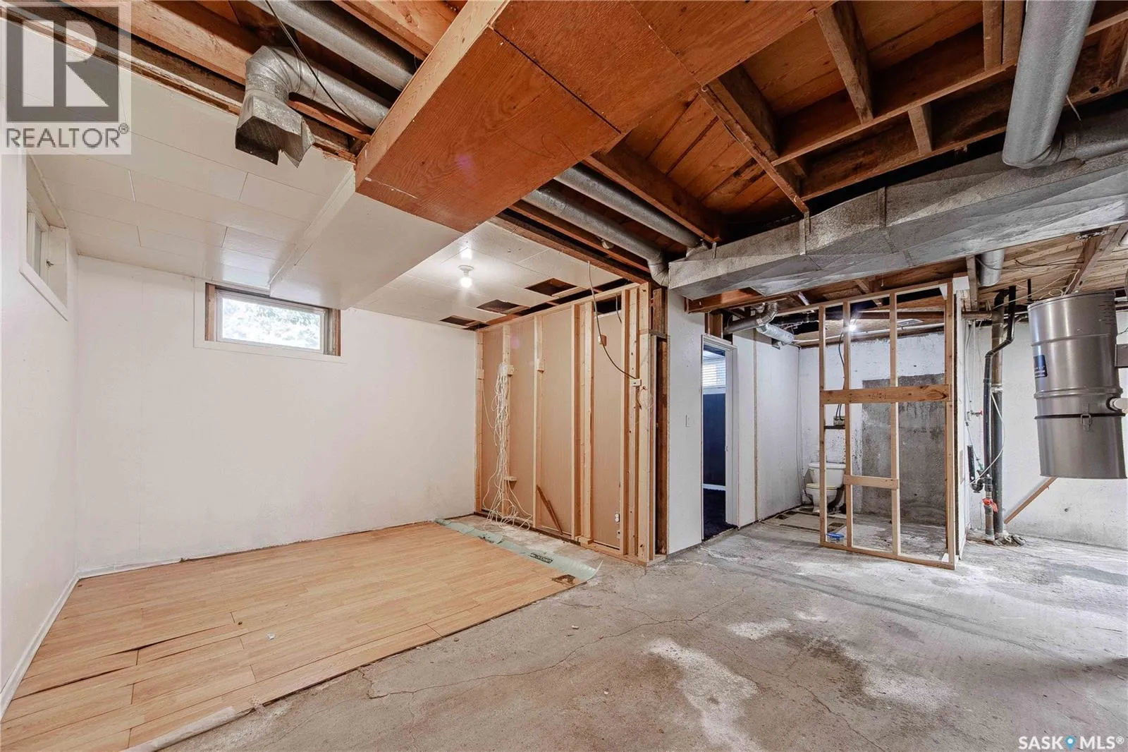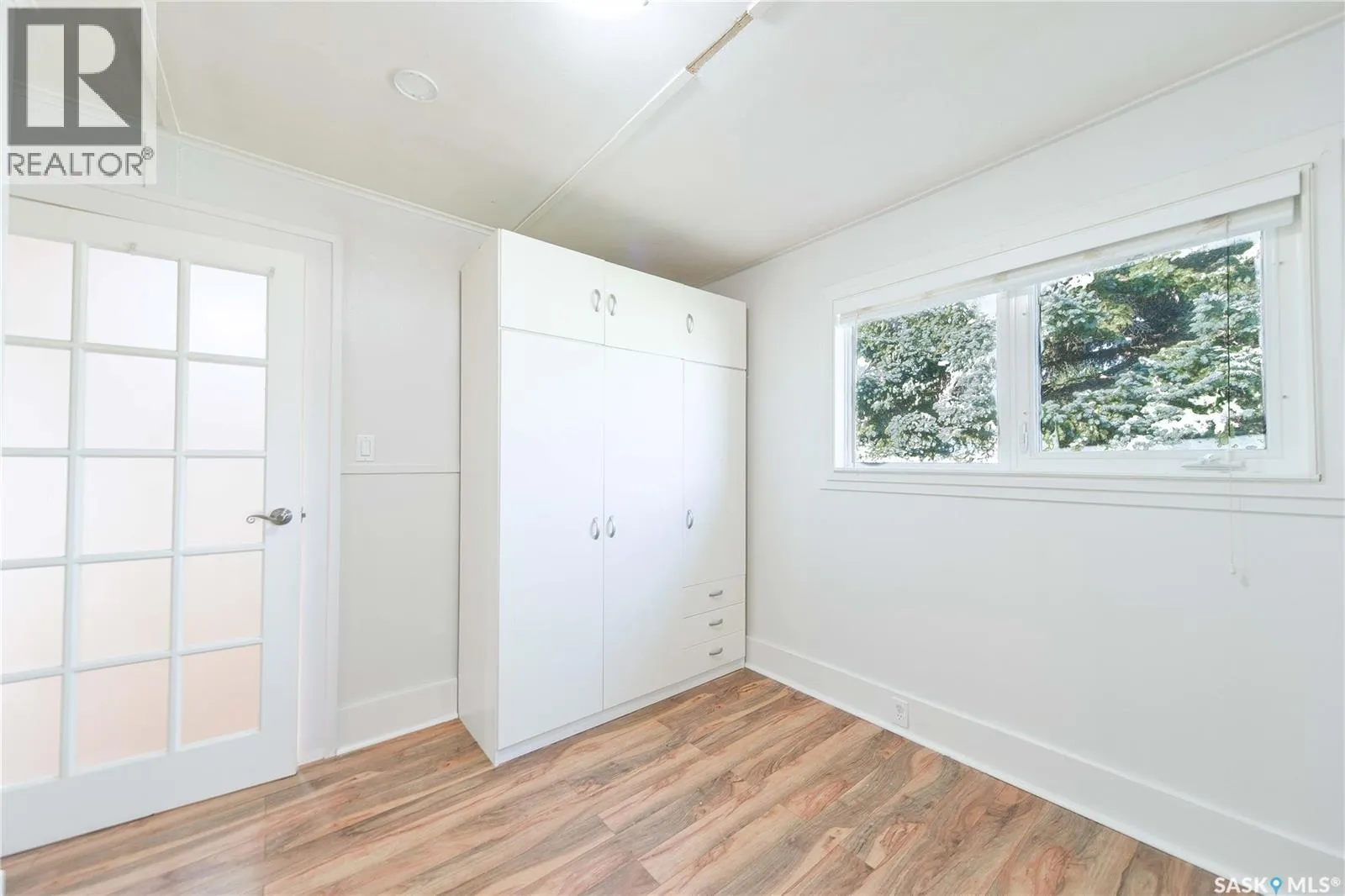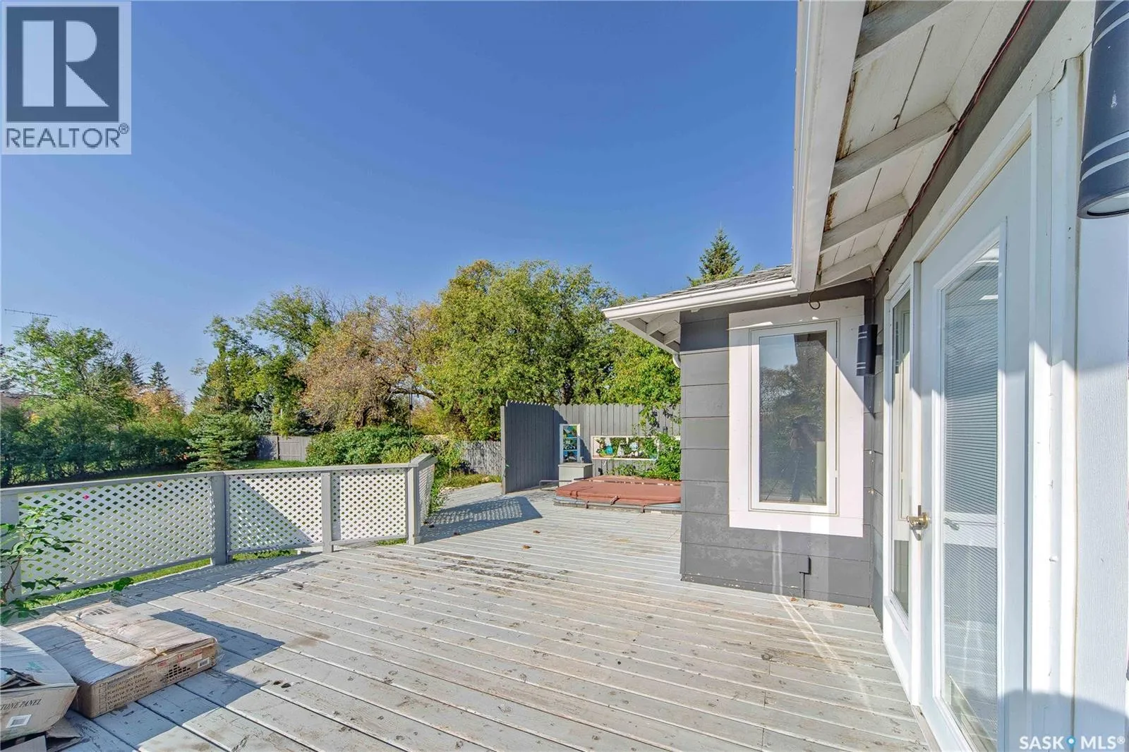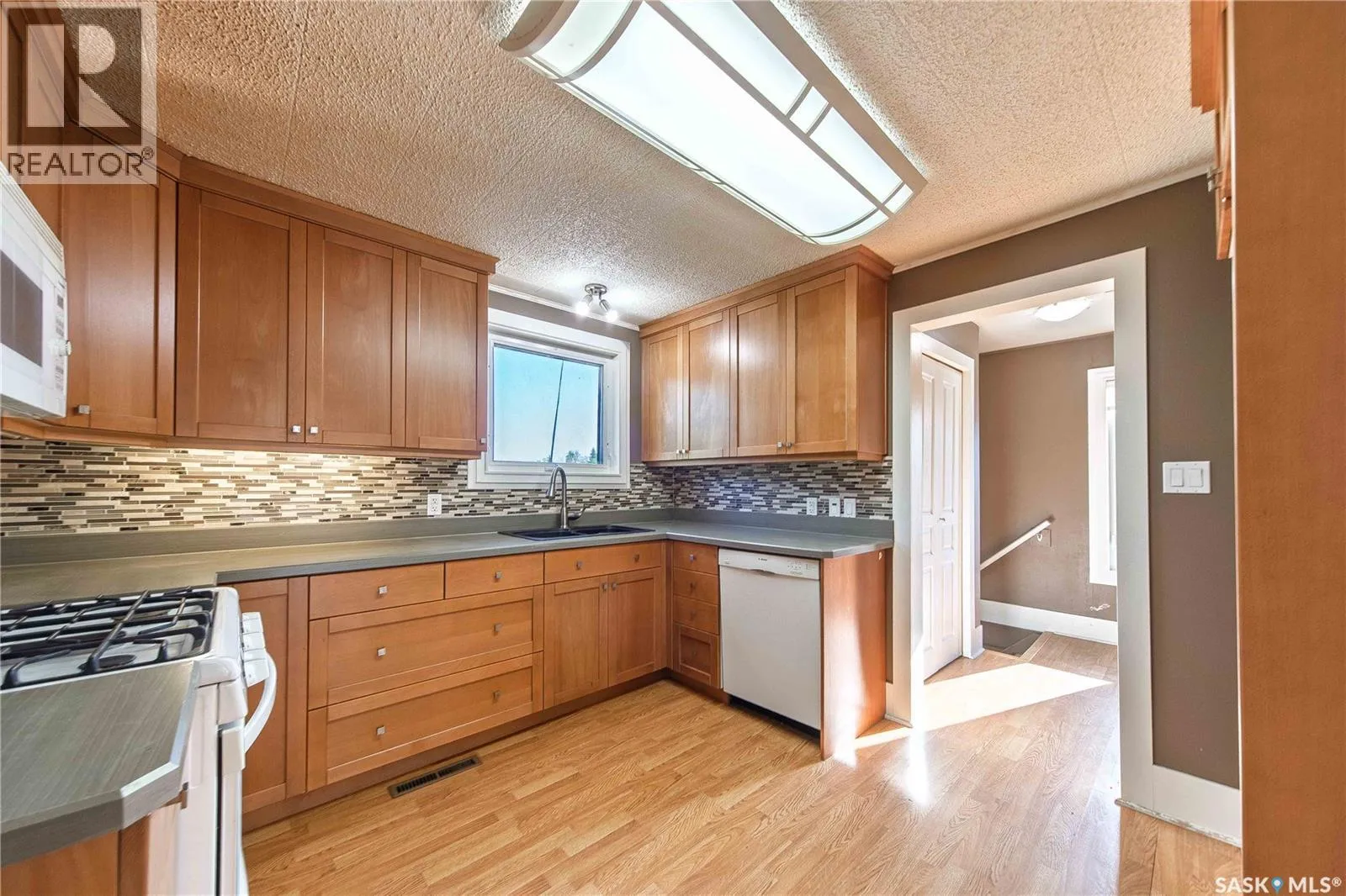 2 + 1 bedroom, 1 bathroom bungalow situated on 4 lots (total of 120' x 165') in the community of Plunkett. Quaint but well situated just 20 minutes from the Colonsay & Lanigan mine sites, 20 minutes from Lanigan, just under one hour from Saskatoon & within 80km of the world-class Jansen Lake project & future mine site. School bus to Viscount. New shingles have just been installed (see photos) along with some repairs to roof sheathing. Good layout with lots of potential, large living & dining area, some vinyl-frame windows, newer kitchen & bathroom, huge deck constructed in 2019 (according to SAMA) facing the vast back yard space. Basement is mostly unfinished, has 1 bedroom completed and another one started, bathroom is framed with a toilet installed, lots of storage space and potential for a rec room to be finished. There is a garden area and patio stone fire pit area that could be revitalized with some clean up. Property is being sold as-is, where-is, no disclosure statement available. (id:27476)
