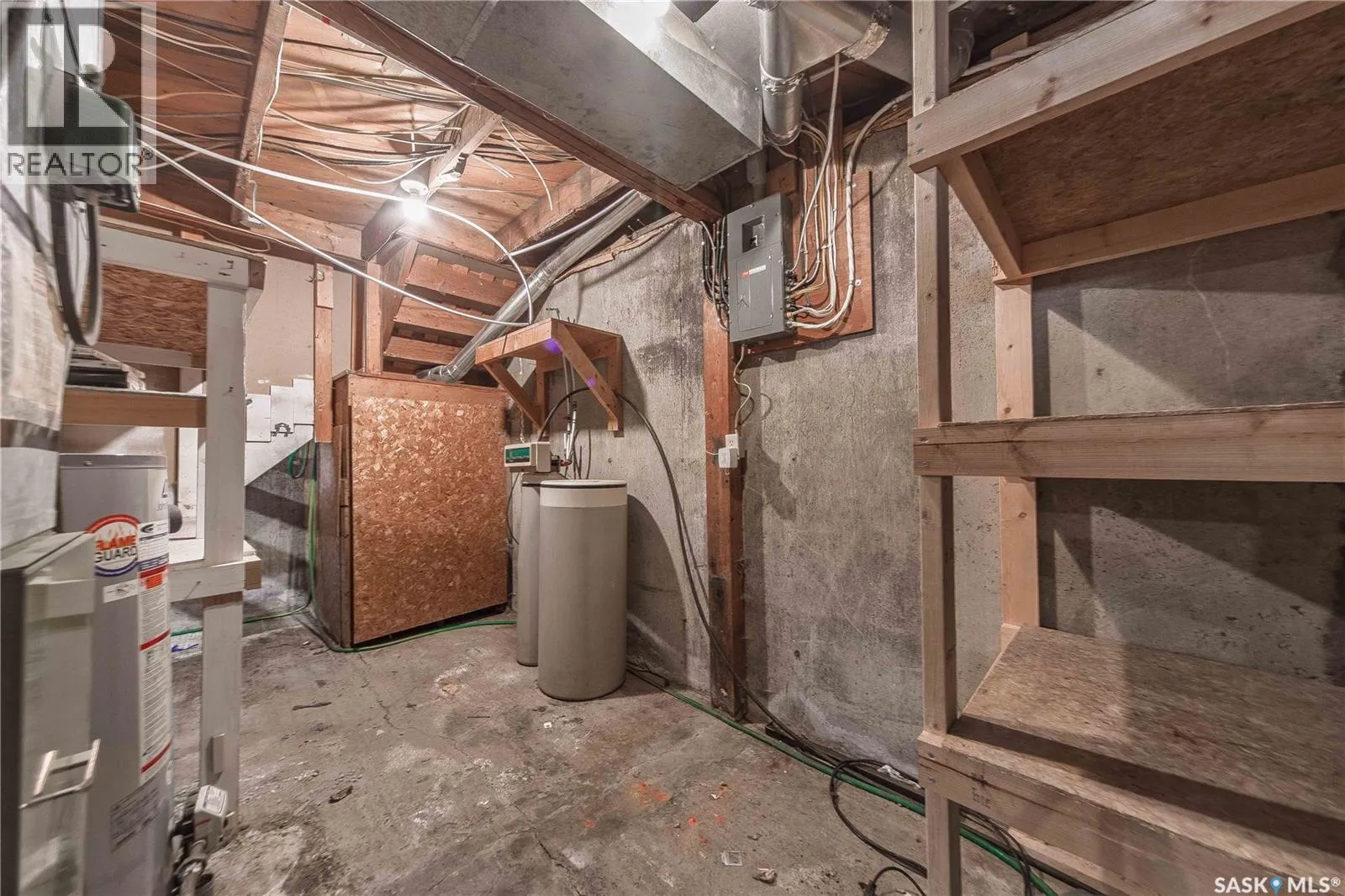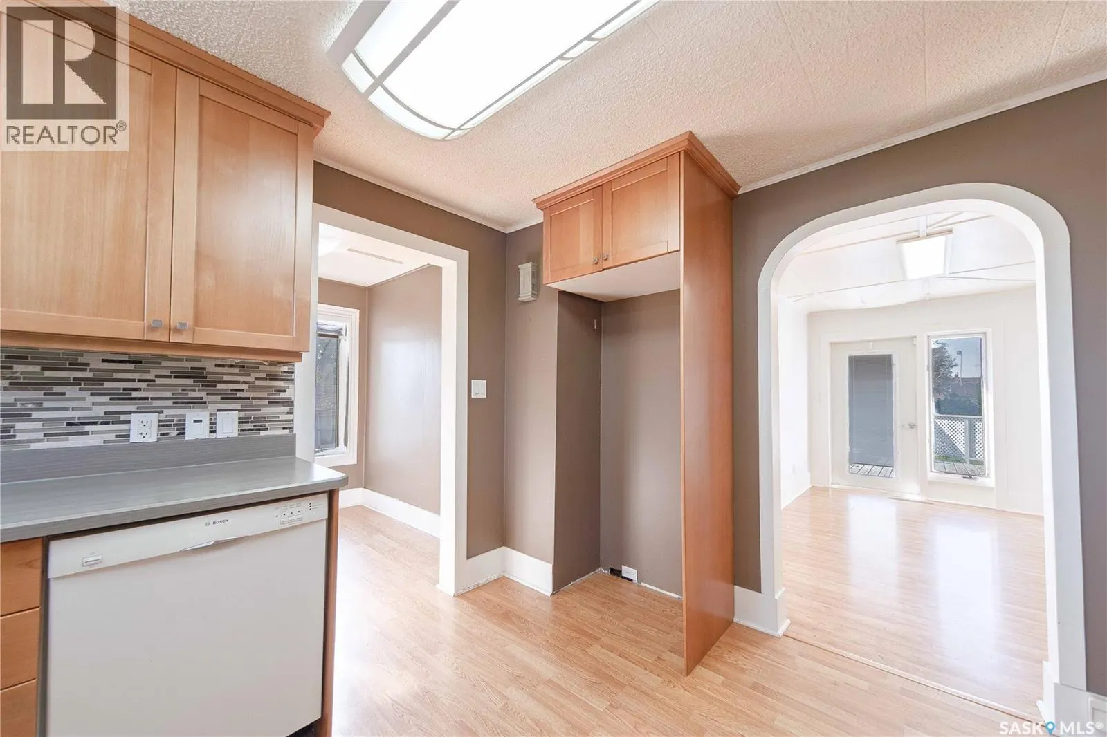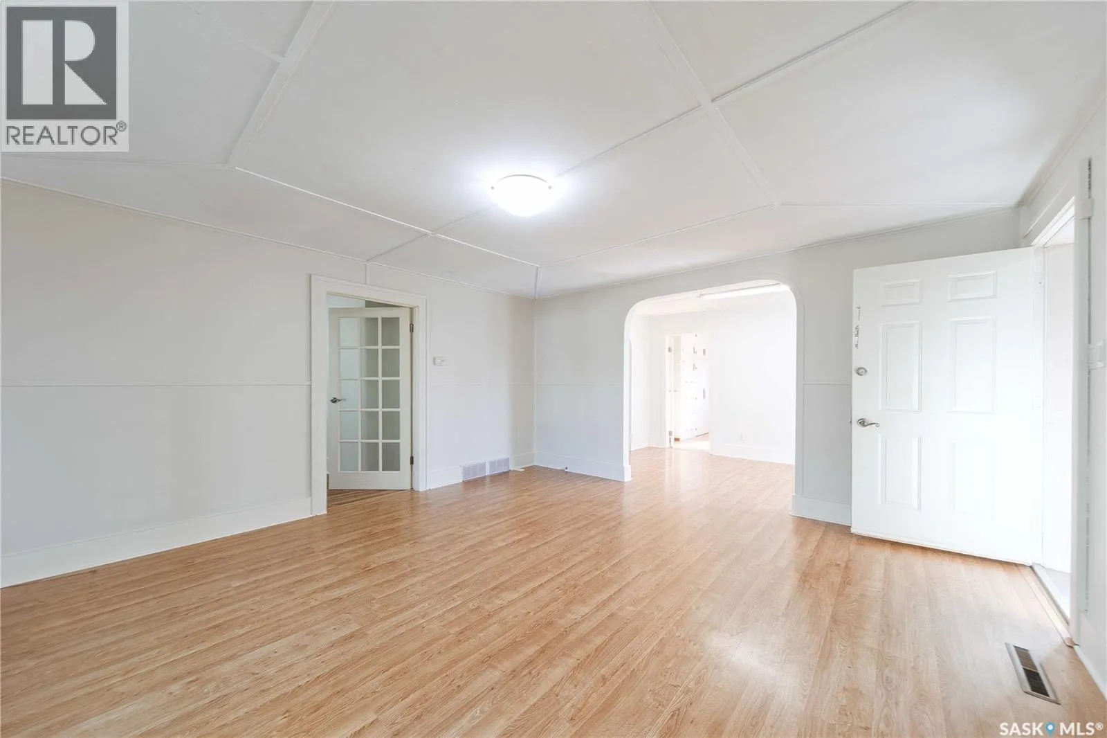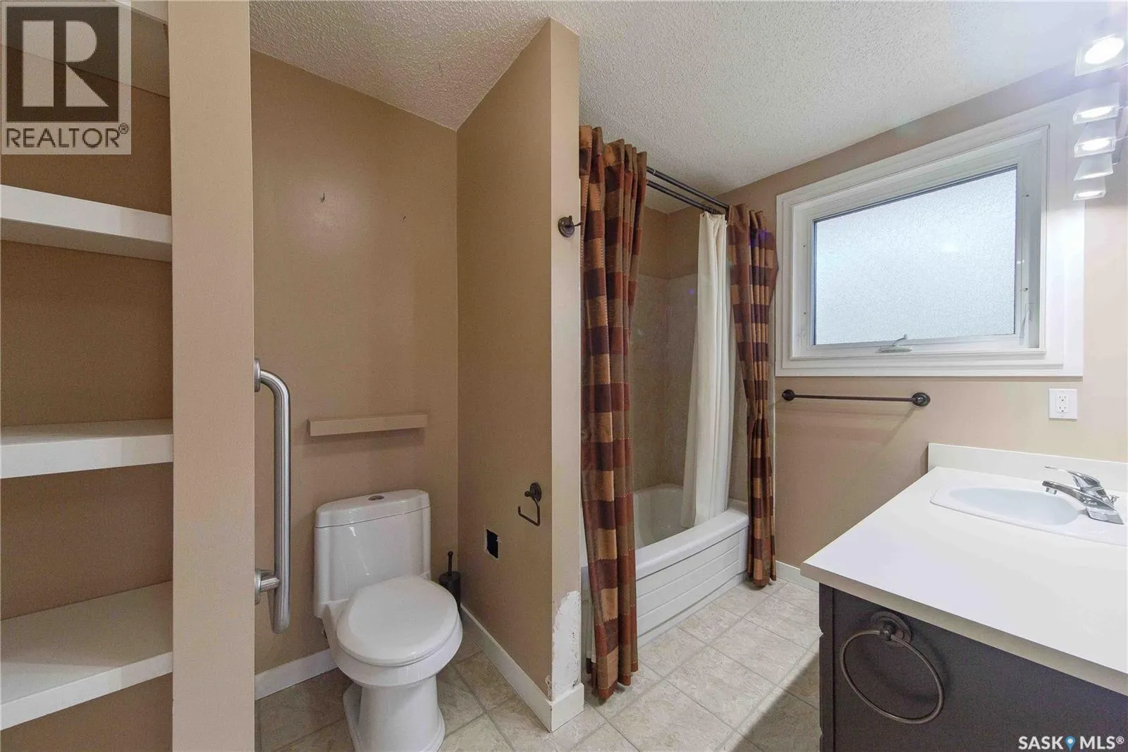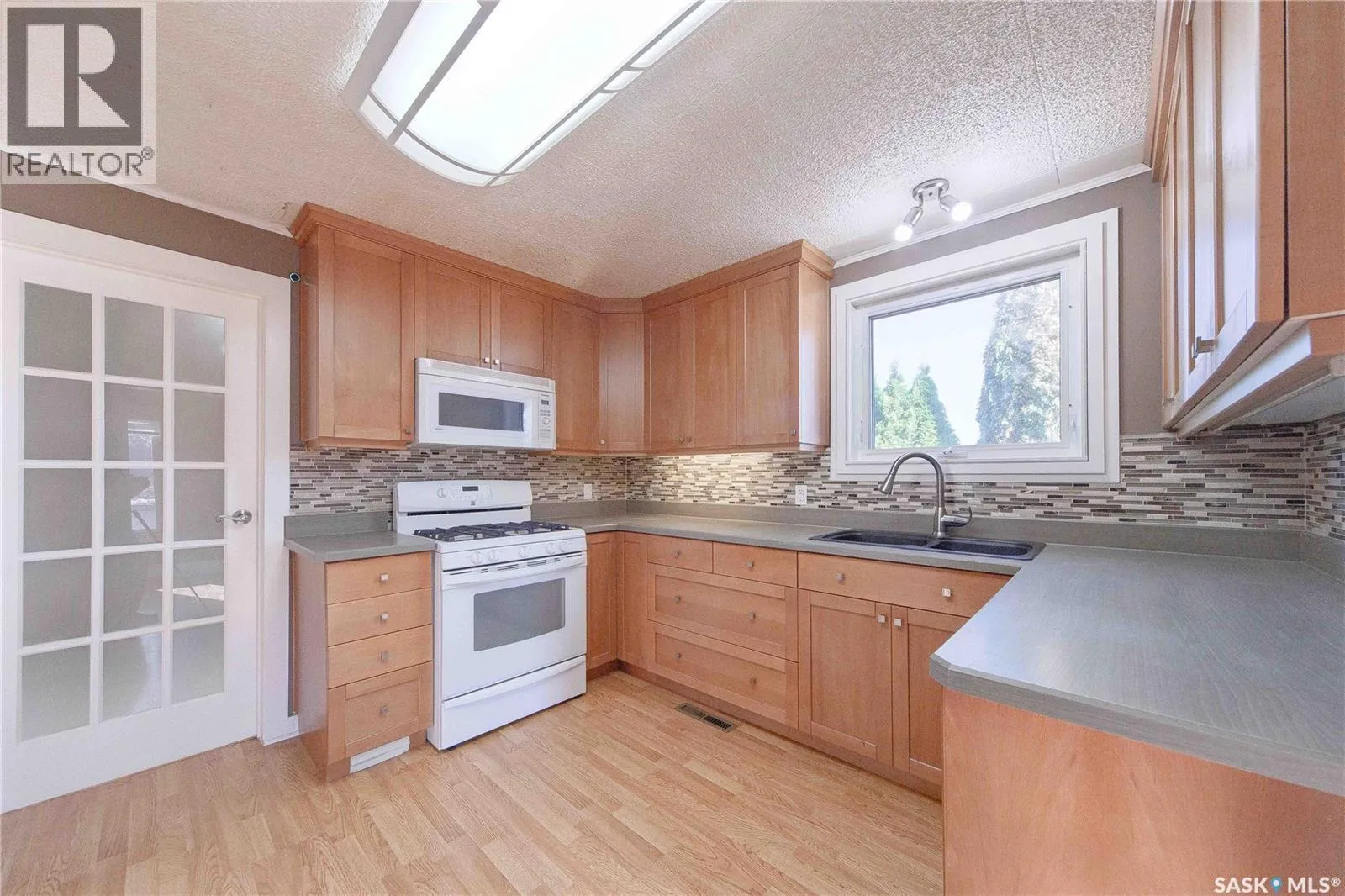 2 + 1 bedroom, 1 bathroom bungalow situated on 4 lots (total of 120' x 165') in the community of Plunkett. Quaint but well situated just 20 minutes from the Colonsay & Lanigan mine sites, 20 minutes from Lanigan, just under one hour from Saskatoon & within 80km of the world-class Jansen Lake project & future mine site. School bus to Viscount. New shingles have just been installed (see photos) along with some repairs to roof sheathing. Good layout with lots of potential, large living & dining area, some vinyl-frame windows, newer kitchen & bathroom, huge deck constructed in 2019 (according to SAMA) facing the vast back yard space. Basement is mostly unfinished, has 1 bedroom completed and another one started, bathroom is framed with a toilet installed, lots of storage space and potential for a rec room to be finished. There is a garden area and patio stone fire pit area that could be revitalized with some clean up. Property is being sold as-is, where-is, no disclosure statement available. (id:27476)