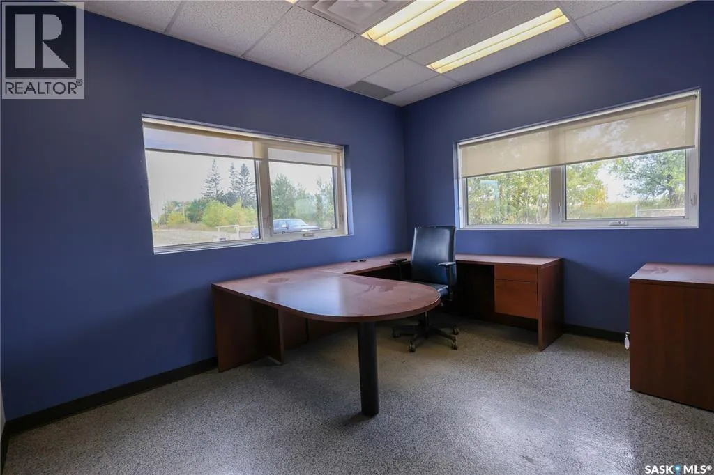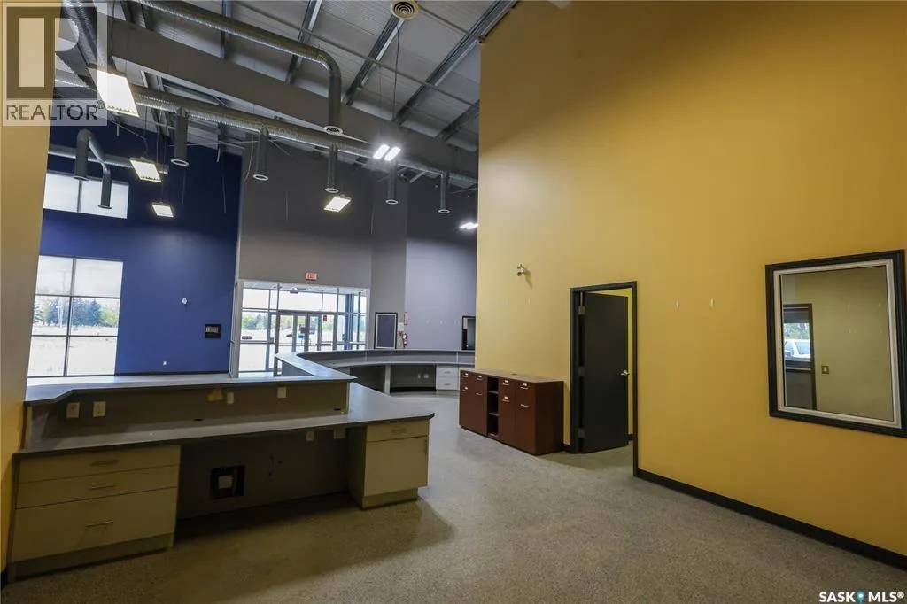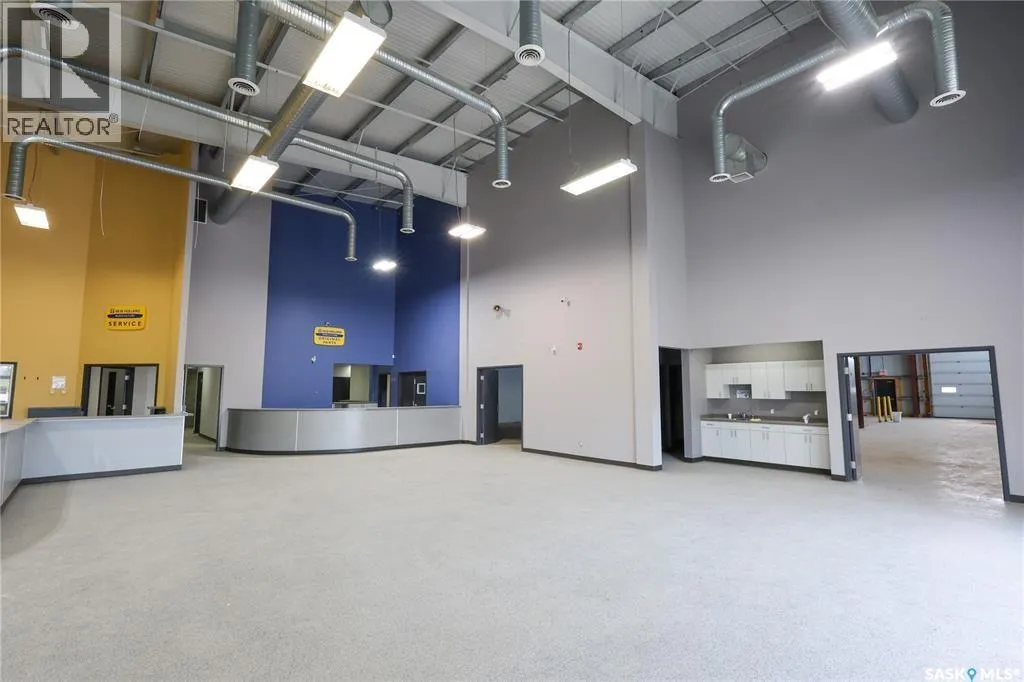 Turn key 33,000 sq/ft building sitting on 9.31 acres with over 290 feet of highway frontage just outside the city limits of Prince Albert. Built in 2013, this property is zoned Highway Commercial to accommodate a wide variety of both commercial and industrial uses. The building itself boasts 8440 of premium retail and office space, and 24560 sq ft of shop space that includes heavy load concrete floor with floor drains, 3 ton crane on rails, air exchanger, seven 22x20 overhead doors, and a 46x24 bifold door making it extremely accommodating to a variety of uses. A separate wash bay with dehumidification and air exchanger unit, a commercial grade pressure wash system with water recycler, and 22x20 door complete shop area. The office and retail area features epoxy finished floors, 11 finished offices, a conference room, a large reception with adjoined service counter area, a customer lounge area with wet bar and two 2 pc bathrooms, a separate parts counter and a parts/inventory storage room. The mezzanine area features epoxy finished floors, a full kitchen staff room area with adjoined exterior deck, data room, 2 pc bathroom and utility room. There is a 6 pc bathroom for staff equipped with changeroom/locker area between office and shop as well as a separate 2 pc bathroom and a janitor closet. Heating is in the form of In-floor boiler fed heating throughout the main floor of the building with supplementary forced air and air conditioning in the developed and mezzanine areas. This is great opportunity to step into a turn key building and take advantage of some major opportunities in Prince Albert with an expected 1200 new permanent jobs coming to the community via the Victoria Hospital Expansion and One Sky Forest Products OSB mill announcements. Major growth is expected in the next 5-10 years in this community and development is already underway in the form of the new recreation center and heavy commercial development. Be a part of the excitement! (id:27476)