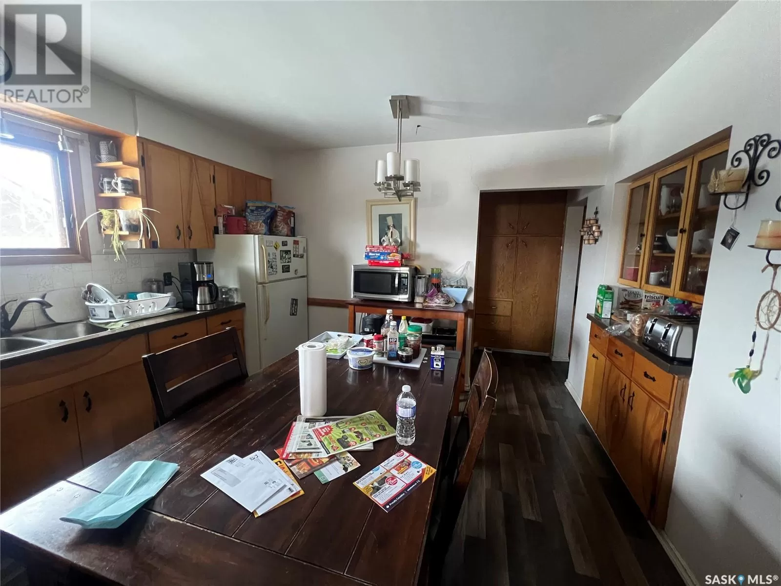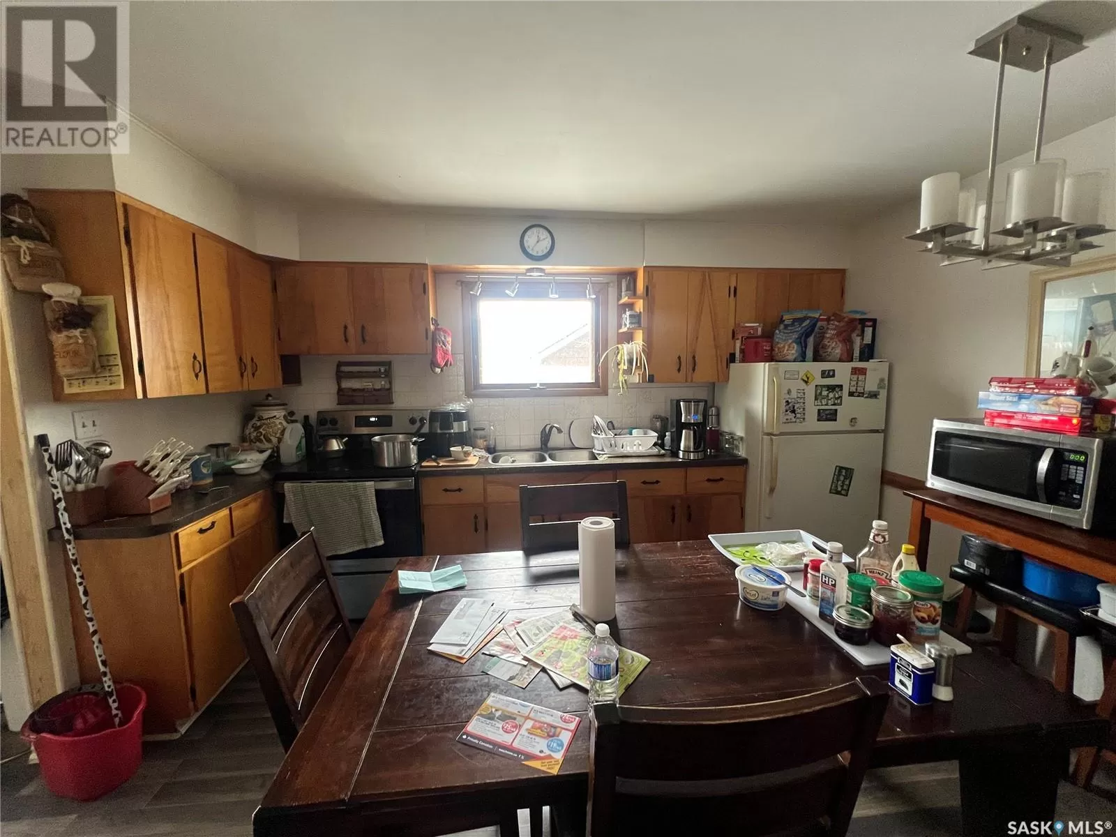 Welcome to this charming 3 bedroom bungalow, ideal for first time homebuyers or a savvy investor seeking a great opportunity. As you step inside, you are greeted by a fully enclosed porch that offers a lovely entryway into the cozy living room. At the heart of the home is the large, open-concept kitchen featuring plenty of counter space for all your cooking needs and offering room for a dining table. Adjacent to the kitchen is a convenient laundry/mudroom area, located at the back entrance, providing easy access to the backyard while keeping your living spaces tidy. Three generously sized bedrooms, a nice 4 piece bathroom and a built-in desk and storage area complete the main level. Downstairs, you will find a spacious living area that provides the perfect place for a recreation room along with a utility/storage area. Outside, you will enjoy the privacy provided by mature trees that surround the property, along with a fully fenced yard. A single detached garage offers convenient parking and additional storage. Ideally located near schools, parks, the rotary trail and local businesses. This delightful bungalow combines comfort and charm making it a wonderful choice for both homeowners and investors. Donât miss the chance to make this property your own! (id:27476)
