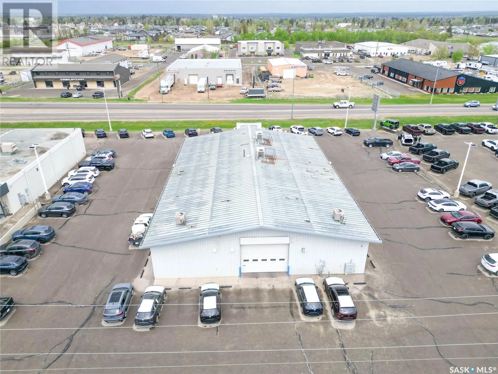 Industrial building located in high traffic South Industrial area! M3 small lot light industrial zoning accommodates industrial, retail, office uses and more. This property previously accommodated an auto dealership with a show room, reception area and offices in the front. Available square footage for lease is 3,592.79 and includes the front showroom measuring 3,188 sq/ft and the upper level measuring 404.25 sq/ft. Amazing location facing Marquis and surrounded by a variety of other amenities and businesses. Call for more information! (id:27476)