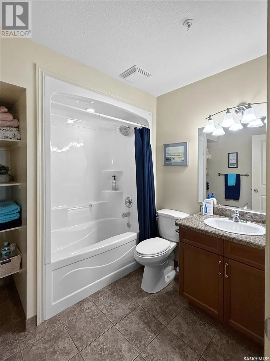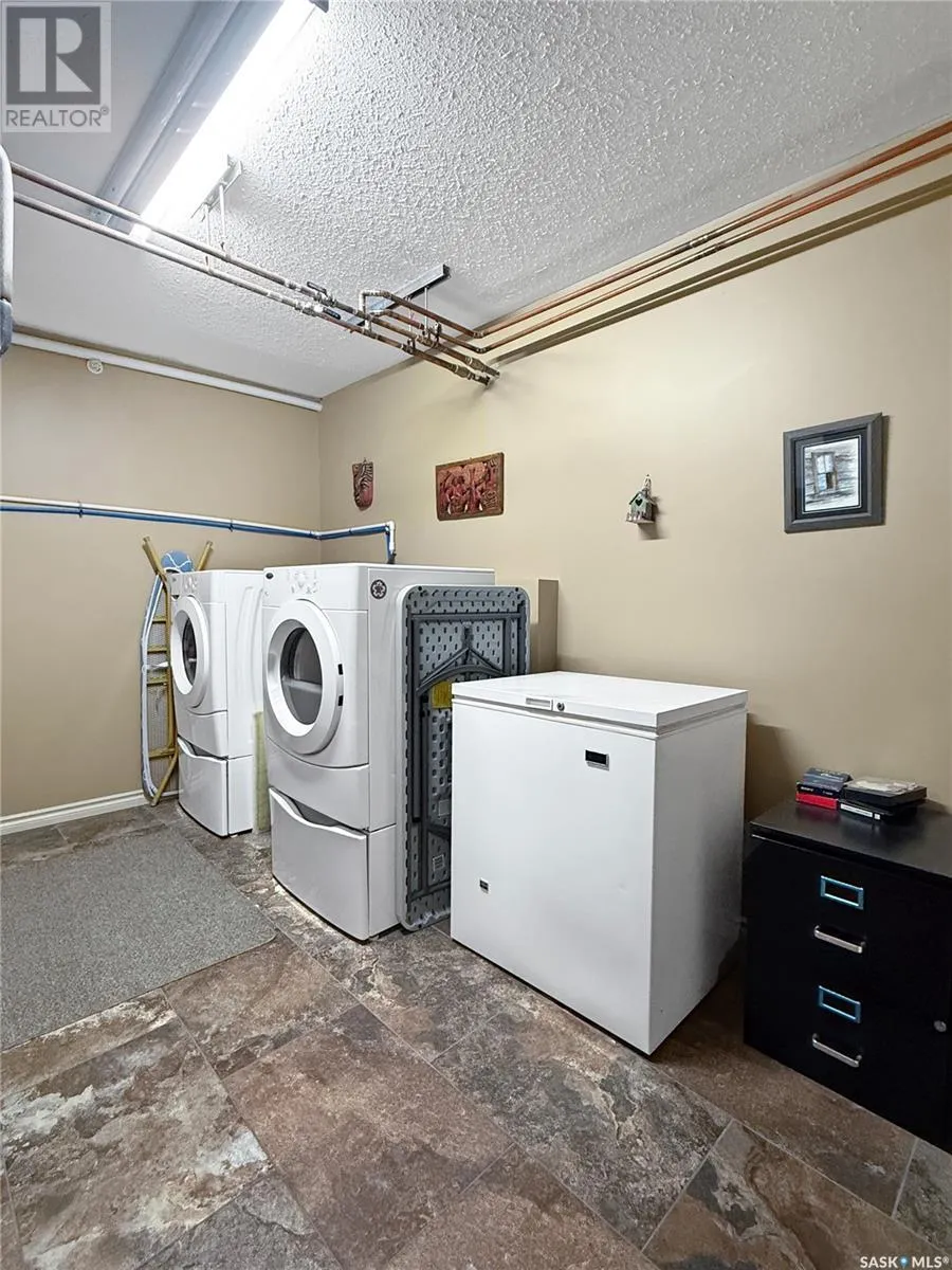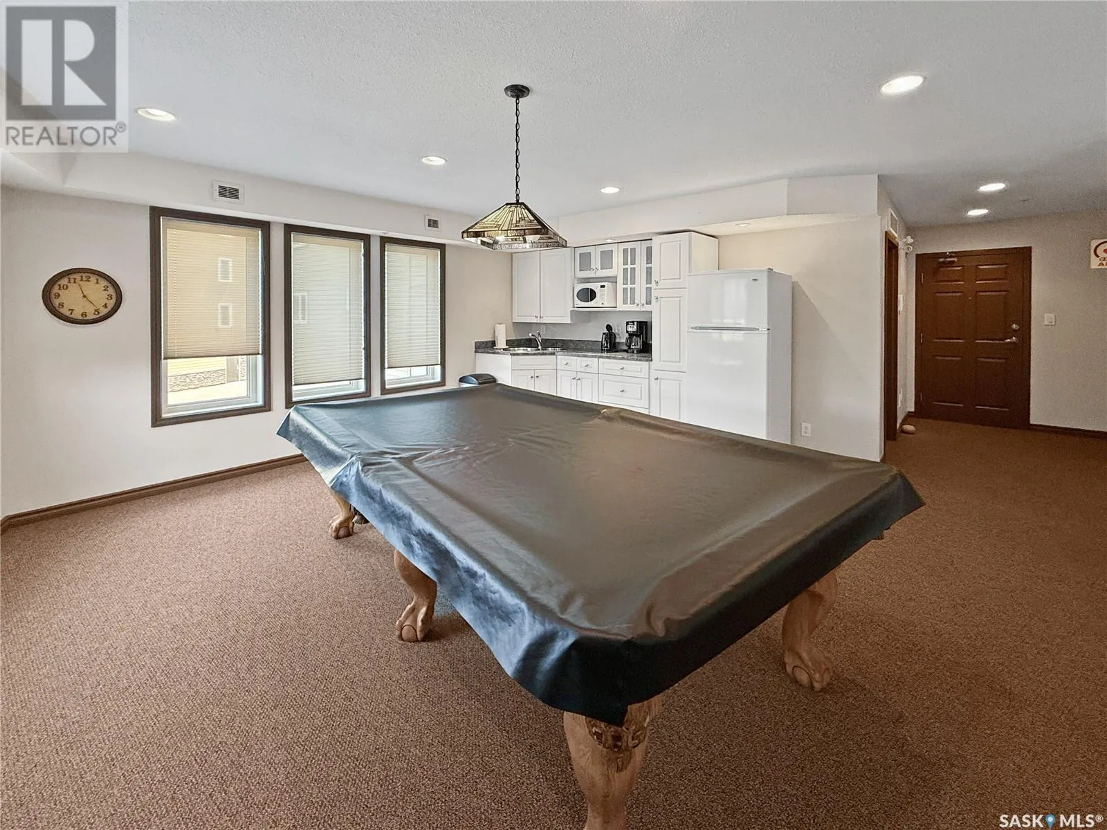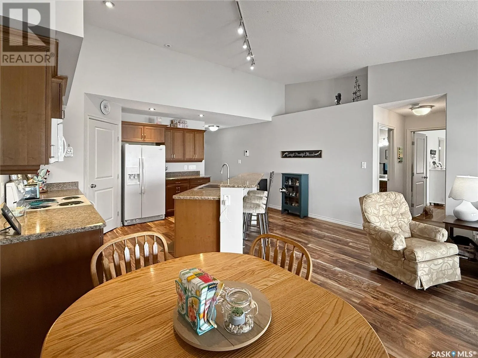 RIVERVIEW!! Welcome to this beautifully TOP Floor condo nestled in the sought-after River's Edge development. Enjoy breathtaking views of the river from your private, oversized covered balconyâperfect for relaxing or entertaining, complete with a convenient natural gas BBQ hookup. Inside, the open-concept layout is highlighted by soaring vaulted ceilings that create a spacious, airy atmosphere. The living and dining areas flow seamlessly, with 2 bathrooms, making the space both functional and inviting. The well-equipped kitchen features modern finishes, ample cabinetry, and a layout designed for effortless meal preparation. Both bedrooms are generously sized, with the primary suite offering a private ensuite bathroom. The second full bathroom adds flexibility for guests or family. A large laundry room offers exceptional convenience and comes with abundant storage spaceâideal for keeping your home organized and clutter-free. This condo comes with two dedicated parking spotsâone secure underground stall and one above-ground space, offering convenience and flexibility for you and your guests. Donât miss the opportunity to own this rare riverfront gem, combining low-maintenance living with incredible views, practical features, and an unbeatable location in a well-maintained community. (id:27476)