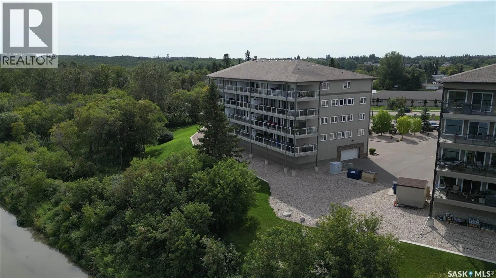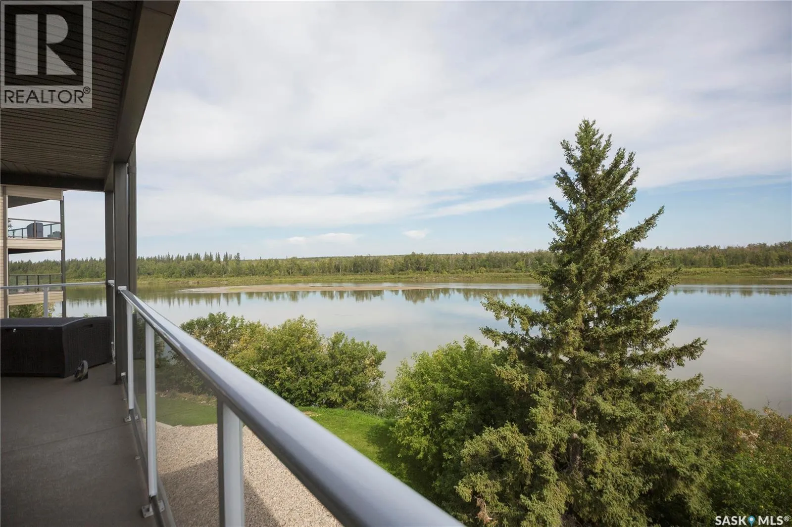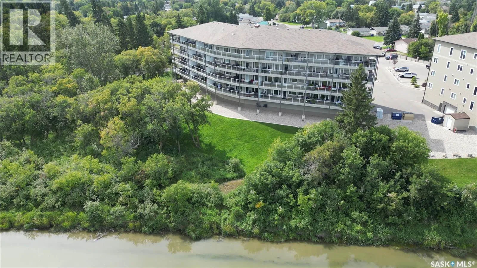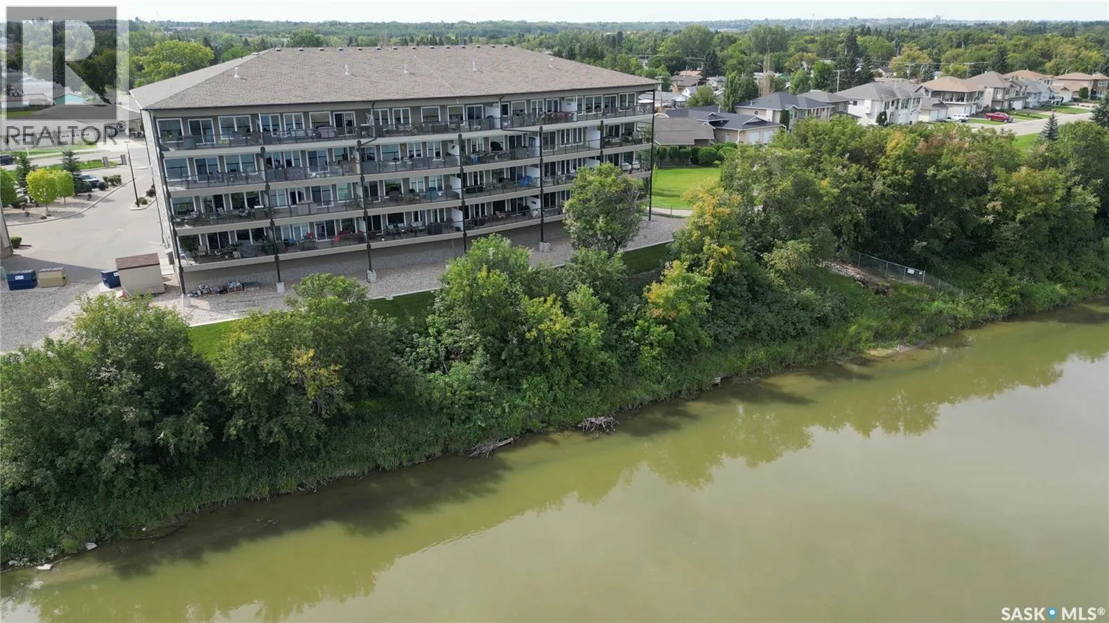 Experience elevated riverfront living in this exceptional third-floor corner condominium, offering 2,000 sq. ft. of luxurious space with some of the finest views in Prince Albert. Northeast facing, this home captures both sunrise and sunset, best enjoyed from the oversized wraparound balcony overlooking the North Saskatchewan River and Rotary Trail. The thoughtfully designed interior features a grand open-concept living and dining area, perfectly suited for entertaining or quiet evenings at home. A chefâs kitchen anchors the space with granite countertops, custom cherry cabinetry and an abundance of workspace. Brazilian cherry hardwood flooring flows seamlessly throughout, complemented by tile in the bathrooms, foyer, and laundry room. The private primary suite offers a spa-inspired ensuite and an impressive walk-in closet. Upgraded LED lighting and included heat provide both efficiency and comfort year-round. This exclusive building also offers exceptional amenities, including one in-building heated parking stall and one exterior stall, a generous common area with kitchenette and pool table, plus an exercise room for active living. With direct access to the riverbank and Rotary Trail, this residence blends natural beauty with modern eleganceâan extraordinary opportunity to own one of Prince Albertâs most desirable riverfront condominiums. Recent upgrades from 2022-2023 include a new fridge, dishwasher, air conditioner, microwave fan, washer, dryer, and freezer. (id:27476)