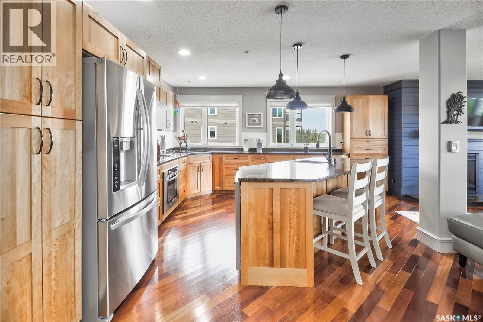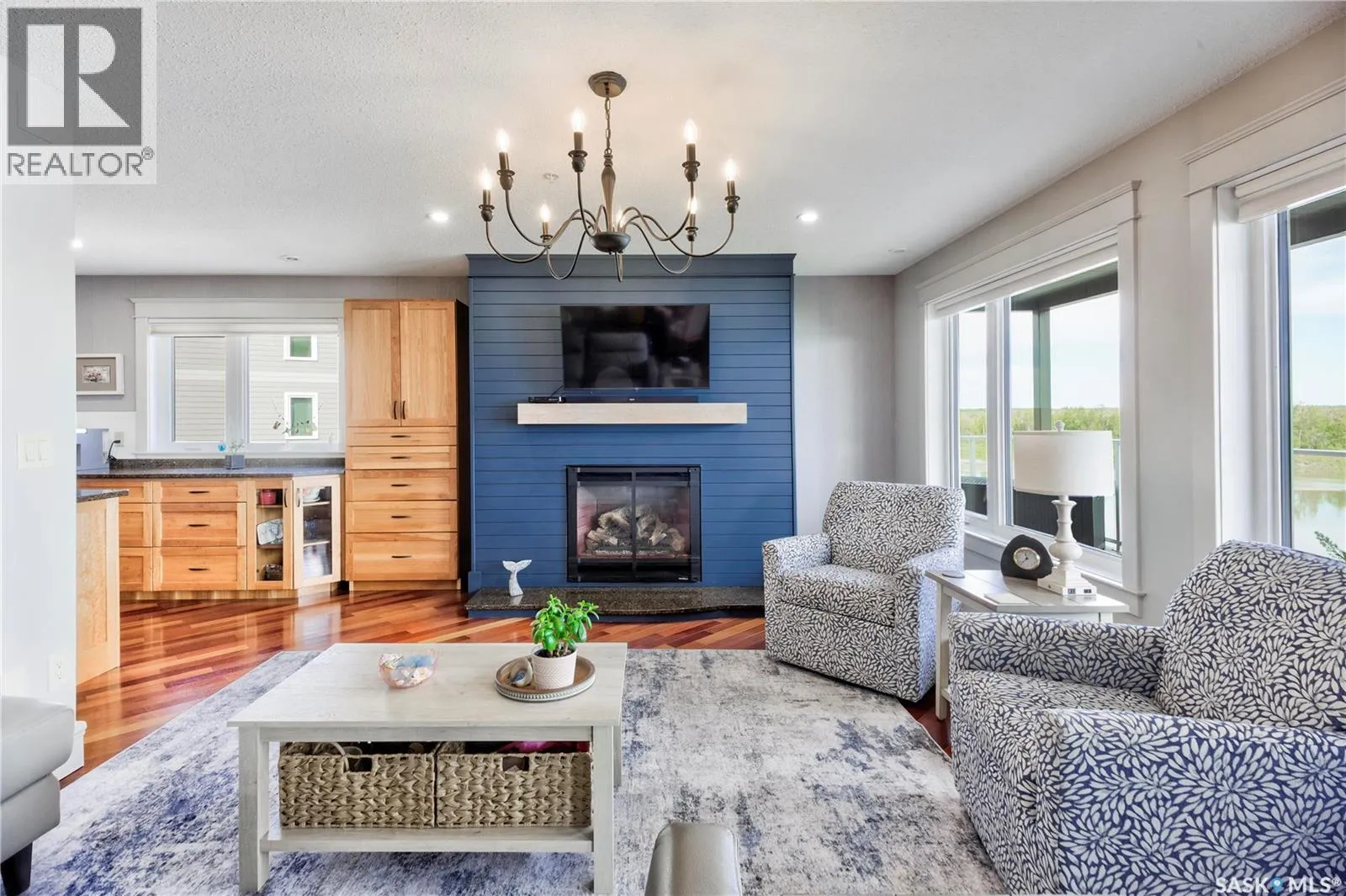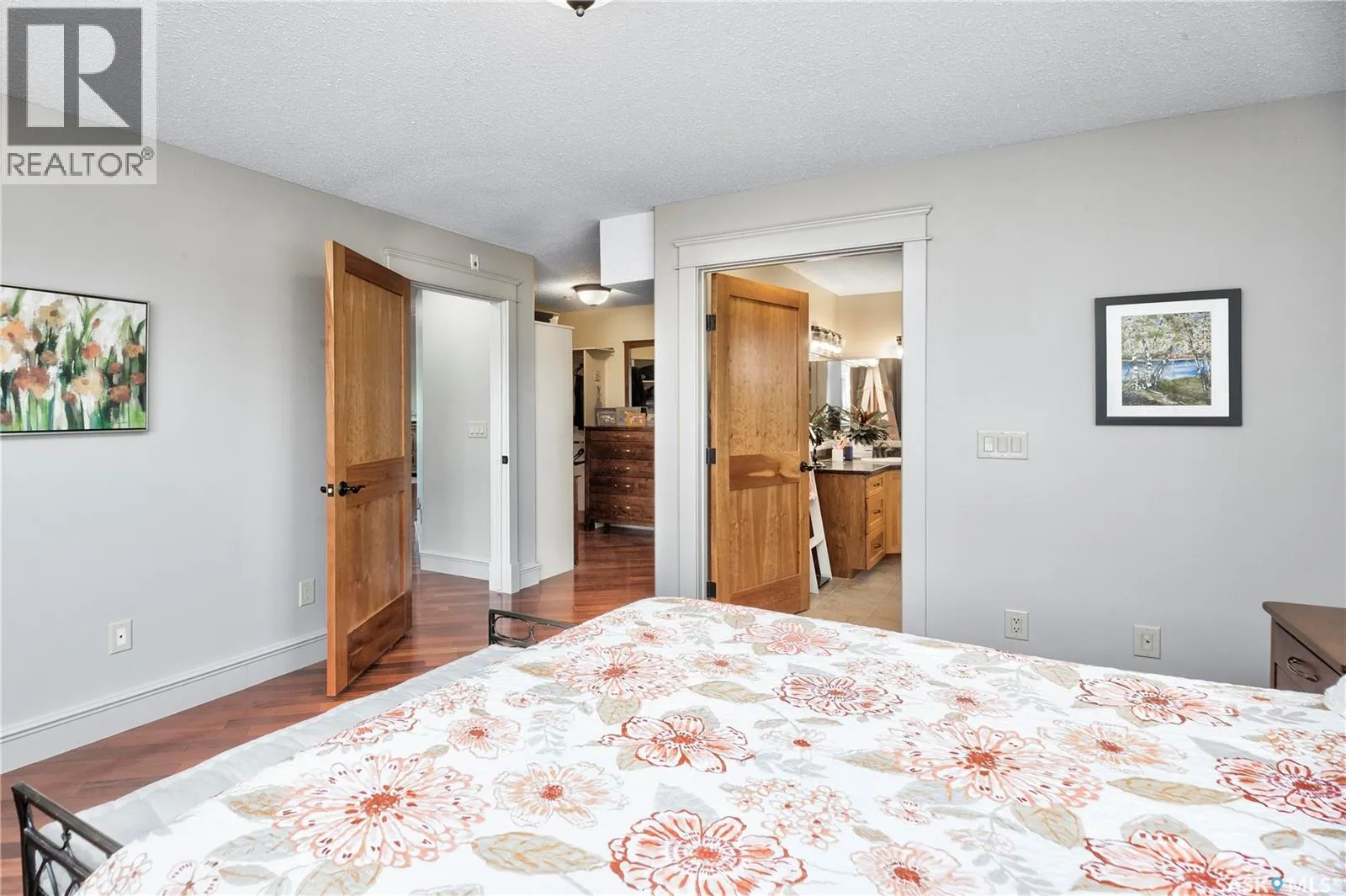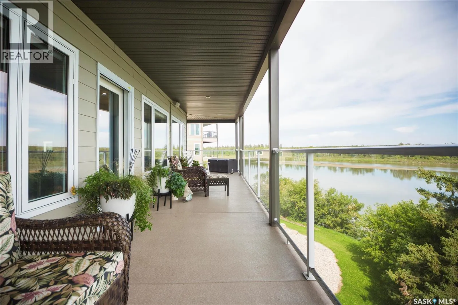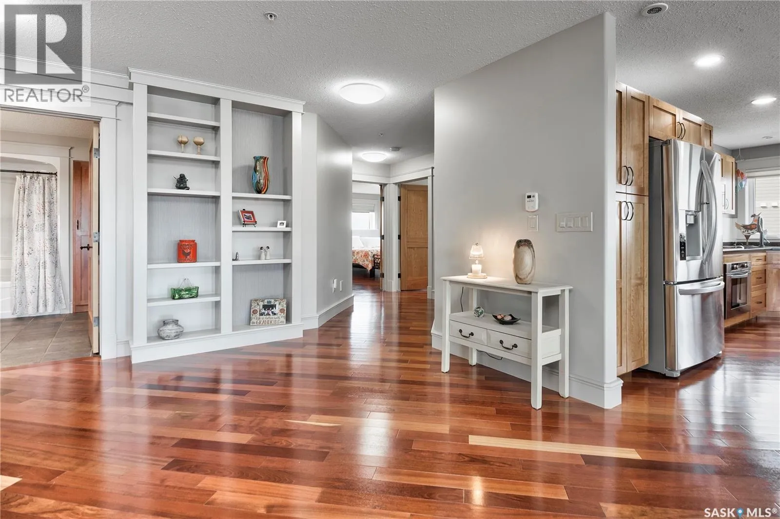 Experience elevated riverfront living in this exceptional third-floor corner condominium, offering 2,000 sq. ft. of luxurious space with some of the finest views in Prince Albert. Northeast facing, this home captures both sunrise and sunset, best enjoyed from the oversized wraparound balcony overlooking the North Saskatchewan River and Rotary Trail. The thoughtfully designed interior features a grand open-concept living and dining area, perfectly suited for entertaining or quiet evenings at home. A chefâs kitchen anchors the space with granite countertops, custom cherry cabinetry and an abundance of workspace. Brazilian cherry hardwood flooring flows seamlessly throughout, complemented by tile in the bathrooms, foyer, and laundry room. The private primary suite offers a spa-inspired ensuite and an impressive walk-in closet. Upgraded LED lighting and included heat provide both efficiency and comfort year-round. This exclusive building also offers exceptional amenities, including one in-building heated parking stall and one exterior stall, a generous common area with kitchenette and pool table, plus an exercise room for active living. With direct access to the riverbank and Rotary Trail, this residence blends natural beauty with modern eleganceâan extraordinary opportunity to own one of Prince Albertâs most desirable riverfront condominiums. Recent upgrades from 2022-2023 include a new fridge, dishwasher, air conditioner, microwave fan, washer, dryer, and freezer. (id:27476)