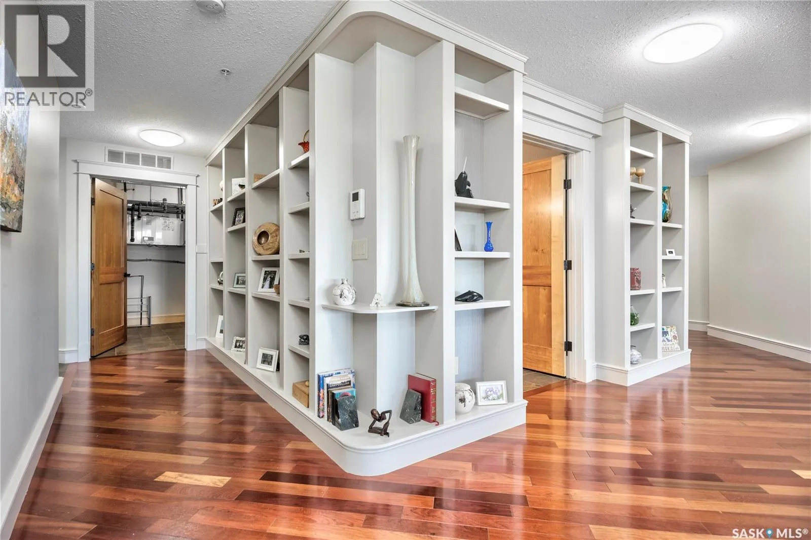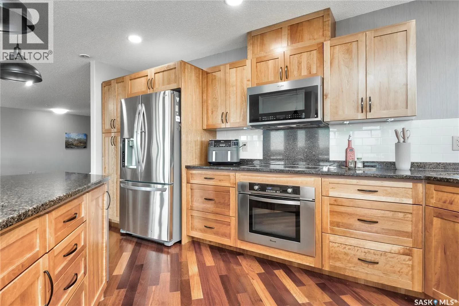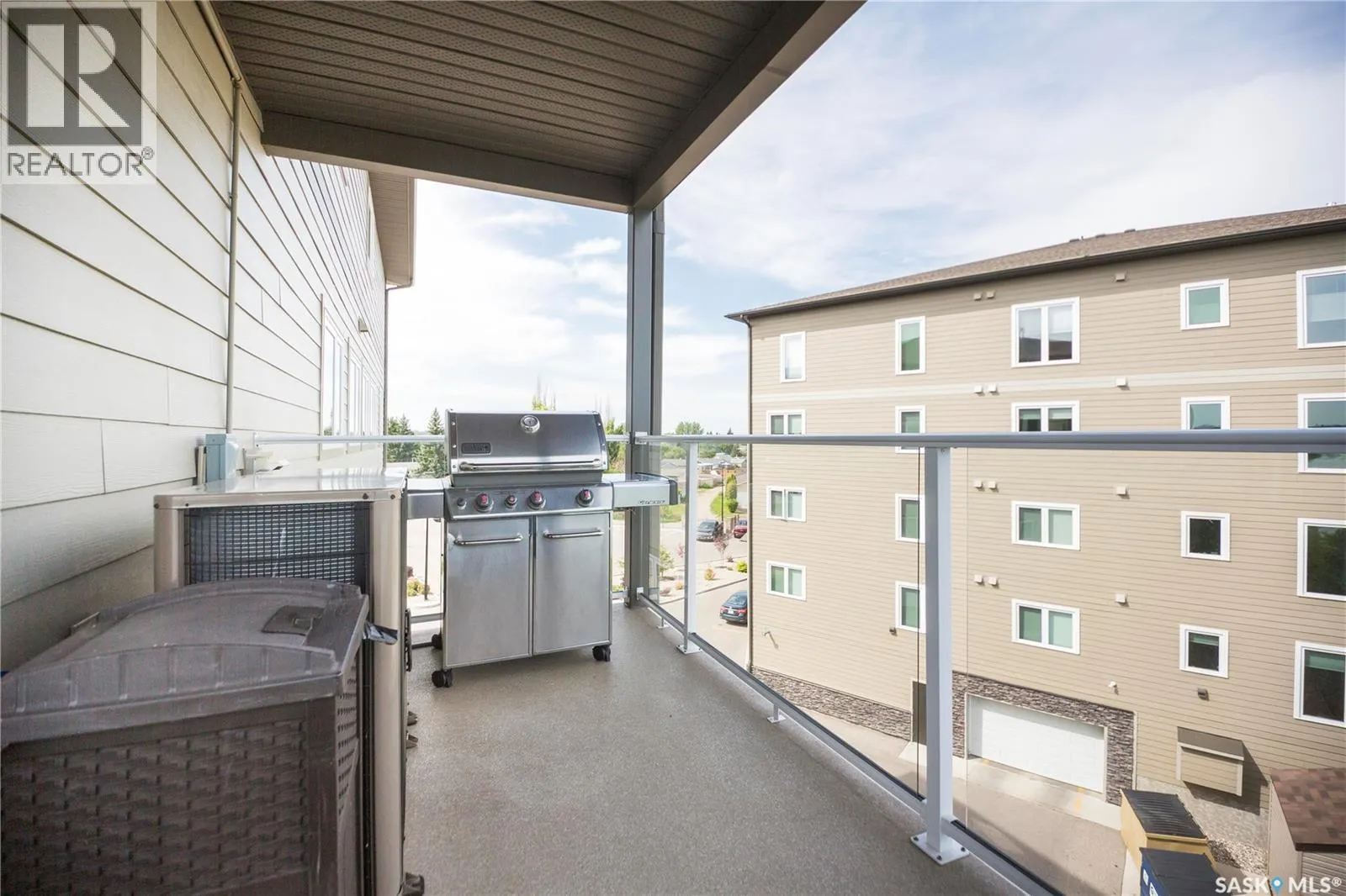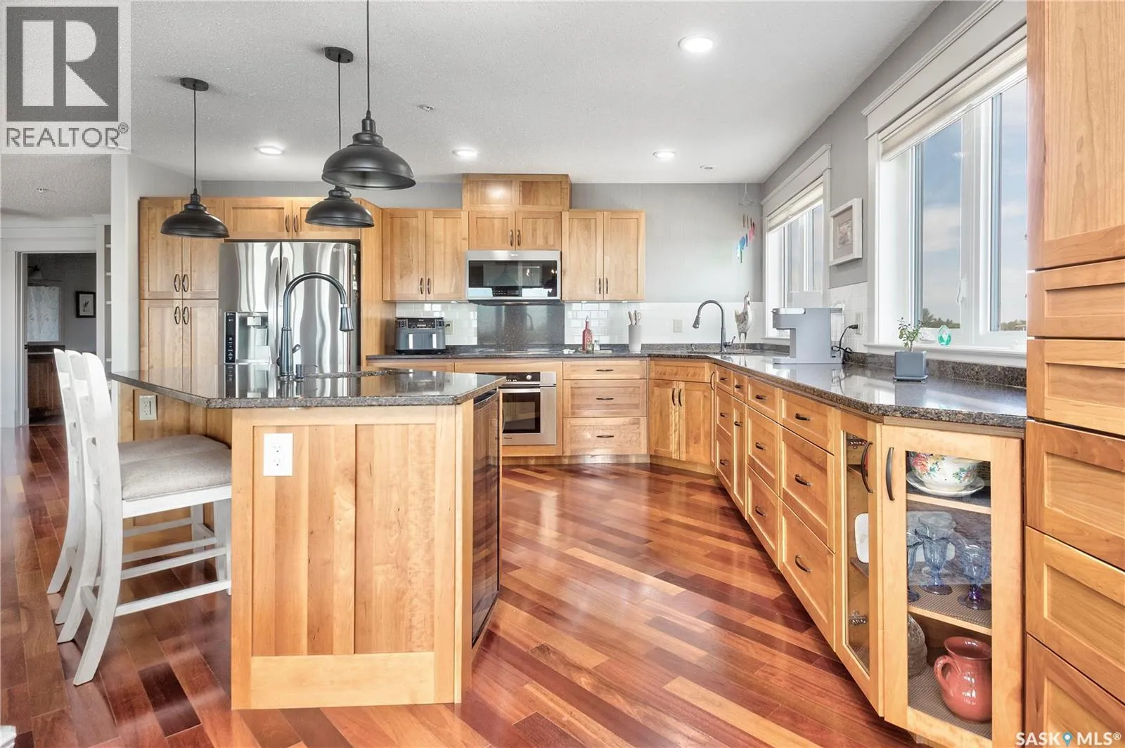 Experience elevated riverfront living in this exceptional third-floor corner condominium, offering 2,000 sq. ft. of luxurious space with some of the finest views in Prince Albert. Northeast facing, this home captures both sunrise and sunset, best enjoyed from the oversized wraparound balcony overlooking the North Saskatchewan River and Rotary Trail. The thoughtfully designed interior features a grand open-concept living and dining area, perfectly suited for entertaining or quiet evenings at home. A chefâs kitchen anchors the space with granite countertops, custom cherry cabinetry and an abundance of workspace. Brazilian cherry hardwood flooring flows seamlessly throughout, complemented by tile in the bathrooms, foyer, and laundry room. The private primary suite offers a spa-inspired ensuite and an impressive walk-in closet. Upgraded LED lighting and included heat provide both efficiency and comfort year-round. This exclusive building also offers exceptional amenities, including one in-building heated parking stall and one exterior stall, a generous common area with kitchenette and pool table, plus an exercise room for active living. With direct access to the riverbank and Rotary Trail, this residence blends natural beauty with modern eleganceâan extraordinary opportunity to own one of Prince Albertâs most desirable riverfront condominiums. Recent upgrades from 2022-2023 include a new fridge, dishwasher, air conditioner, microwave fan, washer, dryer, and freezer. (id:27476)