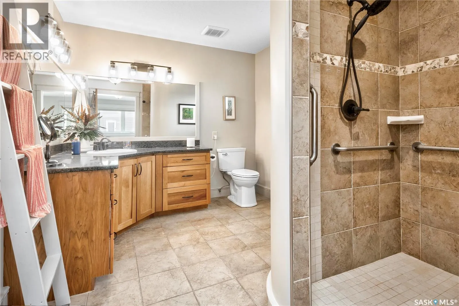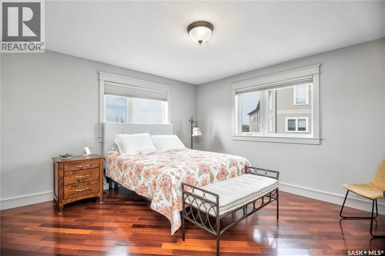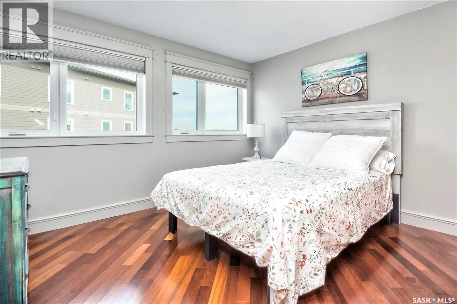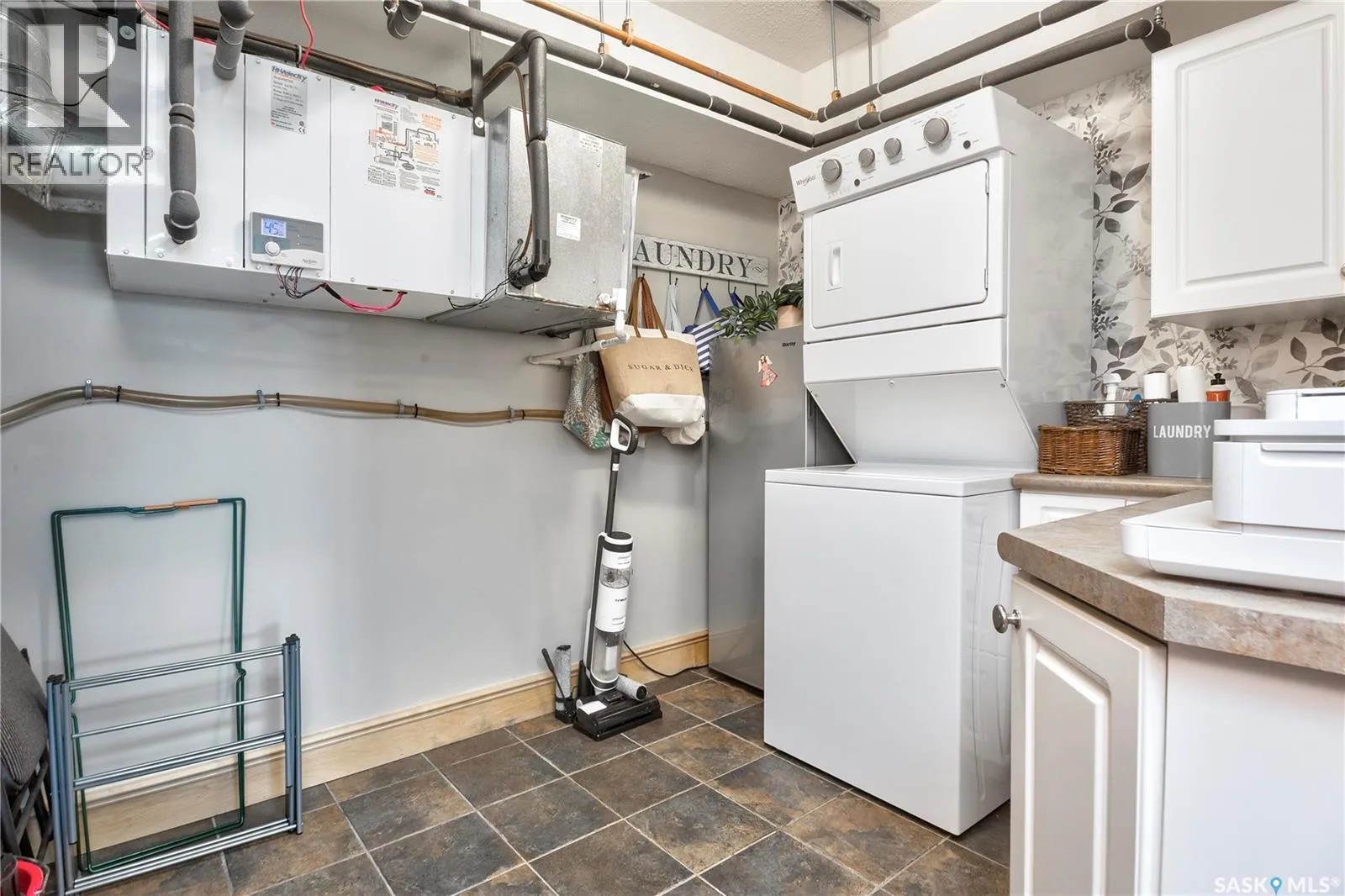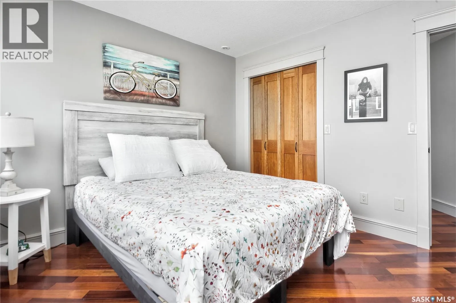 Experience elevated riverfront living in this exceptional third-floor corner condominium, offering 2,000 sq. ft. of luxurious space with some of the finest views in Prince Albert. Northeast facing, this home captures both sunrise and sunset, best enjoyed from the oversized wraparound balcony overlooking the North Saskatchewan River and Rotary Trail. The thoughtfully designed interior features a grand open-concept living and dining area, perfectly suited for entertaining or quiet evenings at home. A chefâs kitchen anchors the space with granite countertops, custom cherry cabinetry and an abundance of workspace. Brazilian cherry hardwood flooring flows seamlessly throughout, complemented by tile in the bathrooms, foyer, and laundry room. The private primary suite offers a spa-inspired ensuite and an impressive walk-in closet. Upgraded LED lighting and included heat provide both efficiency and comfort year-round. This exclusive building also offers exceptional amenities, including one in-building heated parking stall and one exterior stall, a generous common area with kitchenette and pool table, plus an exercise room for active living. With direct access to the riverbank and Rotary Trail, this residence blends natural beauty with modern eleganceâan extraordinary opportunity to own one of Prince Albertâs most desirable riverfront condominiums. Recent upgrades from 2022-2023 include a new fridge, dishwasher, air conditioner, microwave fan, washer, dryer, and freezer. (id:27476)
