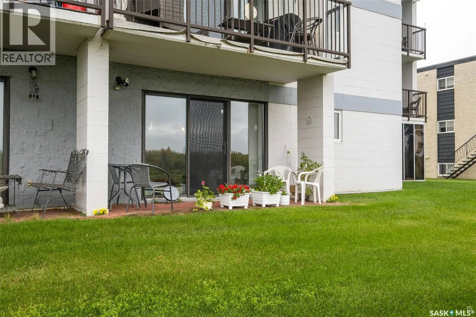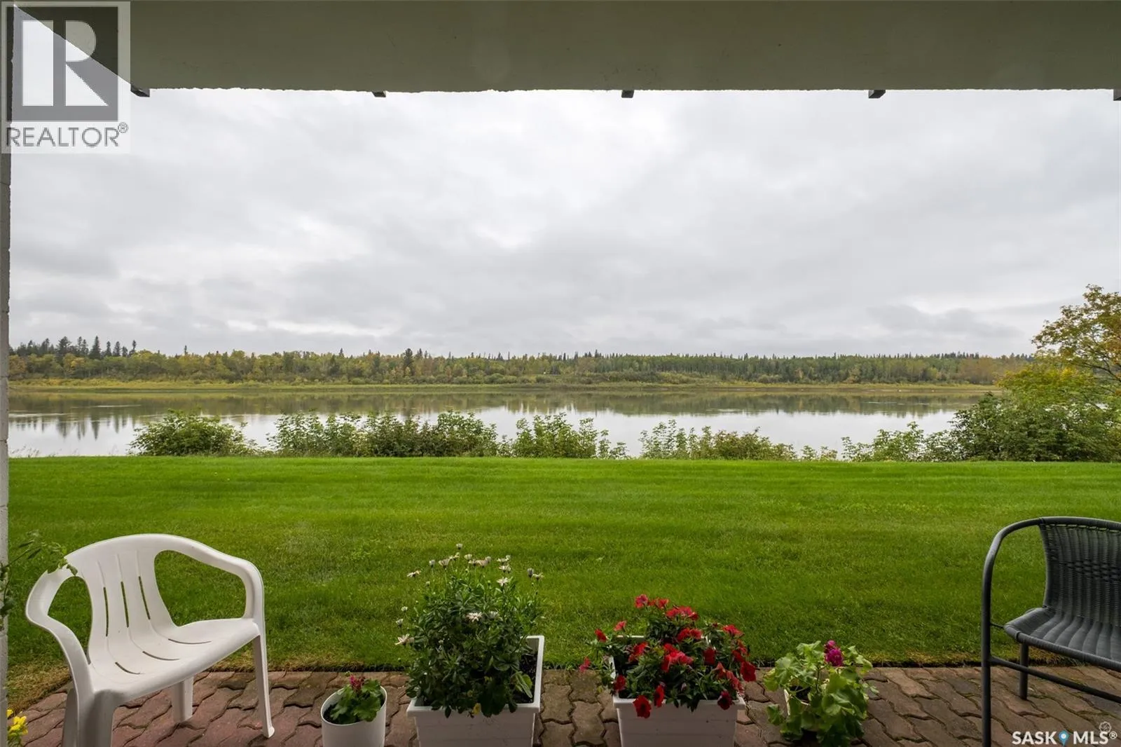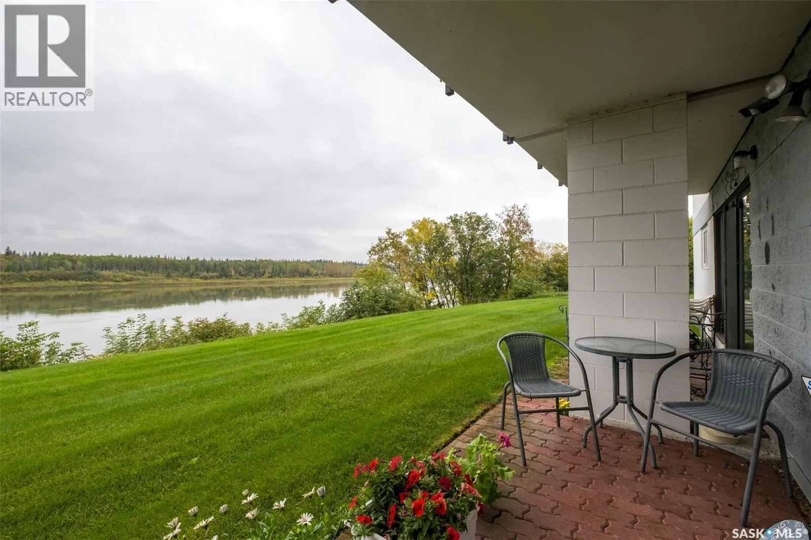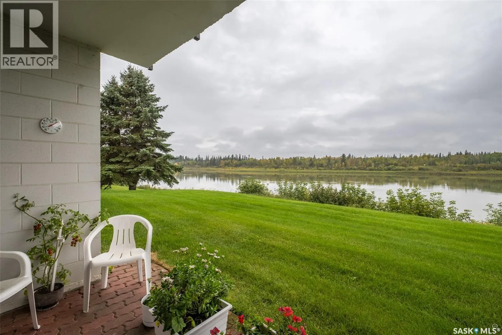 Exceptional ground level condo in the Riviera! This well-kept, move in ready 1,238 square foot unit details 2 spacious bedrooms and 2 bathrooms. The residence also comes complete with a single detached garage, loads of storage space, upgraded flooring throughout, a ground level interlocking block patio with panoramic views pf the North Saskatchewan River. (id:27476)