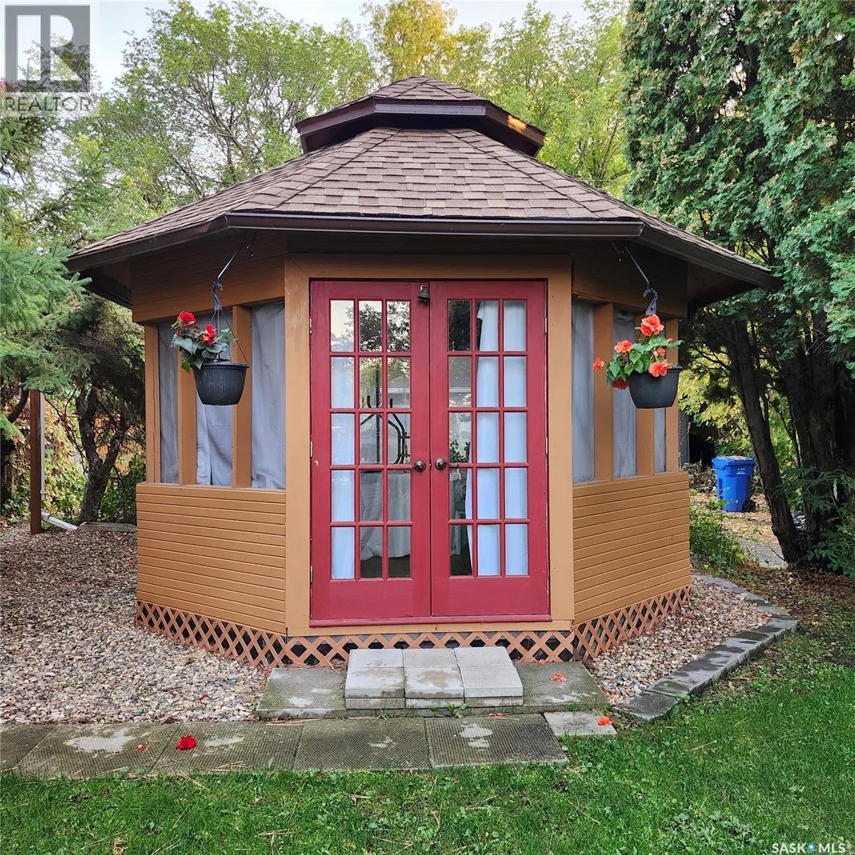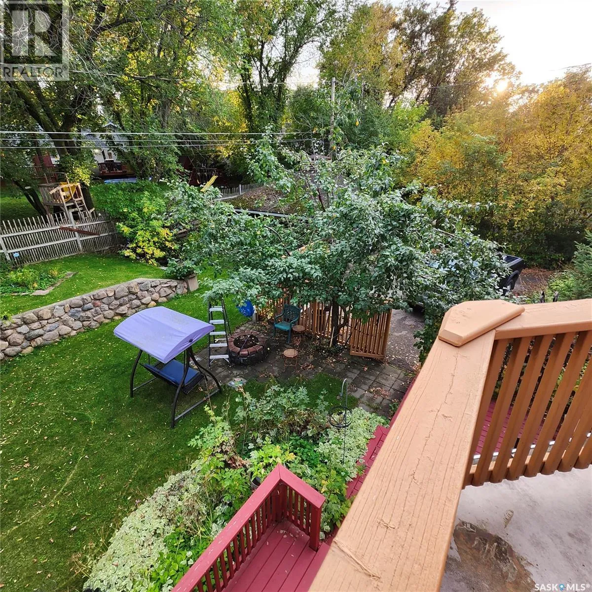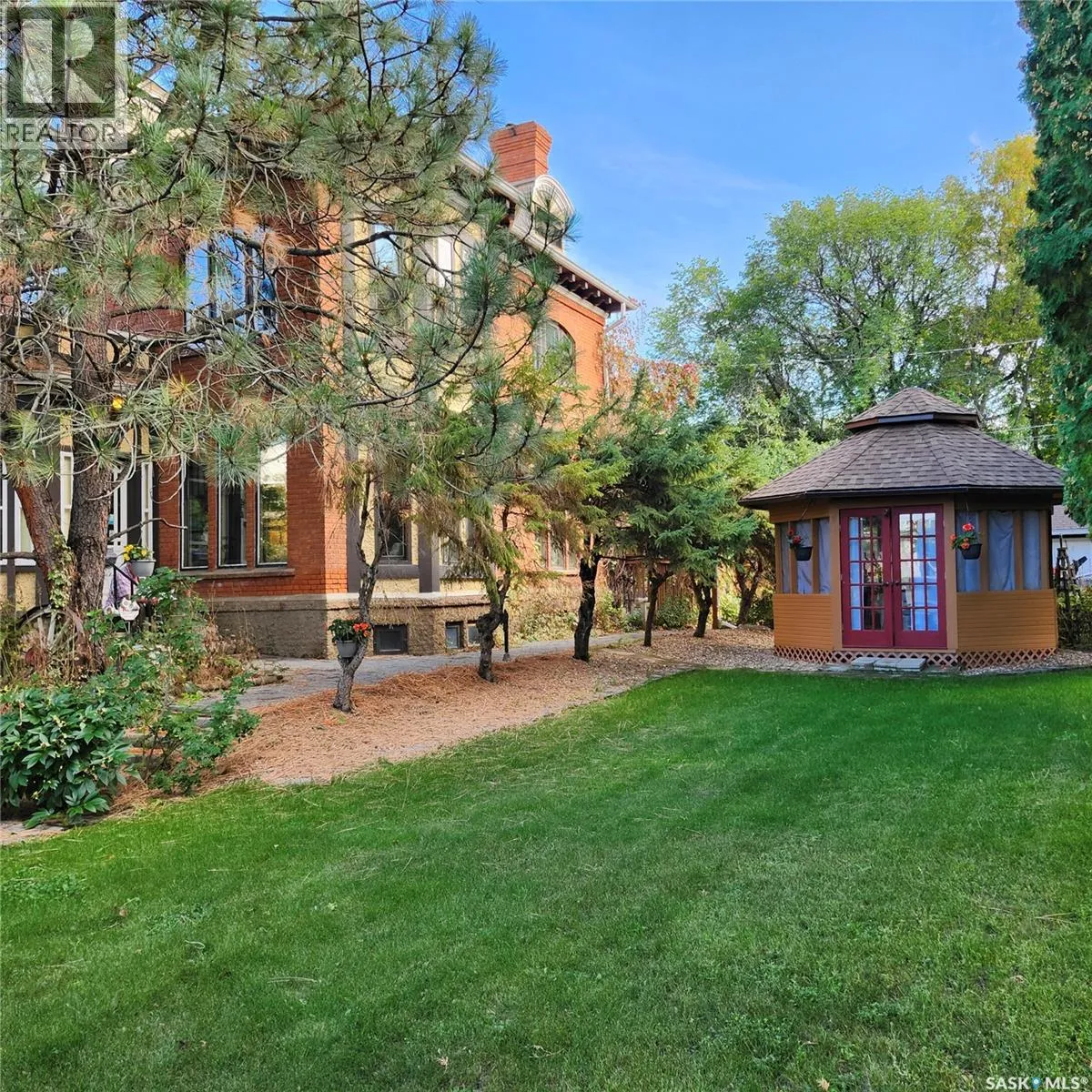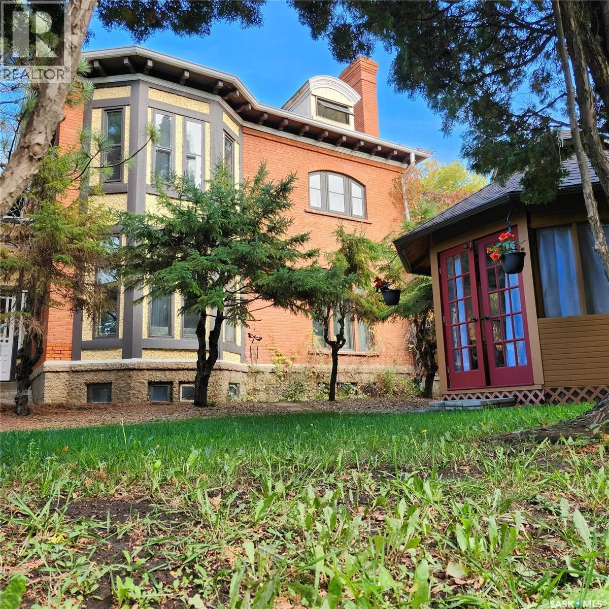 Majestic brick character home in a great West Hill location half a block from the Diefenbaker museum home. Step into timeless elegance with this stately historic manor home sitting on a rare 100 x 132 ft lot. Blending historic charm with modern comforts, this 2648 sq ft home offers soaring 9ft ceilings, intricate woodwork, stained glass windows, hardwood floors, 2 fireplaces, 7 bedrooms and 4 bathrooms. Huge kitchen with abundant cabinetry, main floor laundry, and 4 well appointed bathrooms, at least one per floor. The traditional main floor features a stately living, dining room & den areas with pocket doors for separation, entered via a front porch or rear den/sunroom (used as the owner's suite in the past). The second floor now has five bedrooms and, the largest of which has a fireplace and sitting area, and there's a 2nd level sun deck. The unique third level has a large family room/ bedroom, and 4-piece bath. The recently redeveloped basement features 2 x 2 granite flooring throughout with a 5 piece bathroom, spacious rec room, and bedroom. Outside is a beautifully landscaped, private yard full of mature trees, perennial flowers, a spacious gazebo, deck and patio areas. Detached garage 24 x24 and asphalt driveway for ample parking. This historic treasure must be seen to be appreciated. It is turnkey ready for a new family or to be shared with others as a Bed & Breakfast. (id:27476)