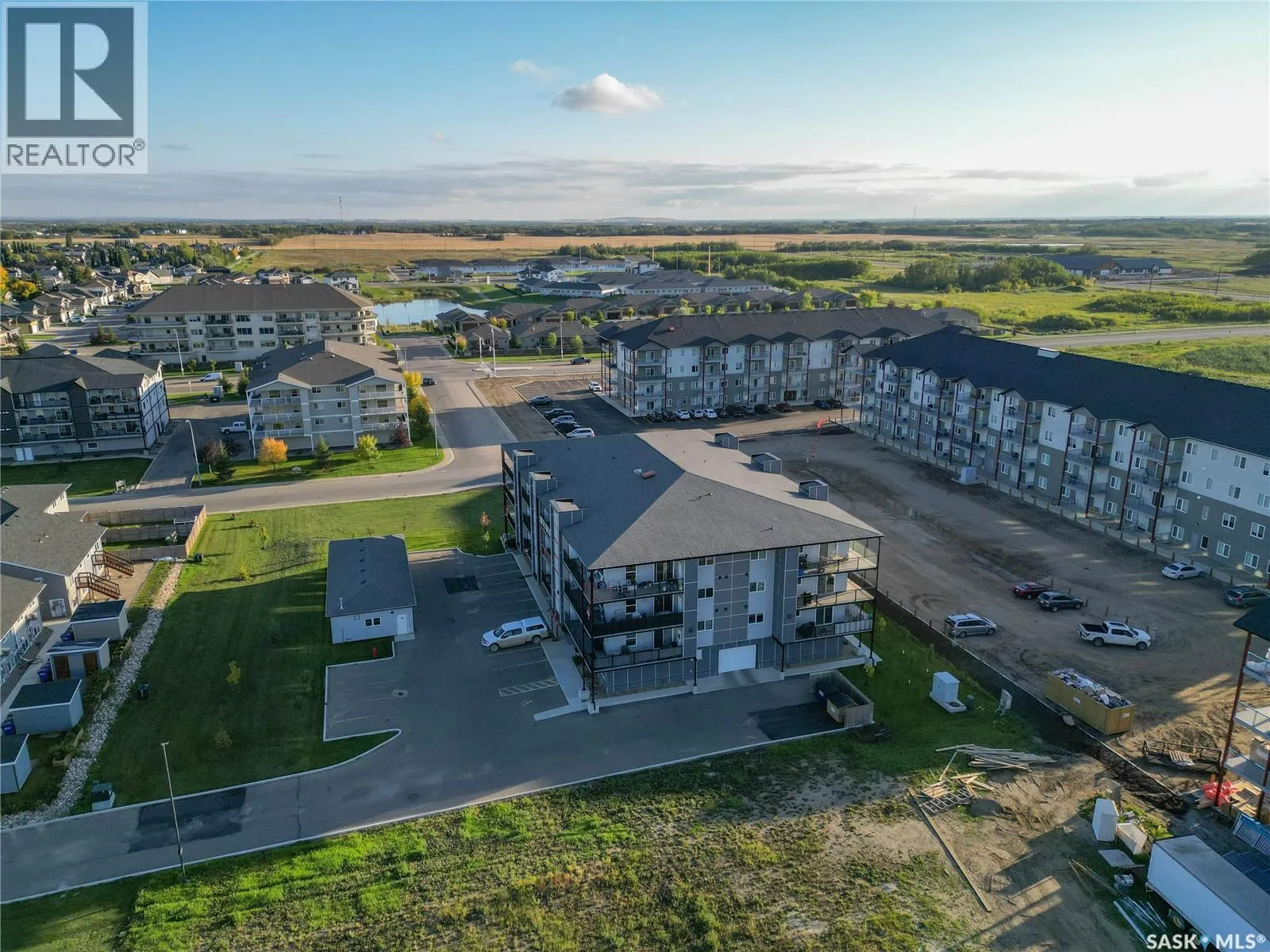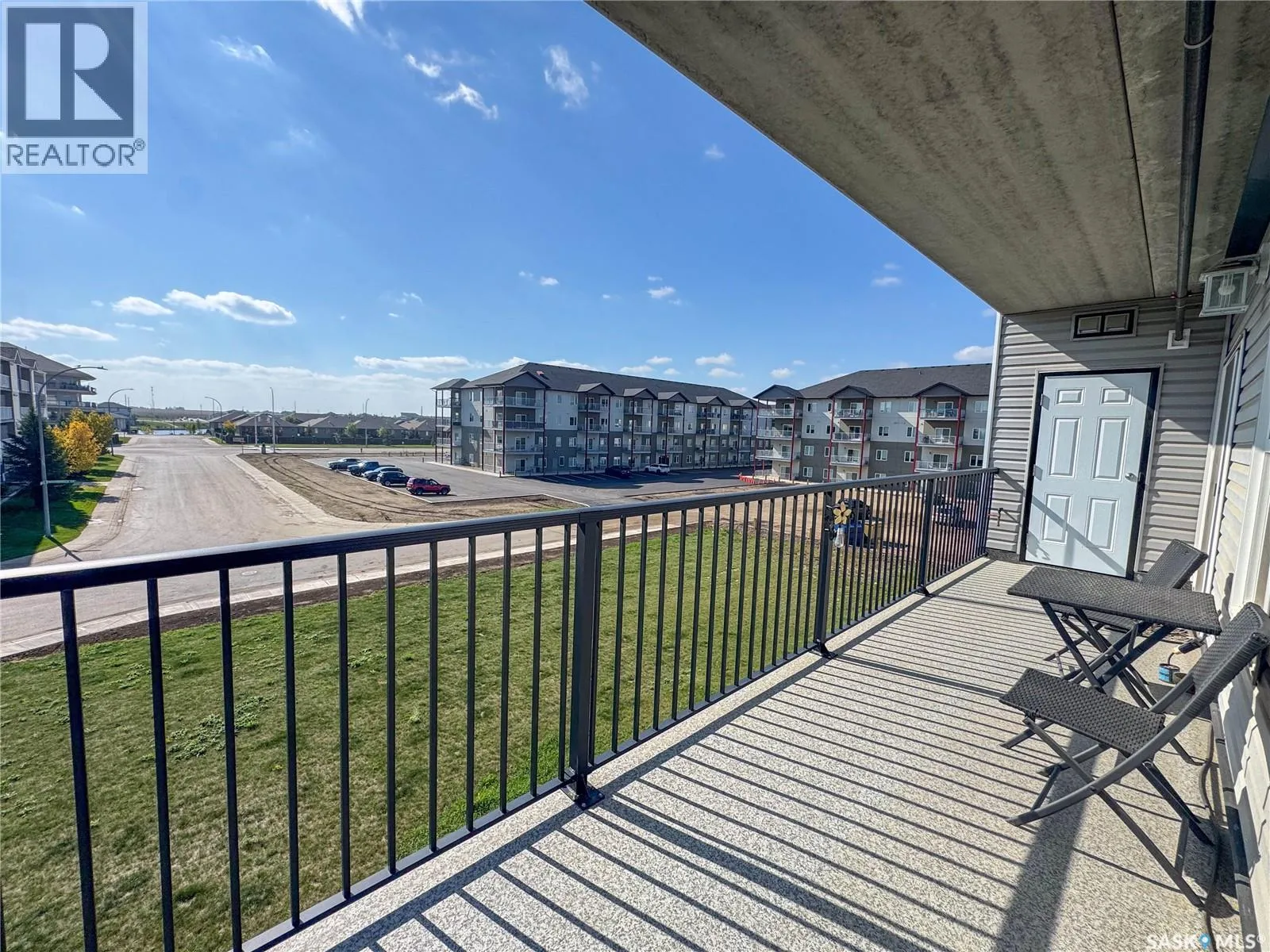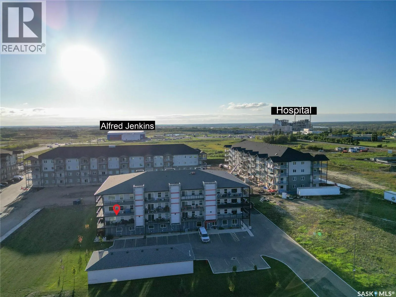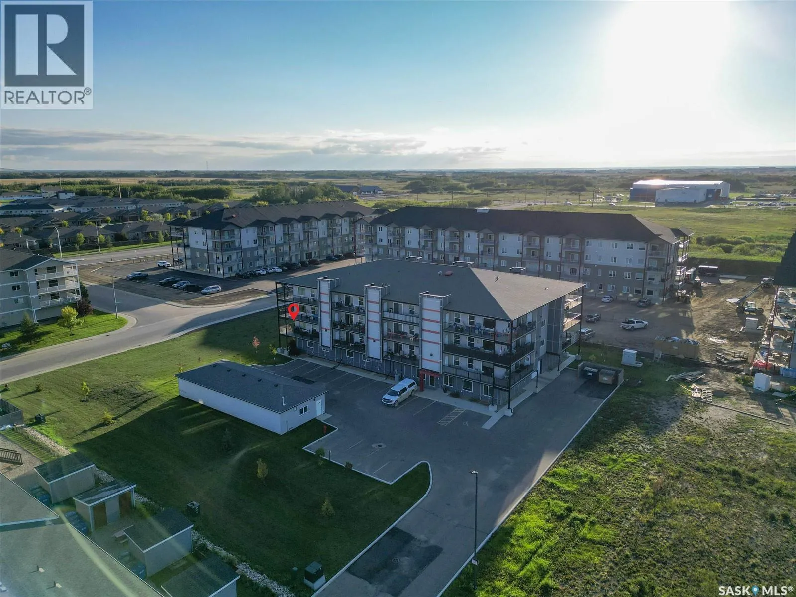 Stunning 2 bedroom, 2 bathroom condo offering 1,174 sq ft of luxury and low-maintenance living. This open-concept home features vinyl plank flooring and quartz countertops throughout, a bright white kitchen with stainless steel appliances, a 6â island, and expansive windows that flood the space with natural light. Soaring 9â ceilings enhance the spacious feel, while the southeast-facing covered wrap-around balcony includes two electrified and insulated storage rooms plus a natural gas BBQ line. The primary suite boasts its own bathroom, and the in-suite laundry provides additional storage space for convenience. Building amenities include an elevator, heated parking garage space, workshop, common room with a kitchenette, and an exercise area. Ideally located near the Alfred Jenkins Field House, hospital, and many other amenities, this condo combines elegance, comfort, and ease of living. (id:27476)