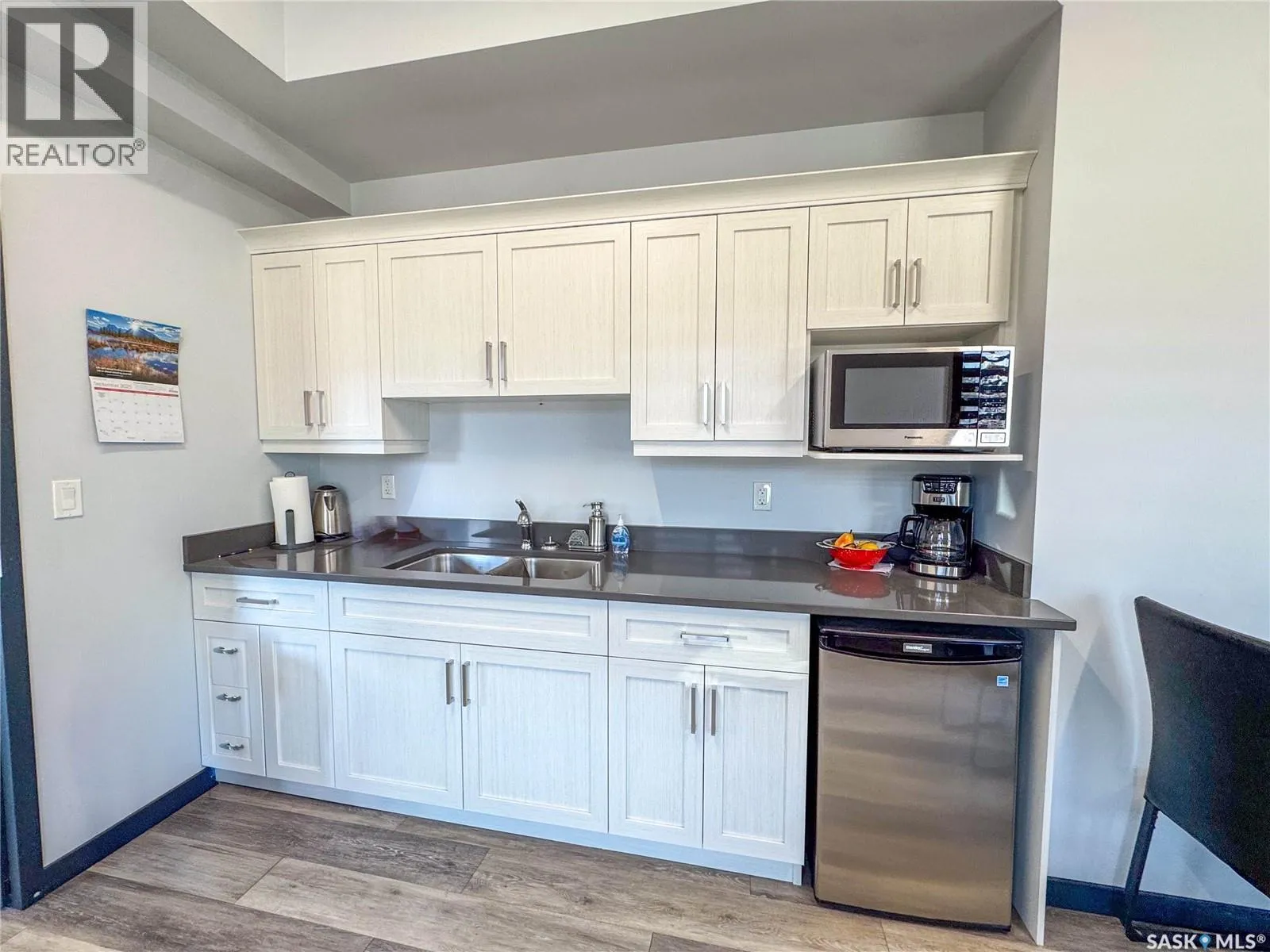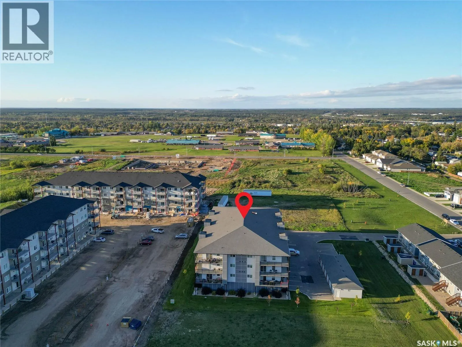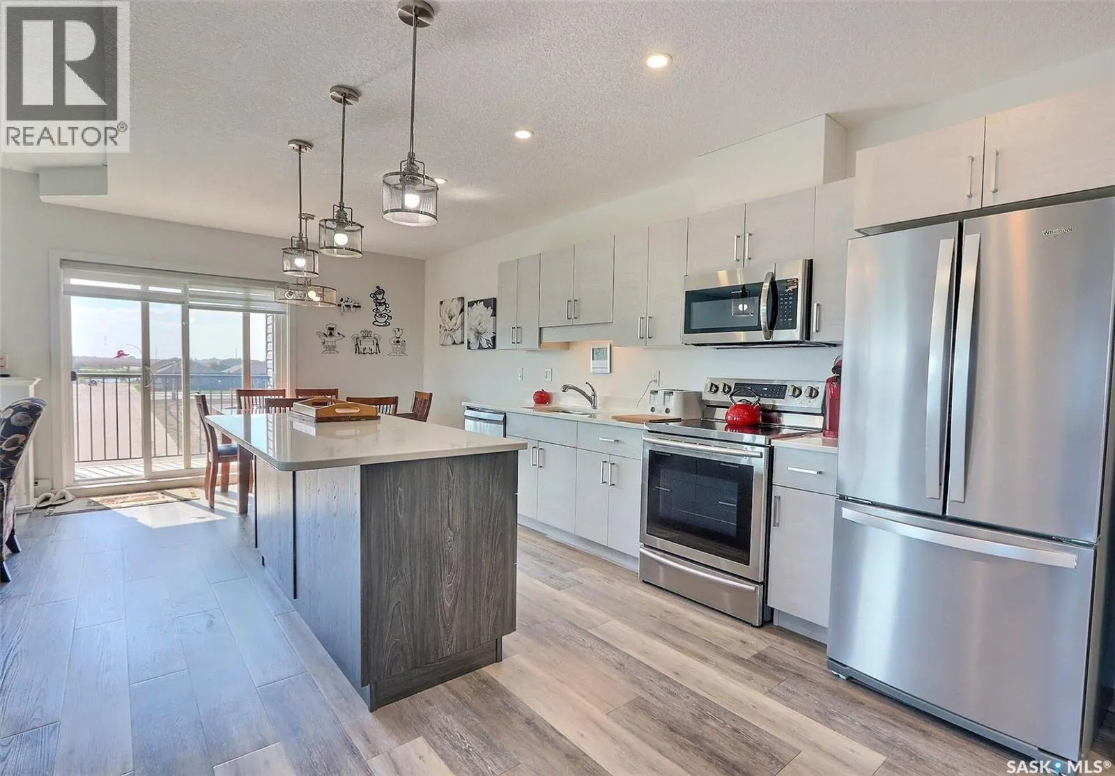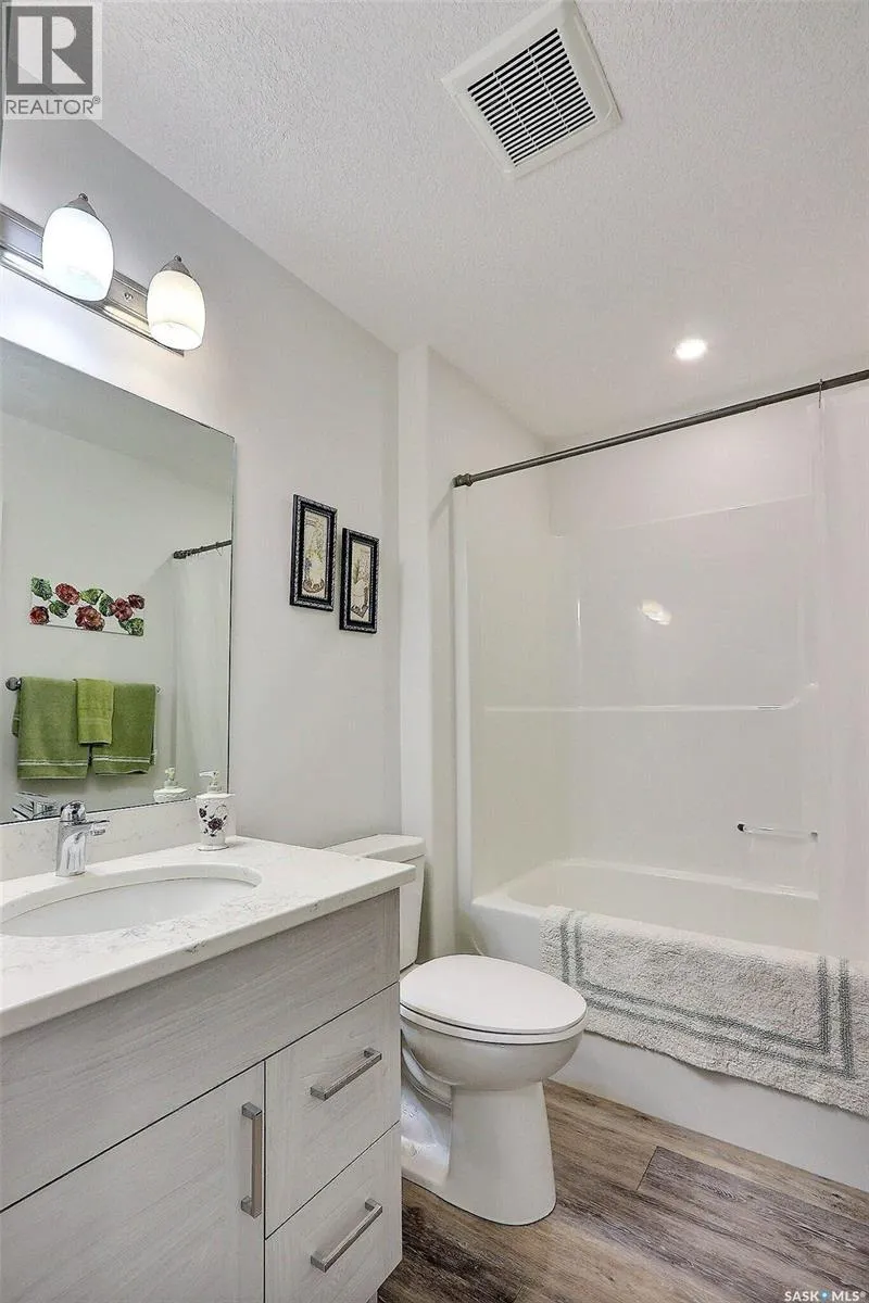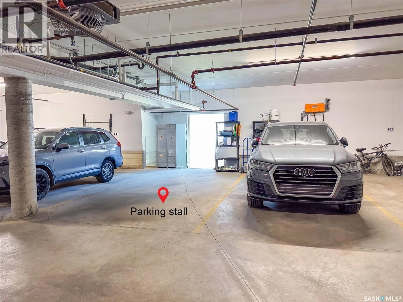 Stunning 2 bedroom, 2 bathroom condo offering 1,174 sq ft of luxury and low-maintenance living. This open-concept home features vinyl plank flooring and quartz countertops throughout, a bright white kitchen with stainless steel appliances, a 6â island, and expansive windows that flood the space with natural light. Soaring 9â ceilings enhance the spacious feel, while the southeast-facing covered wrap-around balcony includes two electrified and insulated storage rooms plus a natural gas BBQ line. The primary suite boasts its own bathroom, and the in-suite laundry provides additional storage space for convenience. Building amenities include an elevator, heated parking garage space, workshop, common room with a kitchenette, and an exercise area. Ideally located near the Alfred Jenkins Field House, hospital, and many other amenities, this condo combines elegance, comfort, and ease of living. (id:27476)