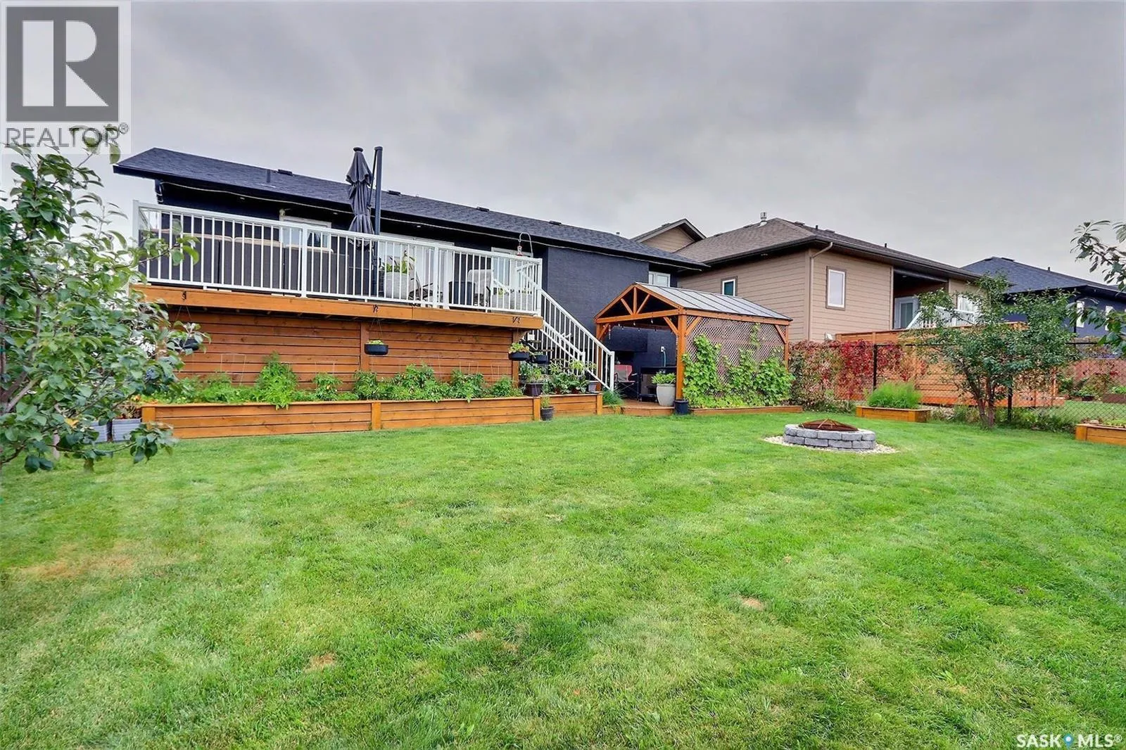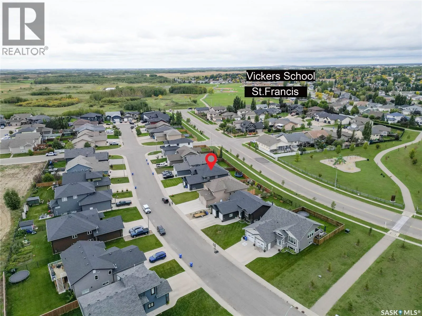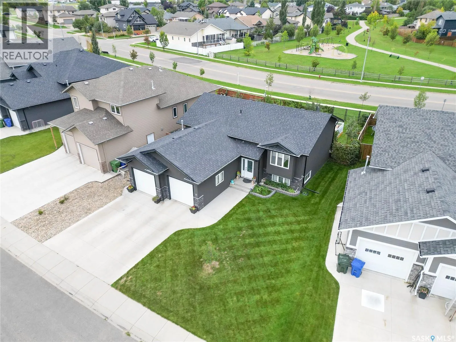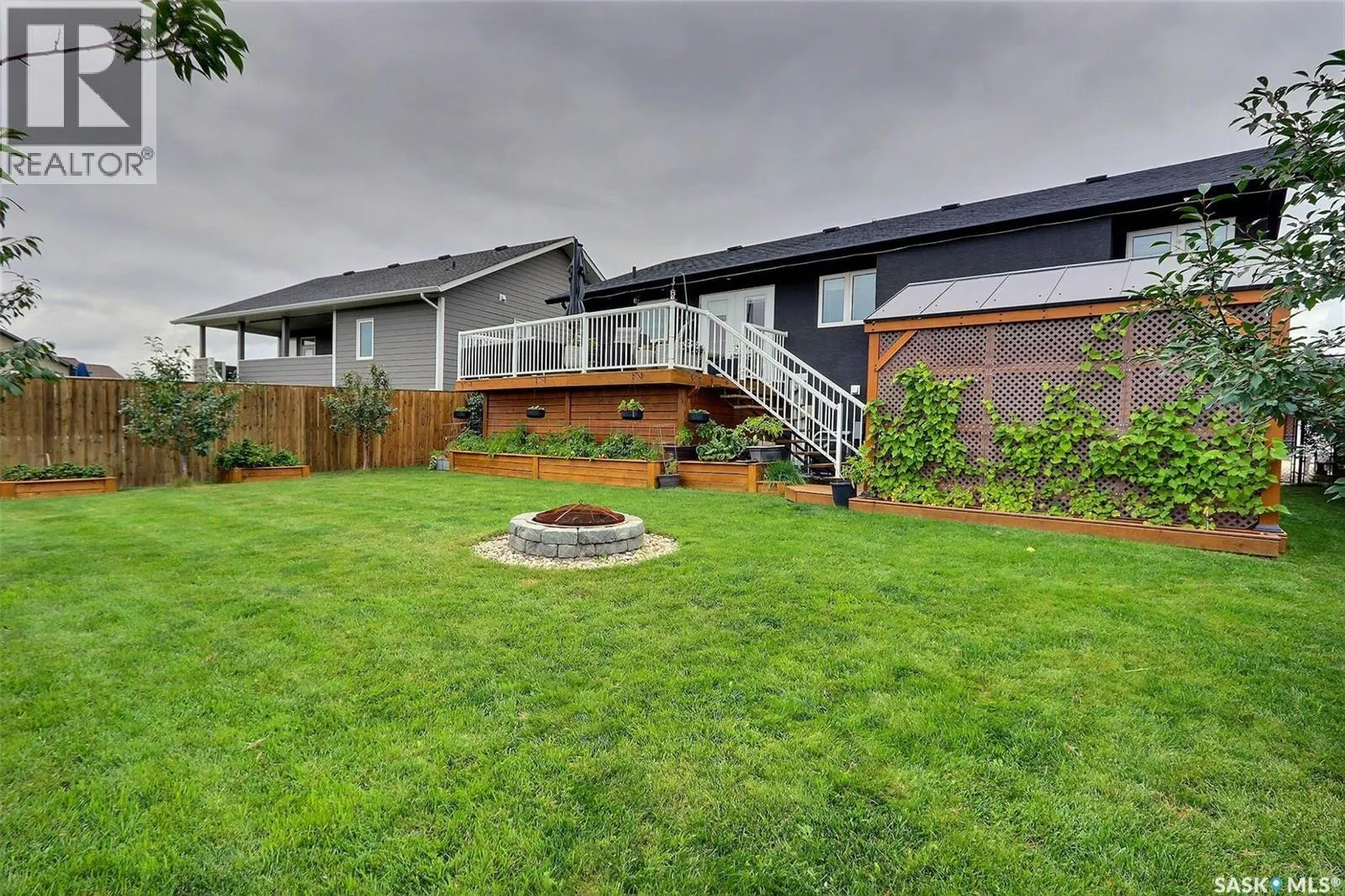 Premium Crescent Acres Location! This spacious 5 bedroom, 3 bathroom bi-level offers 1,270 sq ft of family-friendly living, built in 2014 and just steps from the park. The inviting entrance features a large closet and direct access to the 24â x 24â heated double garage. The open-concept main floor boasts vaulted ceilings, a bright living area, and patio doors leading to a two-tiered southwest-facing deck. The kitchen is equipped with dark cabinetry, arborite counters, stainless steel appliances, a corner pantry, and a large island with bar seating. Upstairs youâll find three bedrooms, including a spacious primary suite with ensuite. The fully developed basement is filled with natural light from large windows and offers a massive rec room with natural gas fireplace, two additional bedrooms, and a full bathroom â all with high ceilings. The yard is beautifully landscaped and fully fenced, complete with a gazebo, hot tub, natural gas BBQ hookup, and tiered deck. Located just minutes from St. Francis, Vickers and Holy Cross schools, as well as multiple parks and walking paths, this is the perfect home for a growing family! (id:27476)