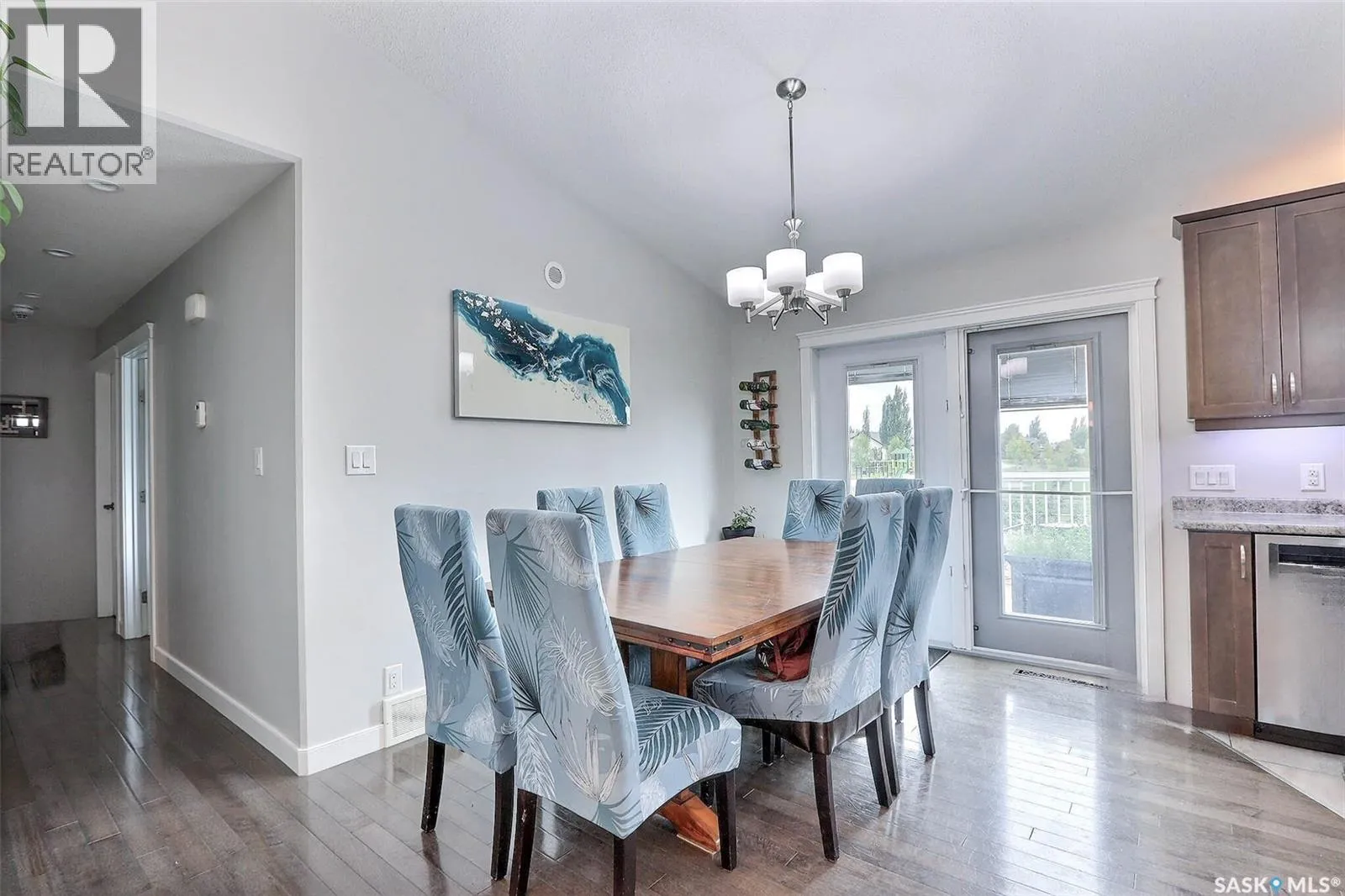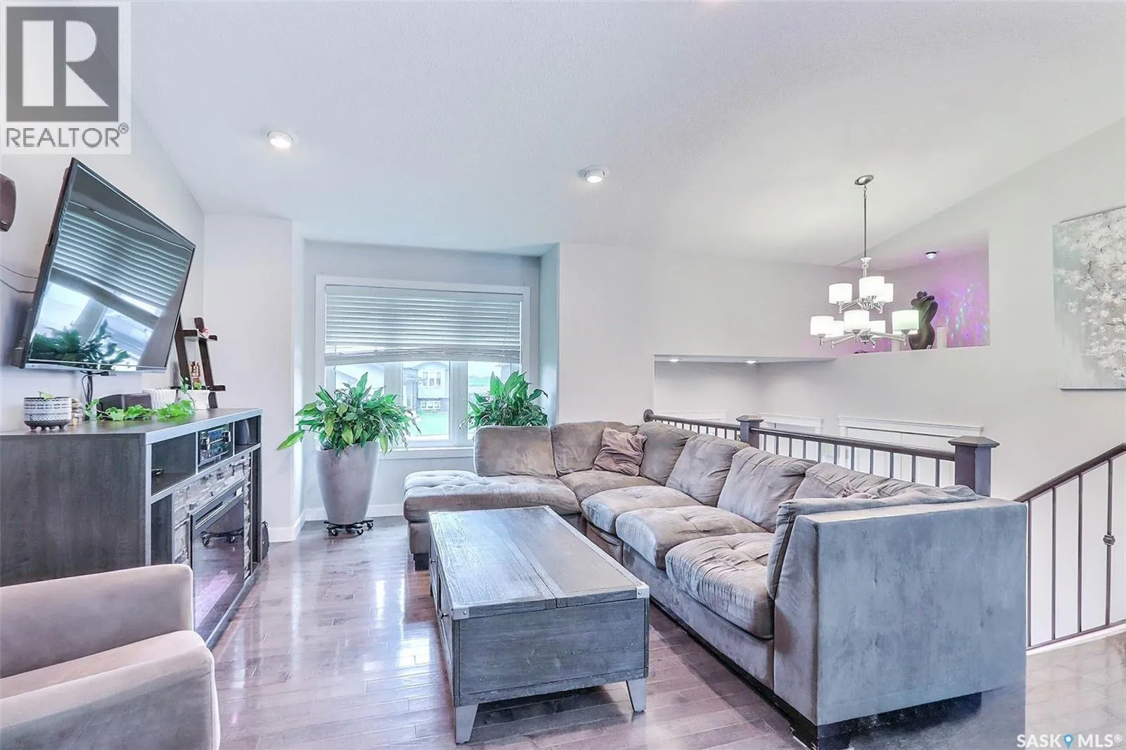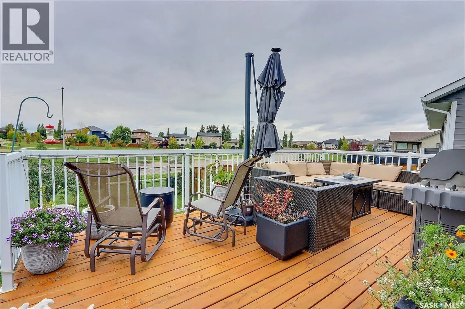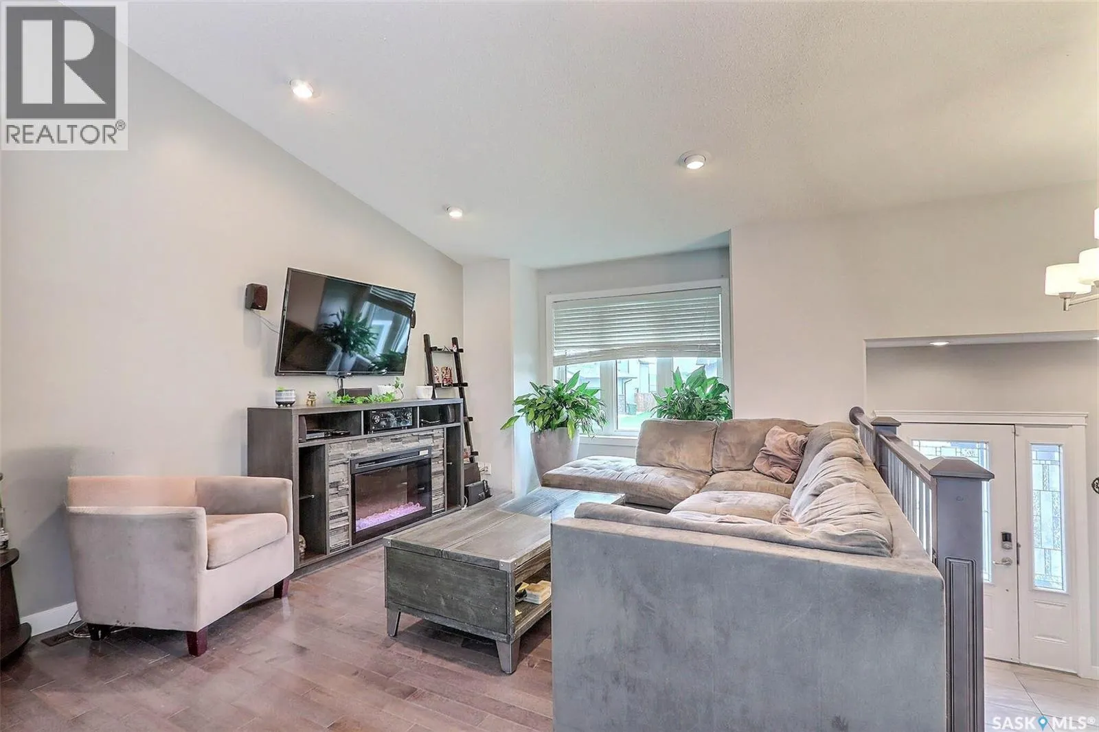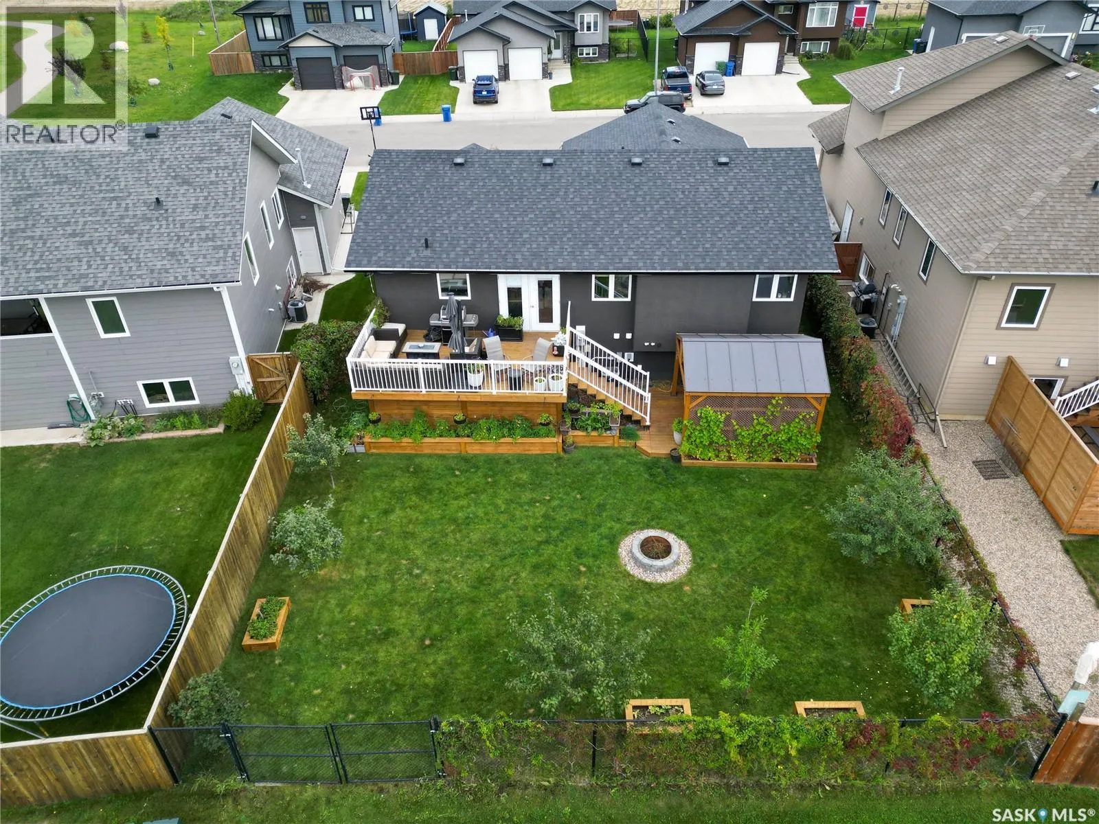 Premium Crescent Acres Location! This spacious 5 bedroom, 3 bathroom bi-level offers 1,270 sq ft of family-friendly living, built in 2014 and just steps from the park. The inviting entrance features a large closet and direct access to the 24â x 24â heated double garage. The open-concept main floor boasts vaulted ceilings, a bright living area, and patio doors leading to a two-tiered southwest-facing deck. The kitchen is equipped with dark cabinetry, arborite counters, stainless steel appliances, a corner pantry, and a large island with bar seating. Upstairs youâll find three bedrooms, including a spacious primary suite with ensuite. The fully developed basement is filled with natural light from large windows and offers a massive rec room with natural gas fireplace, two additional bedrooms, and a full bathroom â all with high ceilings. The yard is beautifully landscaped and fully fenced, complete with a gazebo, hot tub, natural gas BBQ hookup, and tiered deck. Located just minutes from St. Francis, Vickers and Holy Cross schools, as well as multiple parks and walking paths, this is the perfect home for a growing family! (id:27476)