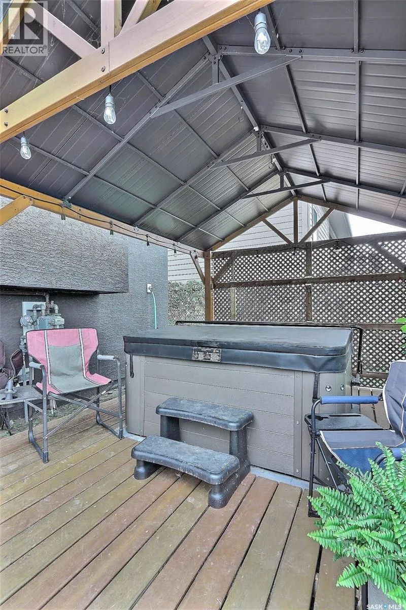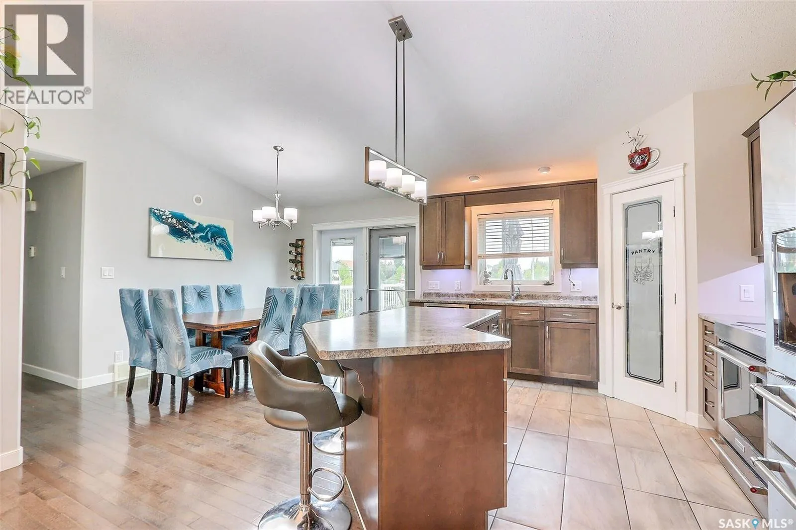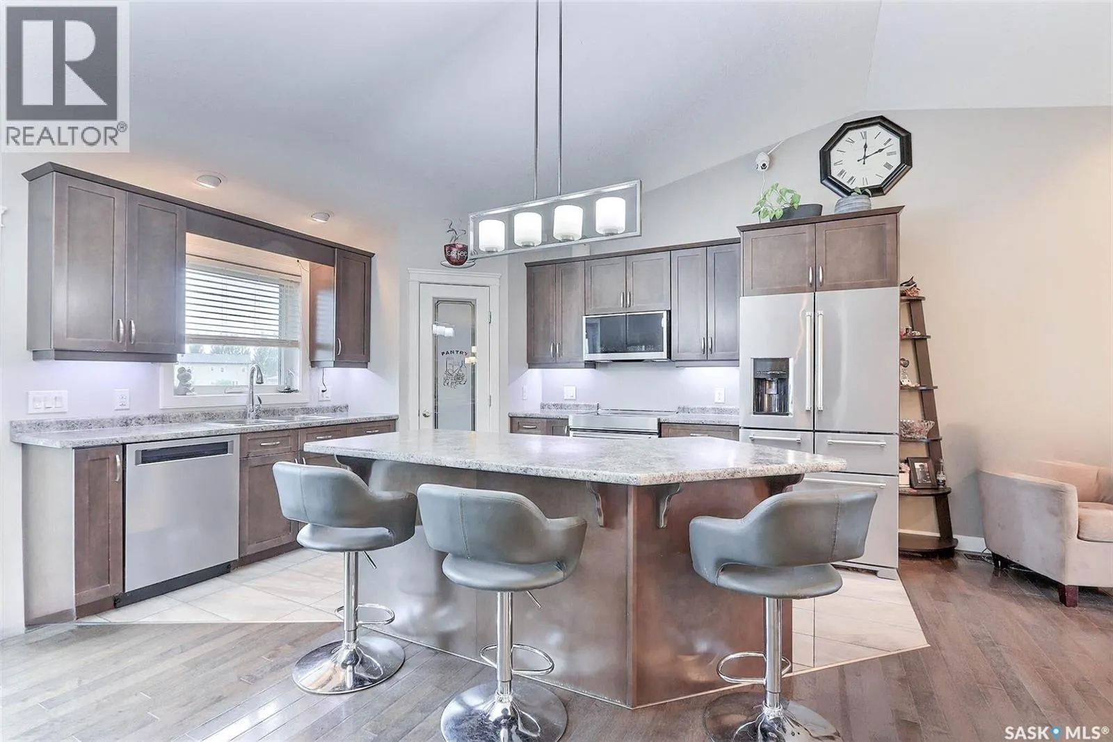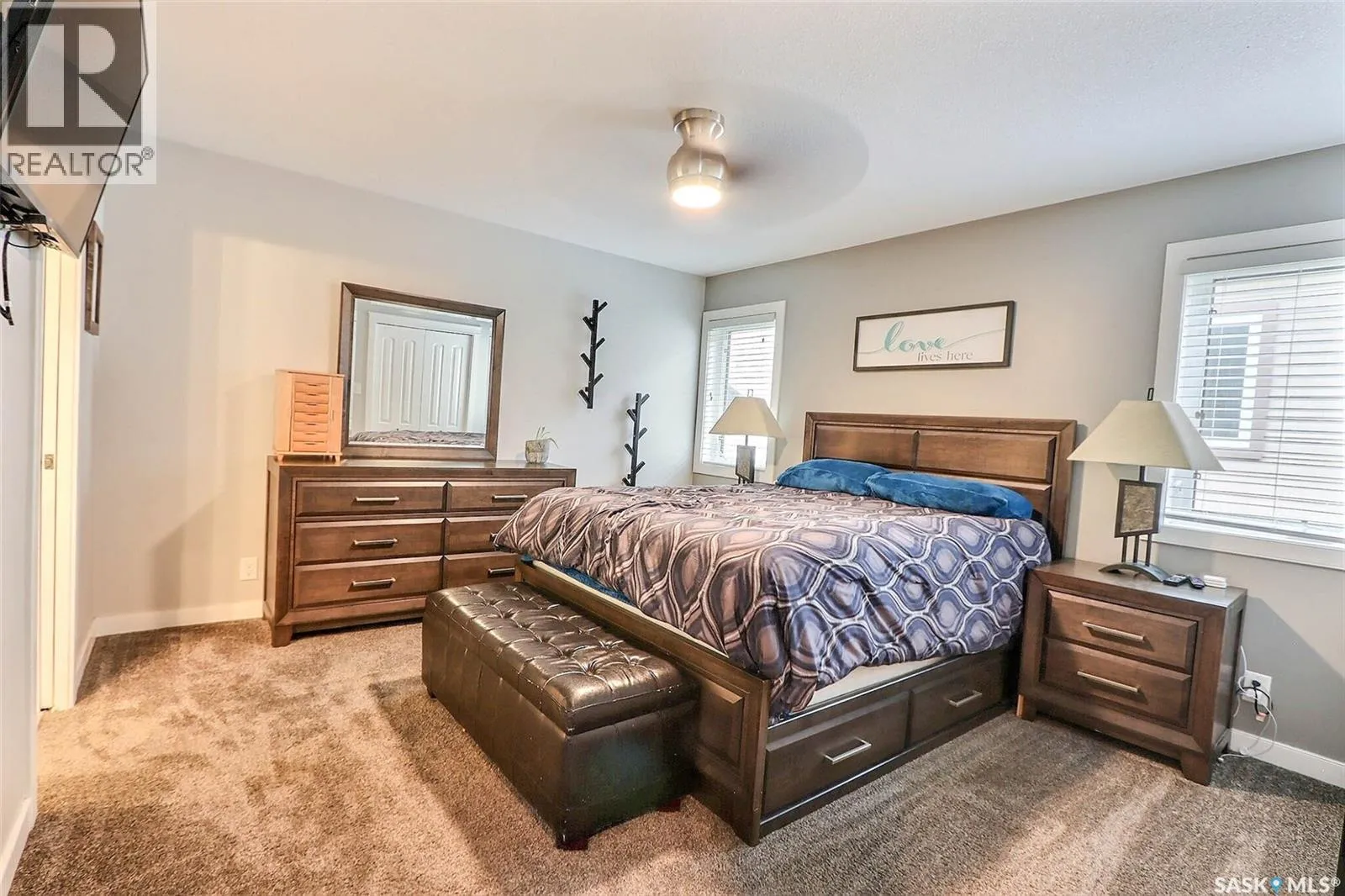 Premium Crescent Acres Location! This spacious 5 bedroom, 3 bathroom bi-level offers 1,270 sq ft of family-friendly living, built in 2014 and just steps from the park. The inviting entrance features a large closet and direct access to the 24â x 24â heated double garage. The open-concept main floor boasts vaulted ceilings, a bright living area, and patio doors leading to a two-tiered southwest-facing deck. The kitchen is equipped with dark cabinetry, arborite counters, stainless steel appliances, a corner pantry, and a large island with bar seating. Upstairs youâll find three bedrooms, including a spacious primary suite with ensuite. The fully developed basement is filled with natural light from large windows and offers a massive rec room with natural gas fireplace, two additional bedrooms, and a full bathroom â all with high ceilings. The yard is beautifully landscaped and fully fenced, complete with a gazebo, hot tub, natural gas BBQ hookup, and tiered deck. Located just minutes from St. Francis, Vickers and Holy Cross schools, as well as multiple parks and walking paths, this is the perfect home for a growing family! (id:27476)
