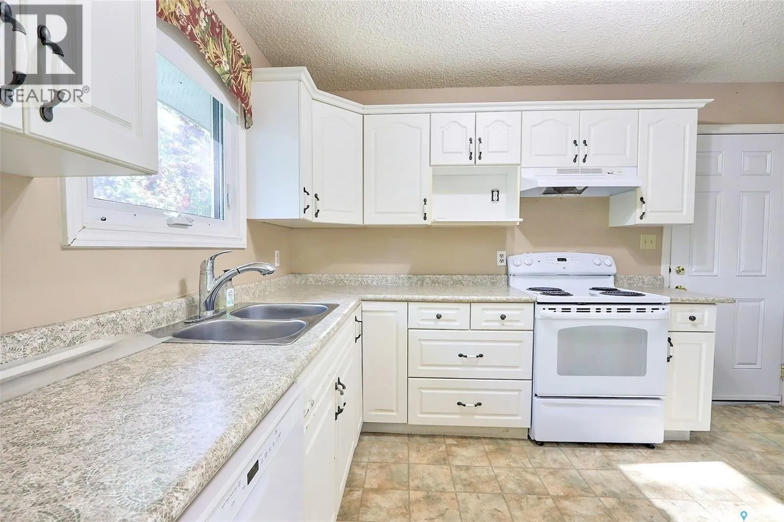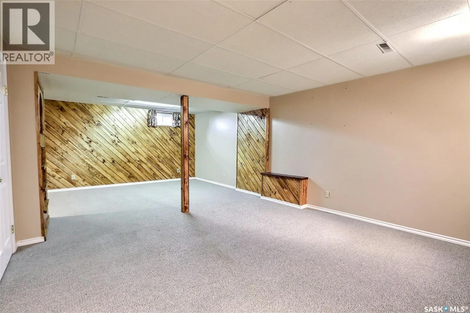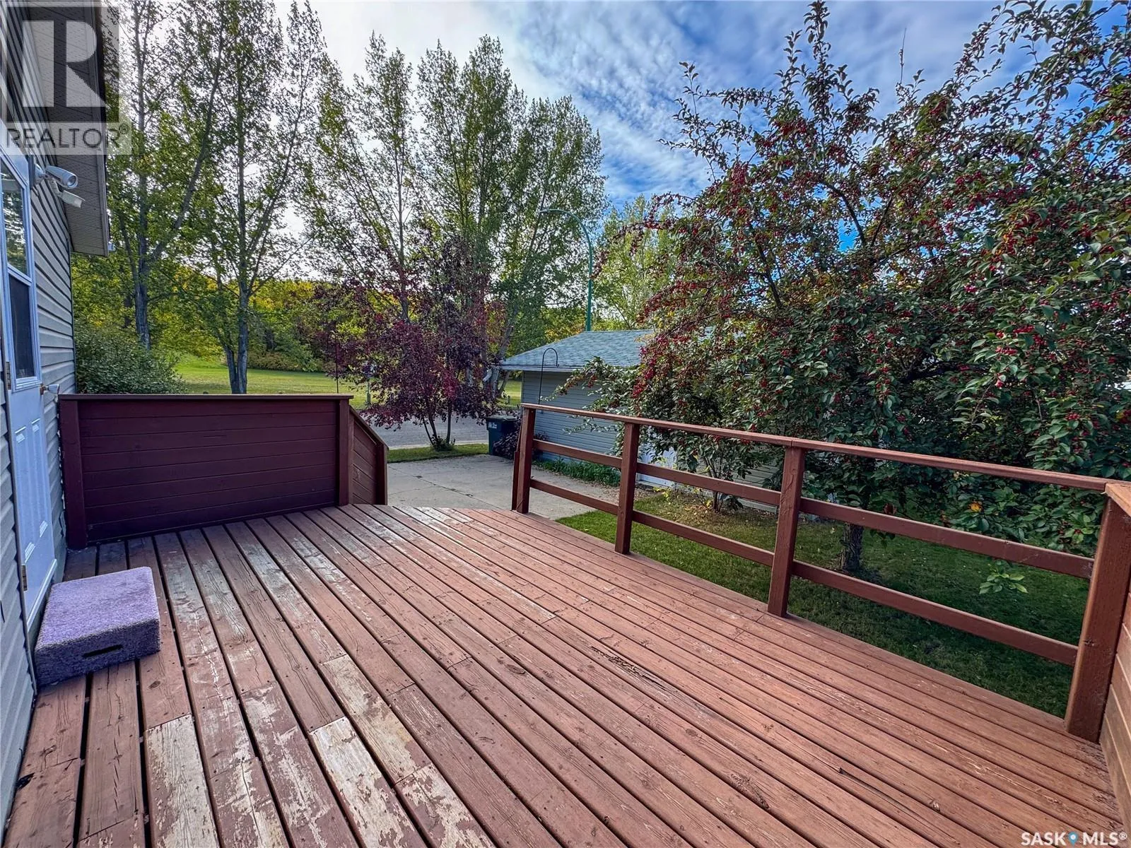 Affordable Bungalow Across from Park & School! Welcome to this charming 2 bedroom plus den, 2 bathroom bungalow nestled in a quiet Riverview neighborhood. Offering 936 sqft of bright and functional living space, this home sits on a large 57â x 119â corner lot with mature landscaping and a mostly fenced yard overlooking a green space, spray park, and Berezowsky School. The main floor features a bright white L-shaped eat-in kitchen with white appliances, a spacious living room with large windows, main floor laundry, and a full bathroom. The finished basement includes a large rec room with built-ins, a spacious den with walk-in closet, a 3-piece bathroom, and a utility room with plenty of storage space. Enjoy outdoor living on the deck overlooking the yard, and appreciate the oversized insulated single detached garage for parking and extra storage. Built in 1977, this home offers comfort, convenience, and an excellent location â all at an affordable price. (id:27476)