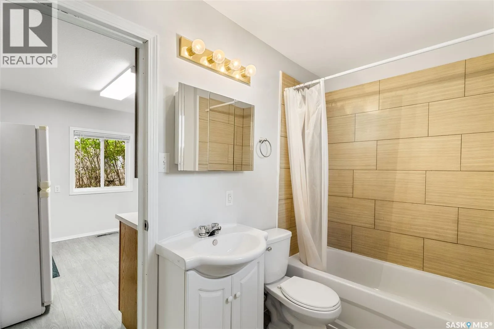 Charming 3 bedroom home in a good East Flat location which offers a list of recent updates that make this home truly move in ready. The main floor welcomes you with a spacious sun filled living room that flows into a functional kitchen featuring warm wood cabinetry. The renovated 4 piece bathroom impresses with a stylish tiled shower, while the back porch offers convenient storage for outdoor gear or everyday essentials. Upstairs, you will find three generously sized bedrooms with great natural light and updated finishes throughout. The lower level offers a laundry area and plenty of storage space. Step outside to enjoy a fully fenced and well maintained yard with a cozy fire pit area perfect for relaxing or entertaining. A gravel parking pad at the front and a single detached fully insulated garage provide off street parking and additional storage or workspace. New shingles were installed in 2025, along with a new water heater added in 2024. The interior has been refreshed with vinyl plank flooring, fresh paint and a completely renovated bathroom all completed in 2021. Just steps from the scenic Rotary Trail along the river and close to schools, parks and other amenities. Move in ready and full of potential, this home is a smart choice for investors seeking a turnkey rental or buyers seeking a quality home in a great location. Don't miss out, act now! (id:27476)