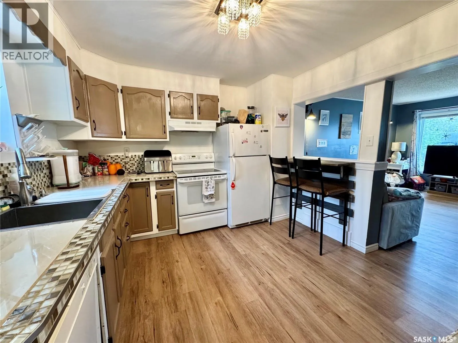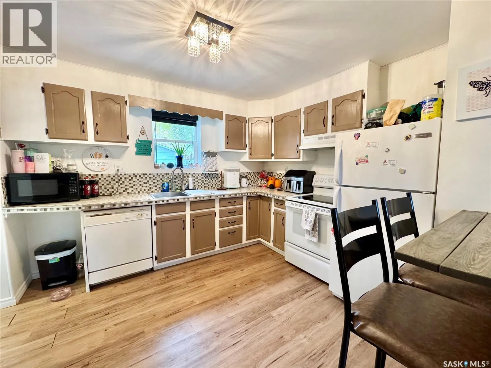 The perfect place to start! 100% move in ready this 2 bedroom, 1 bathroom entry level home is situated within a quiet East side neighbourhood and is close to all amenities. The main level of the residence provides a spacious front living room with southern exposure, an L shaped kitchen with combined dining and an overhauled 4pc bathroom. The exterior of the property comes fully fenced and supplies a ground level patio area, huge front gravel driveway with a single detached garage off of the rear lane. (id:27476)