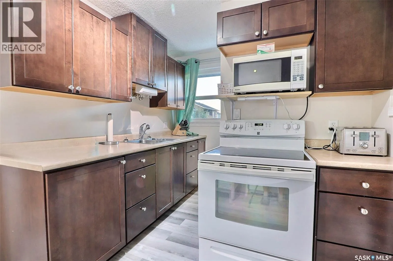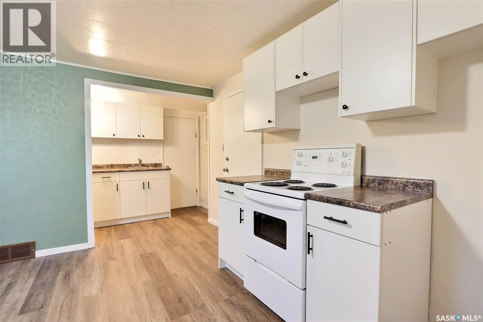 This exquisite 780 sq/ft raised bungalow features 2 bedrooms and 1 bathroom on the main level, plus a bright non-conforming 2 bedroom, 1 bathroom suite in the basement with a separate entranceâperfect for guests, extended family, or rental income. The main floor is bright and airy, highlighted by new flooring and a warm, inviting layout. The kitchen offers dark cabinets, white appliances, and a cozy breakfast nook, while the primary bedroom includes double closets for ample storage. Downstairs, the basement suite feels equally welcoming, with large windows bringing in plenty of natural light. Recent updates include new cabinets, flooring, and landscaping, along with an updated forced-air natural gas furnace and natural gas hot water heater for efficient comfort year-round. Outside, the generous 49.97â x 184.91â lot offers endless possibilities â whether you want garden space, room for kids to play, or future development potential. The expansive back deck is perfect for relaxing or entertaining. This property is move-in ready and presents an excellent opportunity as a distinguished starter home or a valuable addition to your rental portfolio. (id:27476)