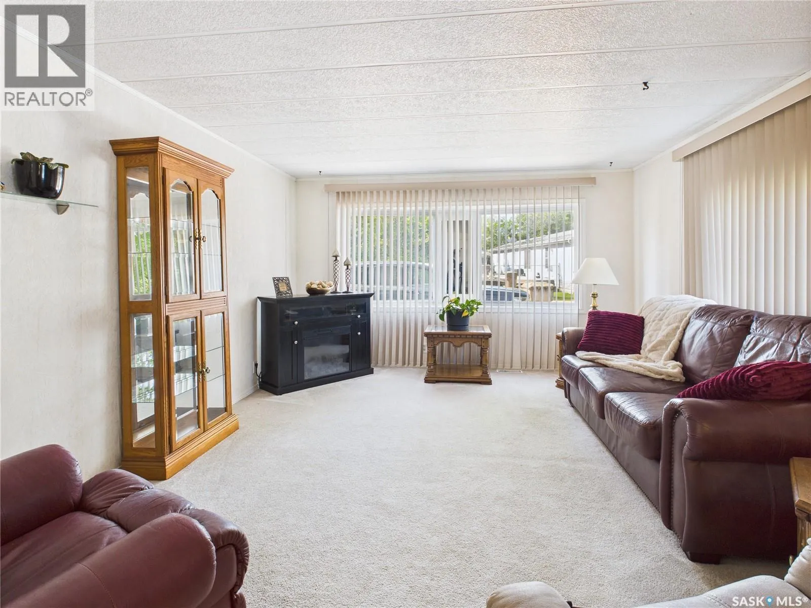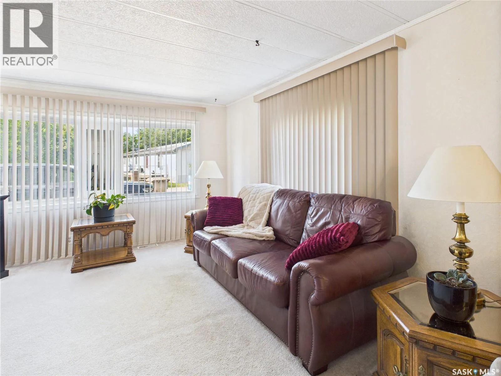 Welcome to this beautifully maintained 2-bedroom, 1-bath mobile home in Eastview Trailer Park! Bright, clean, and move-in ready, this home offers an affordable opportunity to step into homeownership or downsize in comfort. With a spacious layout, great natural light, a well-cared-for interior, and a carport, this property is perfect for someone looking for low-maintenance living in a quiet community. Quick possession is available and it comes with most of the furniture pictured. Literally turn the key, move in and make it your own! Contact your favourite REALTOR to book a showing now! (id:27476)