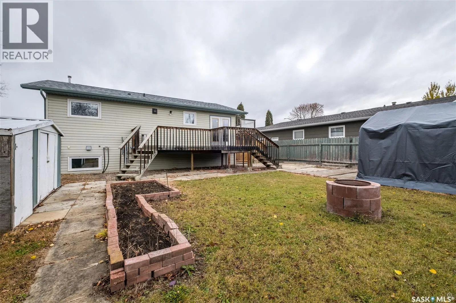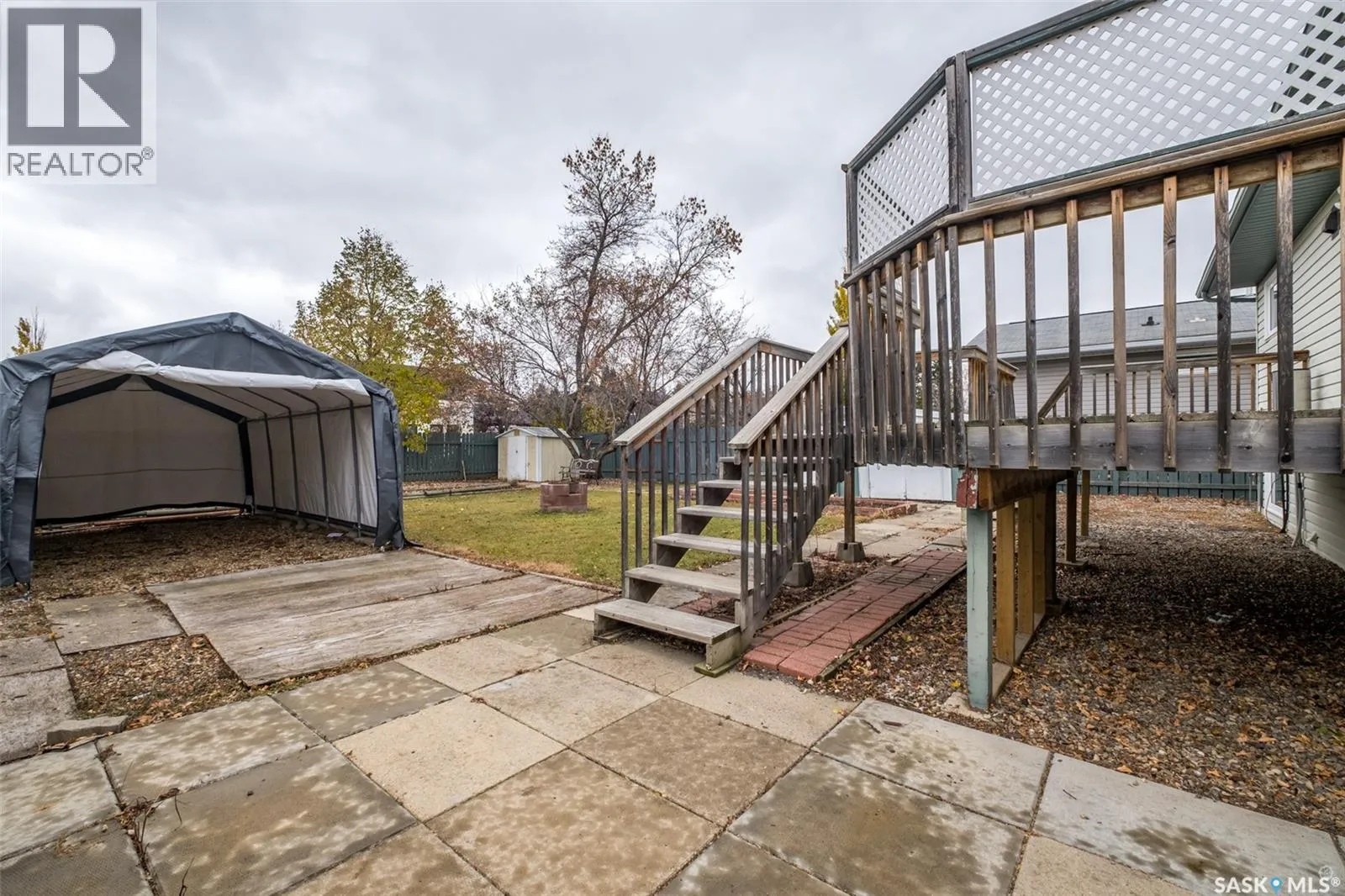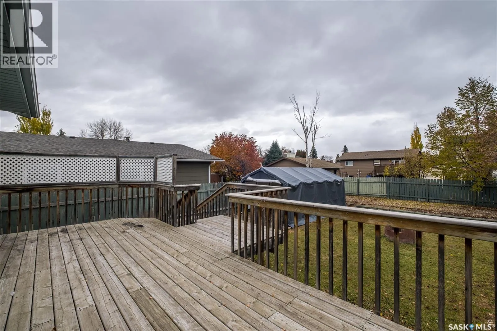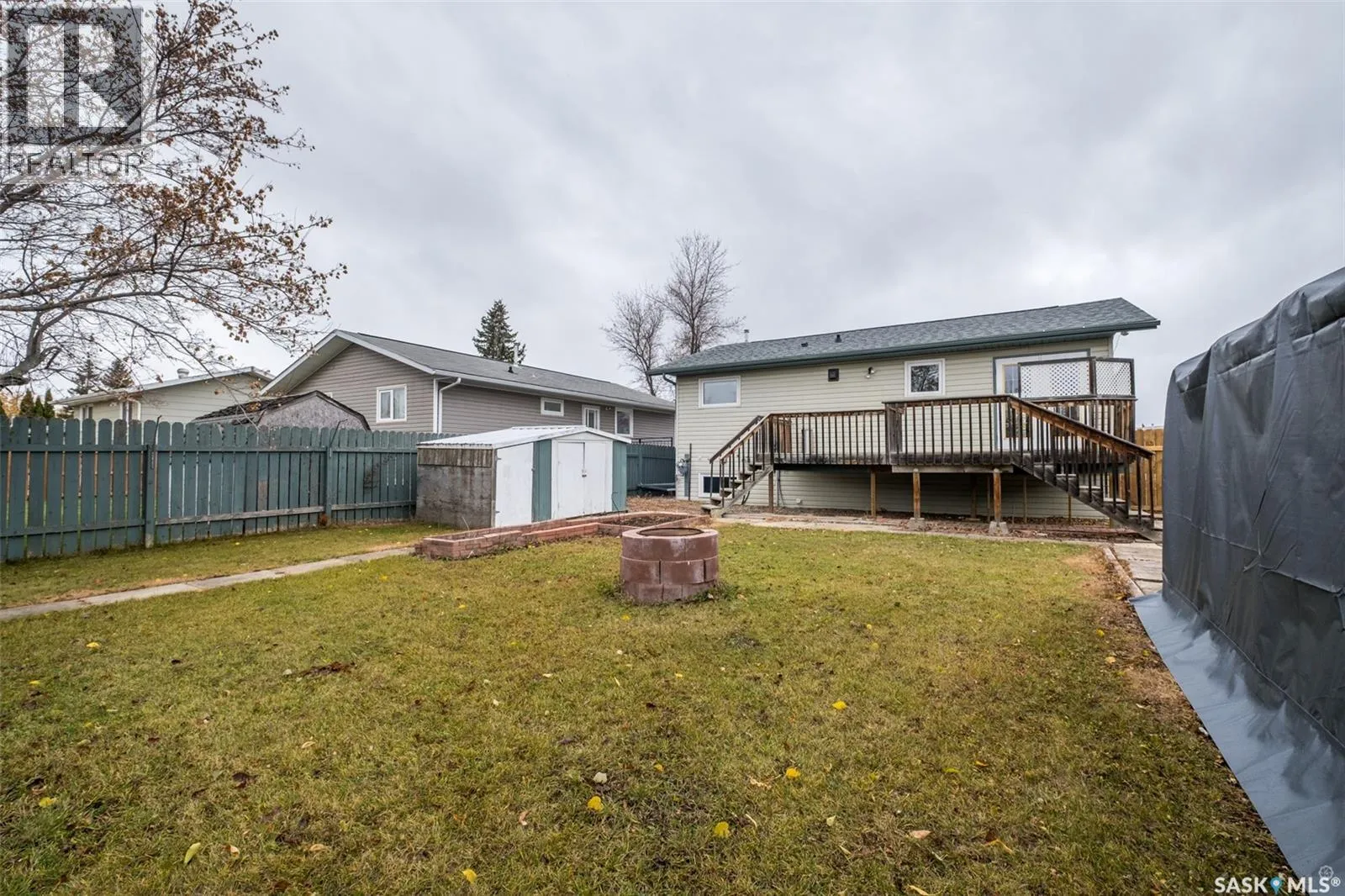 Remarkable 2 + 1 bedroom bi-level located in the desirable Carlton Park neighbourhood, directly across from the Carlton Park Community Club and within walking distance to nearby parks and schools. The main floor features a bright and spacious living room with a large picture window and a cozy wood burning fireplace that creates an inviting space to relax and unwind. The kitchen offers plenty of cabinetry and counter space, South facing windows that fill the area with sunlight and direct access to the large deck which is an ideal setting for entertaining family and friends. There are also 2 comfortable bedrooms and a 4 piece bathroom that complete this level. The fully finished basement offers a sprawling family room, a 3rd bedroom, a 3 piece bathroom with a stand up shower and a combined laundry/utility room. Additional notable features include central air conditioning, a newer fridge, washer and dryer and shingles replaced just 1 year ago. The property is fully fenced and beautifully maintained with mature trees, a fire pit area, a garden space for the green thumb, underground sprinklers and a new coverall garage shelter. Immediate possession is available. Act now and make this your next home! (id:27476)