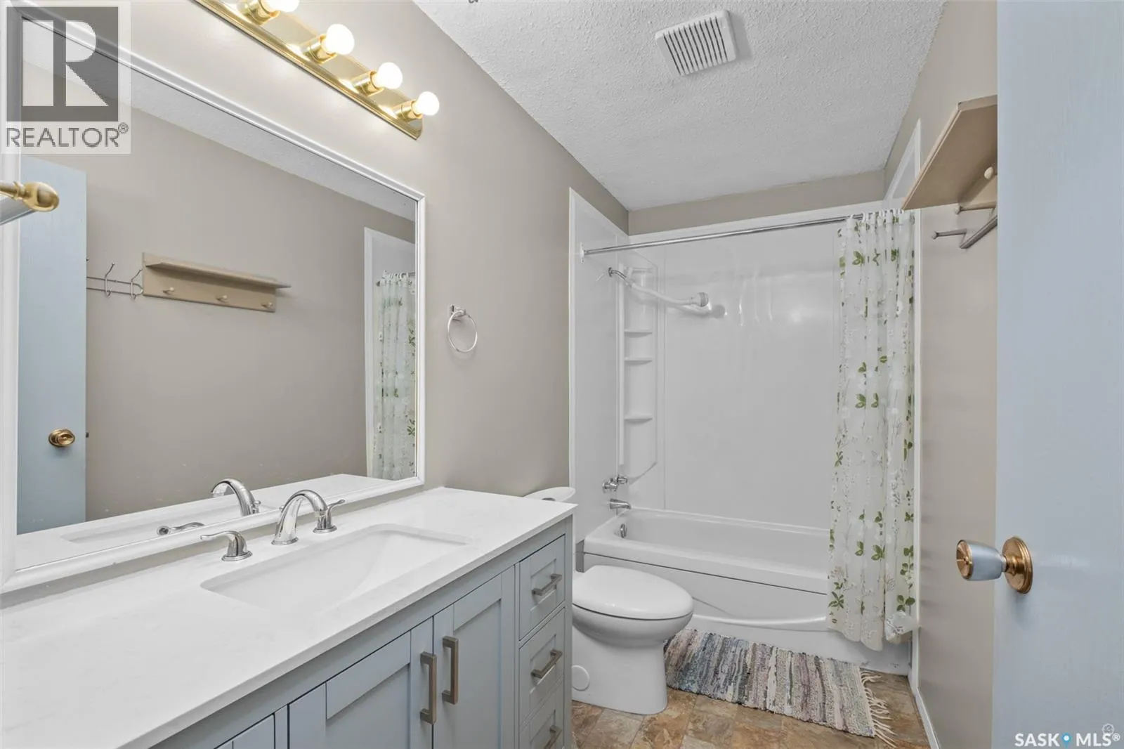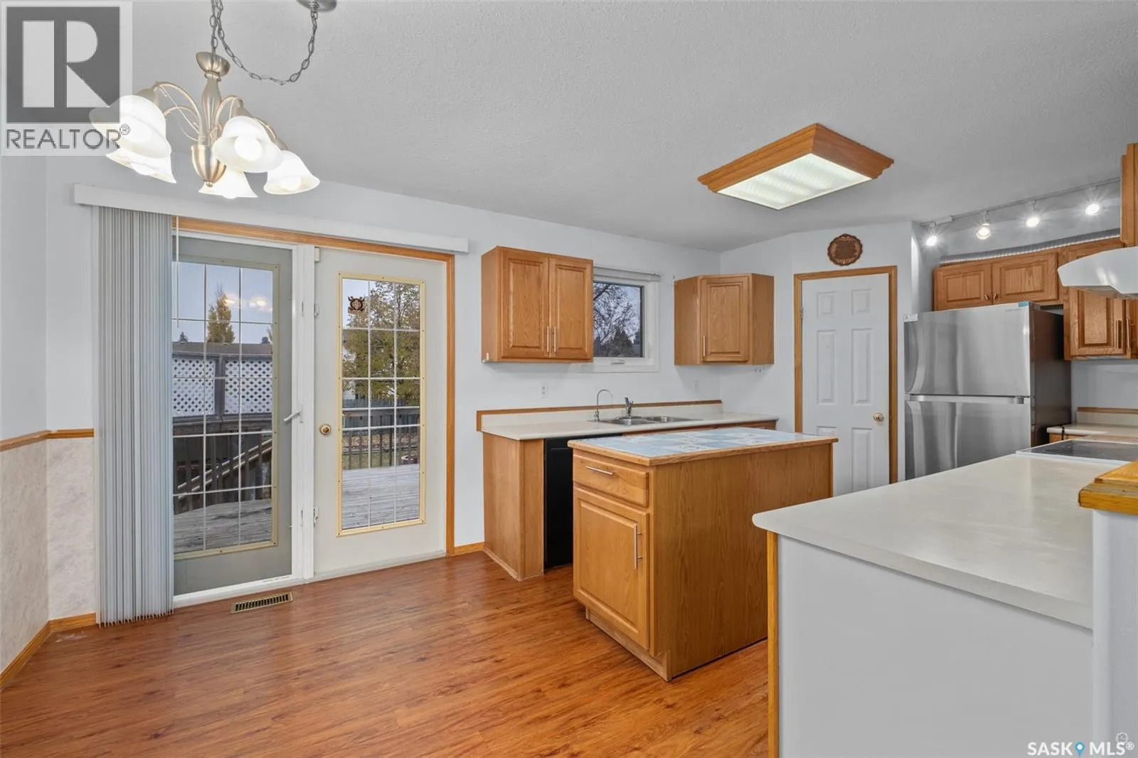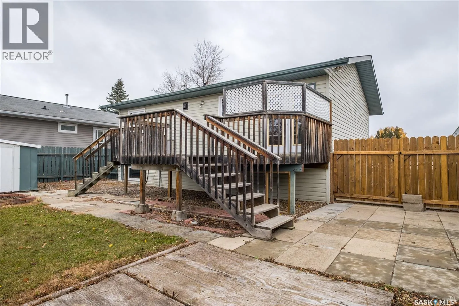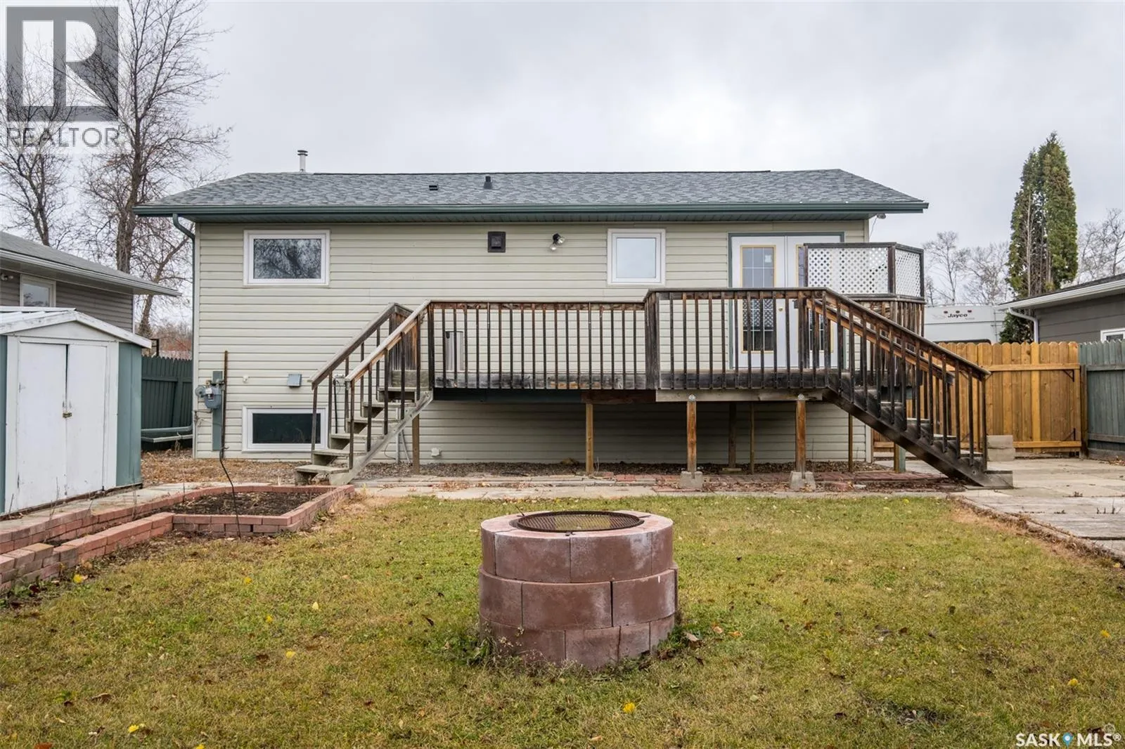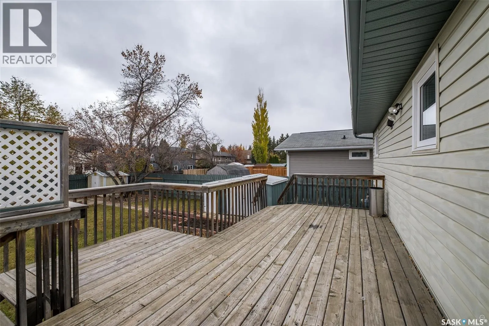 Remarkable 2 + 1 bedroom bi-level located in the desirable Carlton Park neighbourhood, directly across from the Carlton Park Community Club and within walking distance to nearby parks and schools. The main floor features a bright and spacious living room with a large picture window and a cozy wood burning fireplace that creates an inviting space to relax and unwind. The kitchen offers plenty of cabinetry and counter space, South facing windows that fill the area with sunlight and direct access to the large deck which is an ideal setting for entertaining family and friends. There are also 2 comfortable bedrooms and a 4 piece bathroom that complete this level. The fully finished basement offers a sprawling family room, a 3rd bedroom, a 3 piece bathroom with a stand up shower and a combined laundry/utility room. Additional notable features include central air conditioning, a newer fridge, washer and dryer and shingles replaced just 1 year ago. The property is fully fenced and beautifully maintained with mature trees, a fire pit area, a garden space for the green thumb, underground sprinklers and a new coverall garage shelter. Immediate possession is available. Act now and make this your next home! (id:27476)