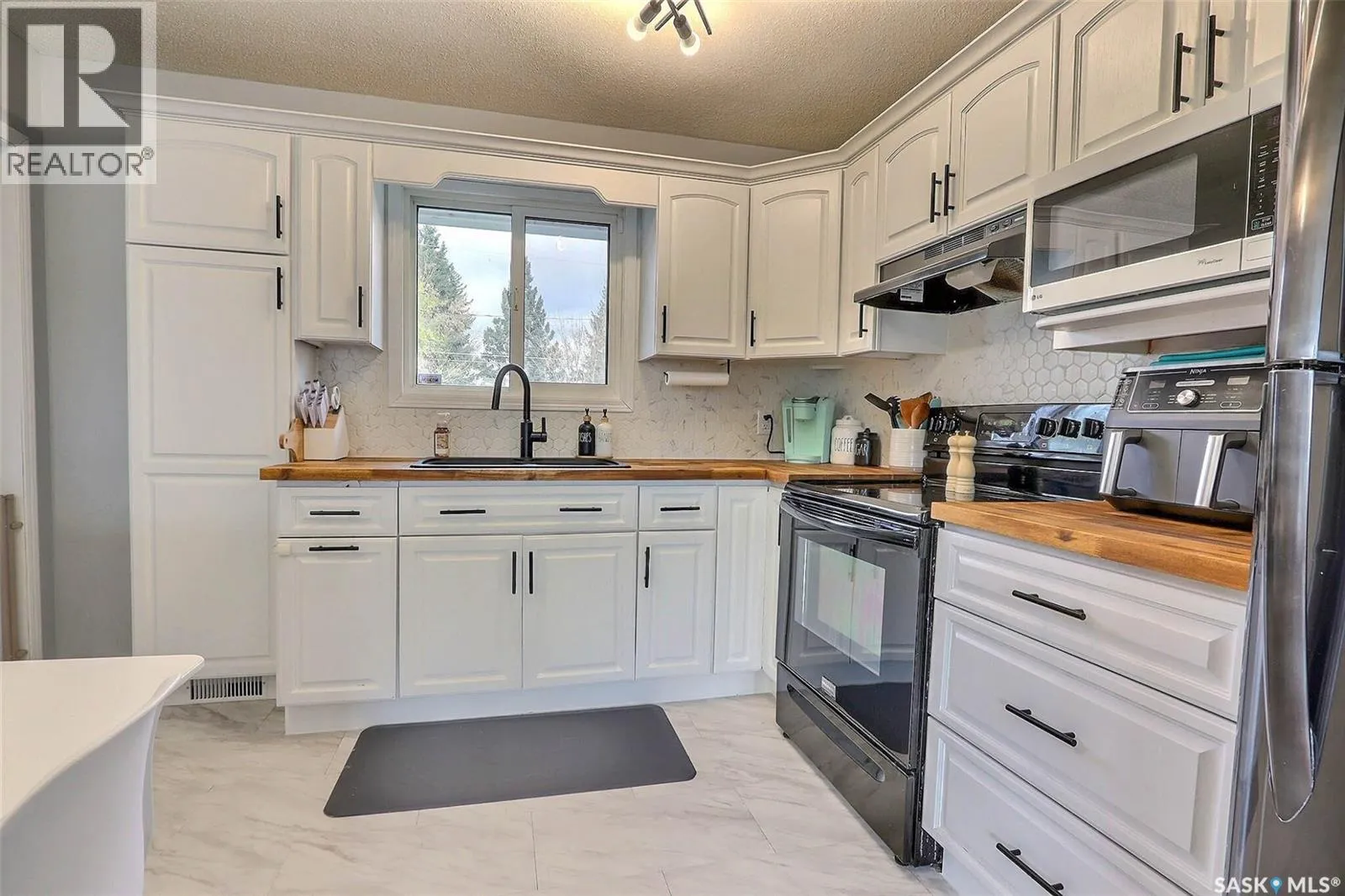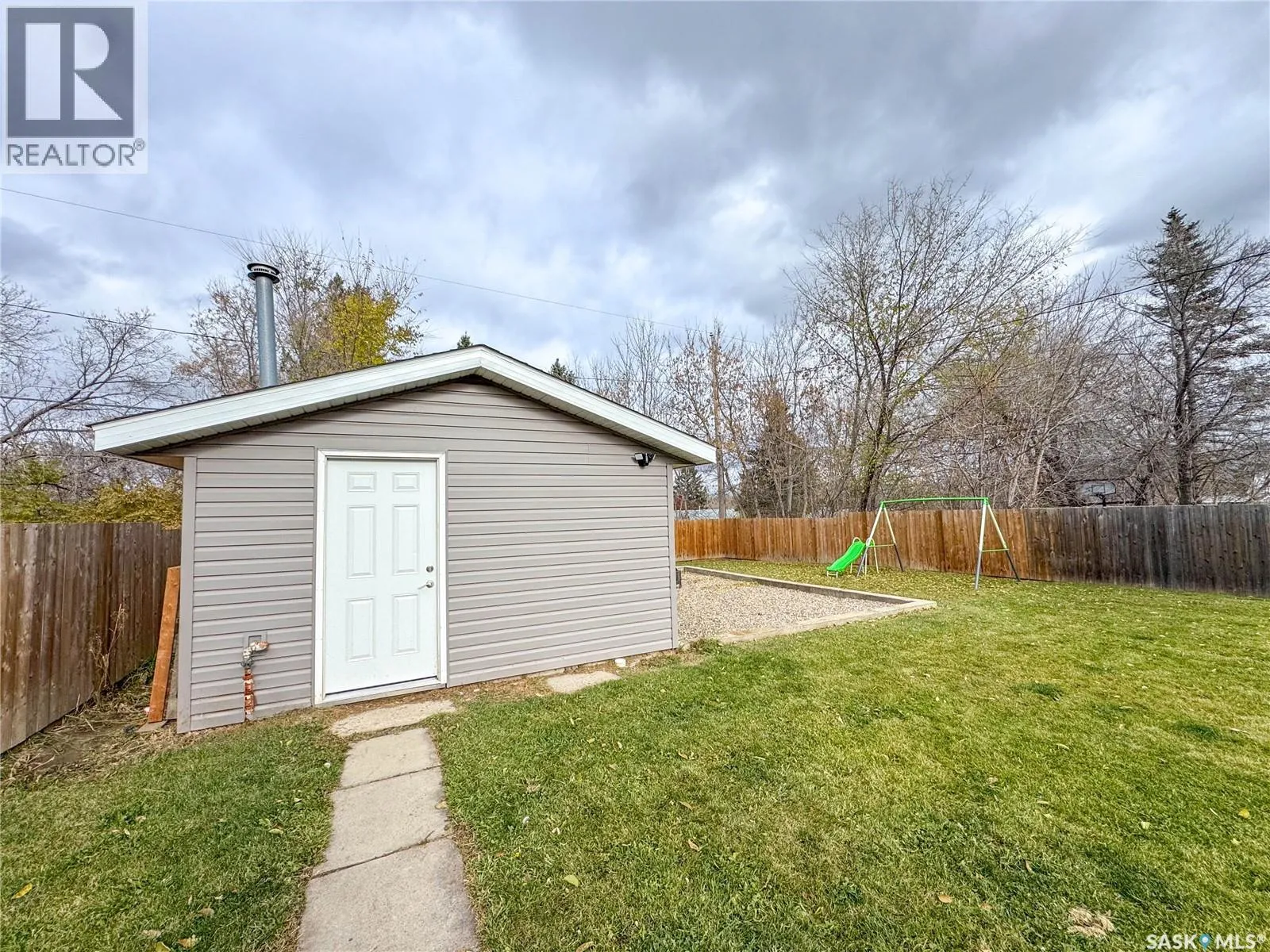 This charming 864 sq/ft bungalow is move-in ready and full of updates! The bright living room features gleaming hardwood floors and a large south-facing window that fills the space with natural light. The cozy, remodelled eat-in kitchen offers white cabinets, butcher block countertops, black hardware, and matching appliances for a clean, modern look. The main floor includes three comfortable bedrooms and a full bathroom. Downstairs, the fully finished basement boasts durable vinyl plank flooring, a spacious rec room, a fourth bedroom, a den, and a utility roomâperfect for extra living space or a home office. Outside, enjoy the large 49 x 130 lot with a new fence, patio, and fire pit area. The 14 x 24 detached garage is heated, and the property offers both a front driveway and alley access. Turn-key and ready to enjoy, with upgraded windows, interior doors, flooring, and newer shinglesâthis home truly has it all! (id:27476)