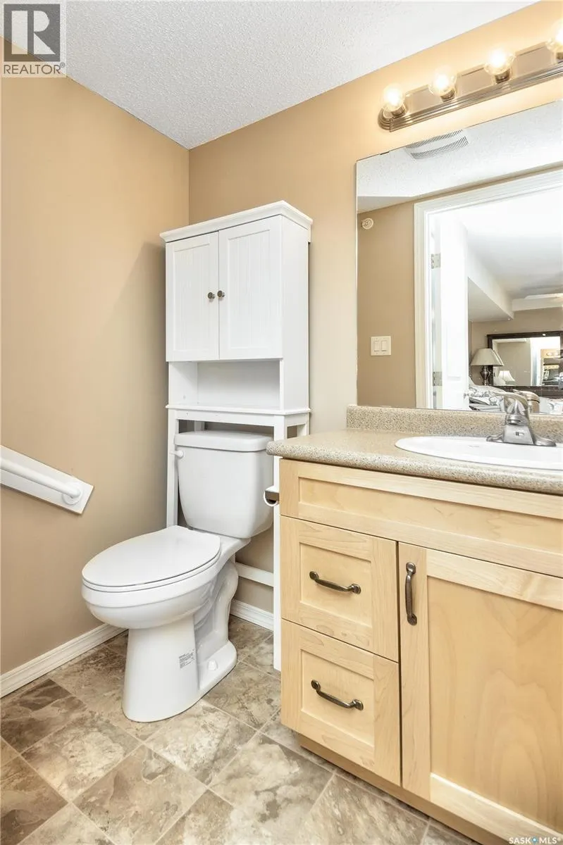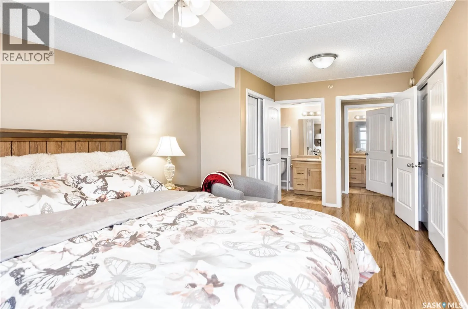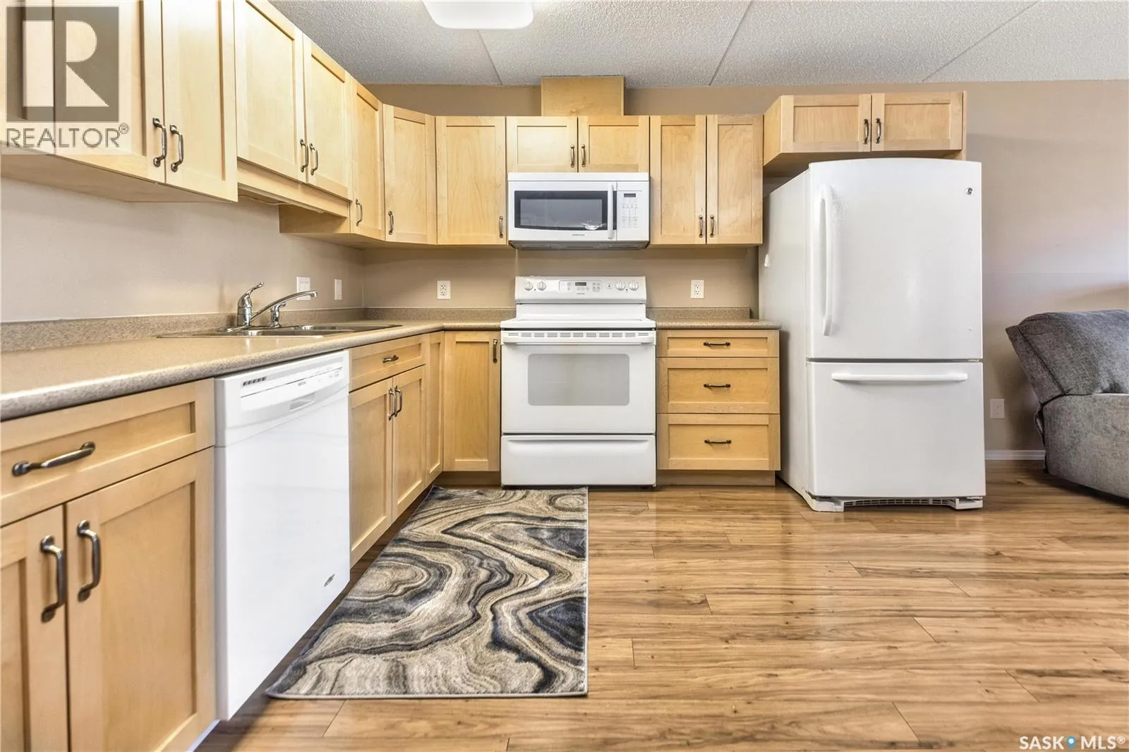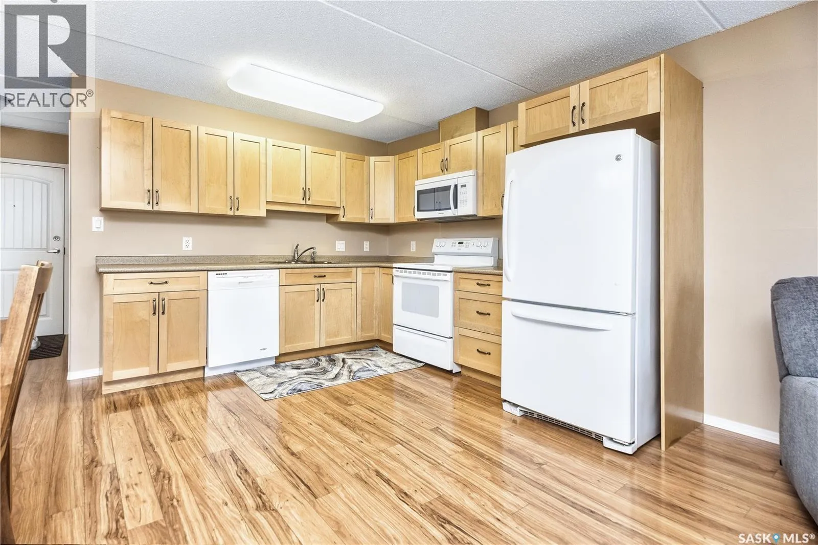 Offering outstanding value, this spacious 980 sq. ft. condo combines affordability with the benefits of newer construction. Built in 2012 with solid concrete design for durability and soundproofing, the 2 bedroom home features a bright and open layout with a maple kitchen, ample cabinetry, and newer appliances. The west-facing balcony provides great natural light and includes two convenient outdoor storage units. The primary bedroom has its own private two-piece bathroom, while the main living area includes a full four-piece bathroom with a tub. Window coverings are included, and the entire unit is in like-new condition. Heated in-building parking and elevator access make daily living comfortable year-round. Residents can also enjoy shared spaces including an exercise room, a workshop, and a social room for gatherings. Ideally located close to shopping, walking trails, recreation, and everyday conveniences, this condo is the perfect option for those seeking a spacious home at an attractive price point. Move in and enjoy a modern, low-maintenance lifestyle without compromise. (id:27476)