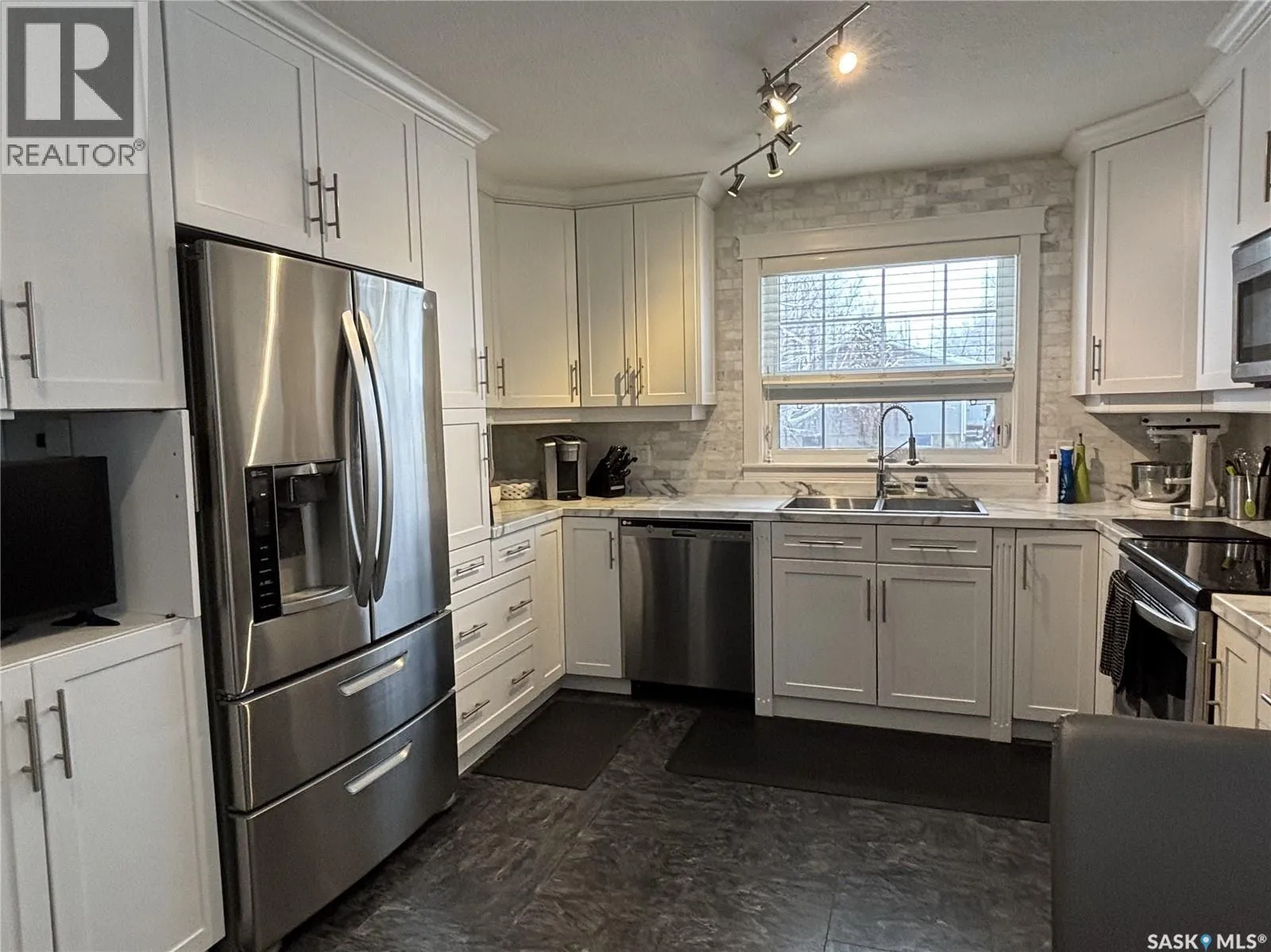 The perfect gift for your family! This 4 level split with a park like backyard, and modern updates is ready for you! On the main level you will find the updated kitchen, with endless amounts of storage, and an outside venting range fan/microwave. The main level also hosts a generous living room perfect for getting together to watch your favorite shows. Heading to the upper level, you will find three bedrooms, one being the master with two large closets. As well, this level has an updated bathroom with a spacious walk in shower. Heading down to the first lower level you will find a huge 4th bedroom, an updated 4 piece bathroom, as well as a rec room that could quickly be converted into a 5th bedroom if desired. The basement level has another large rec room, perfect for the kids to play in. This room also has two large hidden storage bins that slide under the level above to hide all the toys or whatever else you may want to store. This level is completed with a large laundry and utility room. Outside there is a paving stone driveway with plenty of off street parking space, a deck built with composite lumber and metal railing, and the fully fenced back yard with beautiful lawn and plenty of space for outdoor fun and entertaining. If you are looking for a move in ready home with plenty of room for everyone don't wait, call your agent today to see this one! (id:27476)