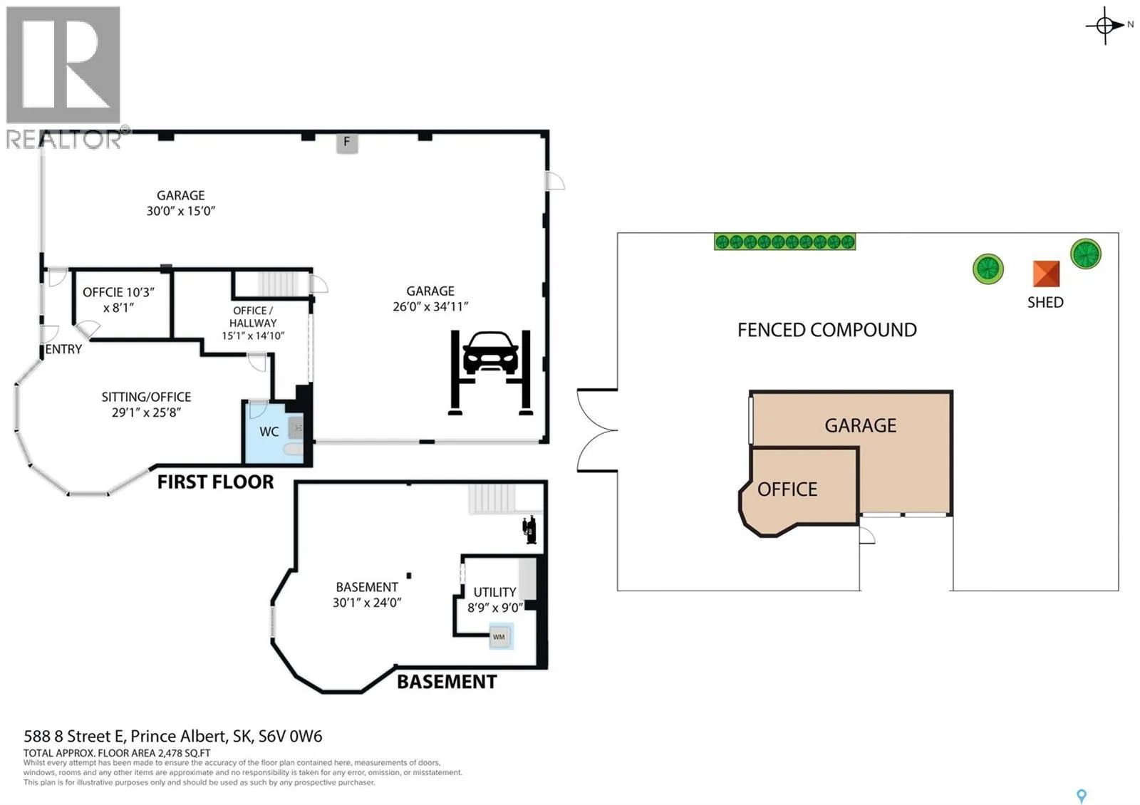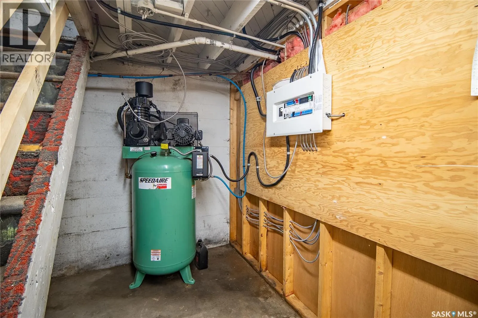 An exceptional location to launch or expand your business. Situated along busy 6th Ave, this versatile commercial building offers outstanding visibility and endless potential â ideal for automotive services, detailing, small-scale auto sales, or a variety of entrepreneurial ventures. The property features a fully fenced compound with ample parking for multiple vehicles, making it perfect for operations that require outdoor storage or customer parking. Step inside and youâll appreciate the bright bay windows that enhance the reception area, creating a welcoming first impression. The interior includes a office space, a bathroom, and a well-equipped shop complete with a car lift, compressor, and indoor parking for up to three vehicles with overhead heating and 3 -10x10 doors, providing great versatility. . A basement level provides valuable additional storage space. A strong location, flexible layout, and ready-to-use shop amenities make this a standout opportunity for the right business. (Equipment not guaranteed to be in working order) (id:27476)