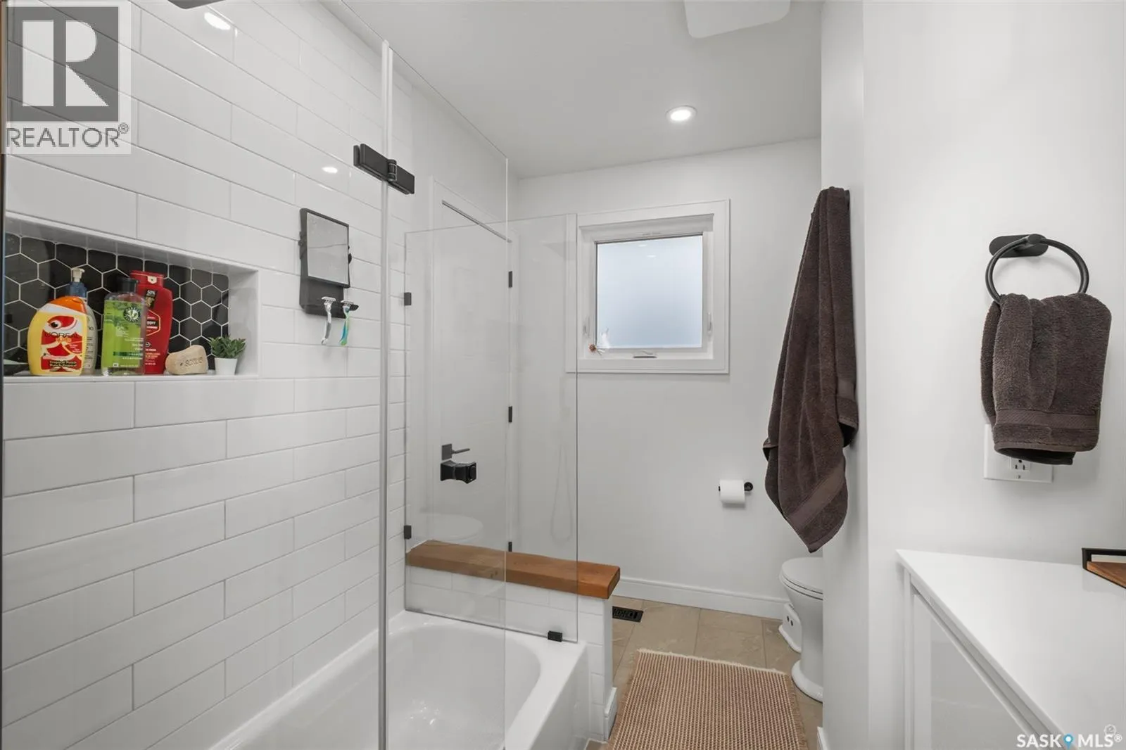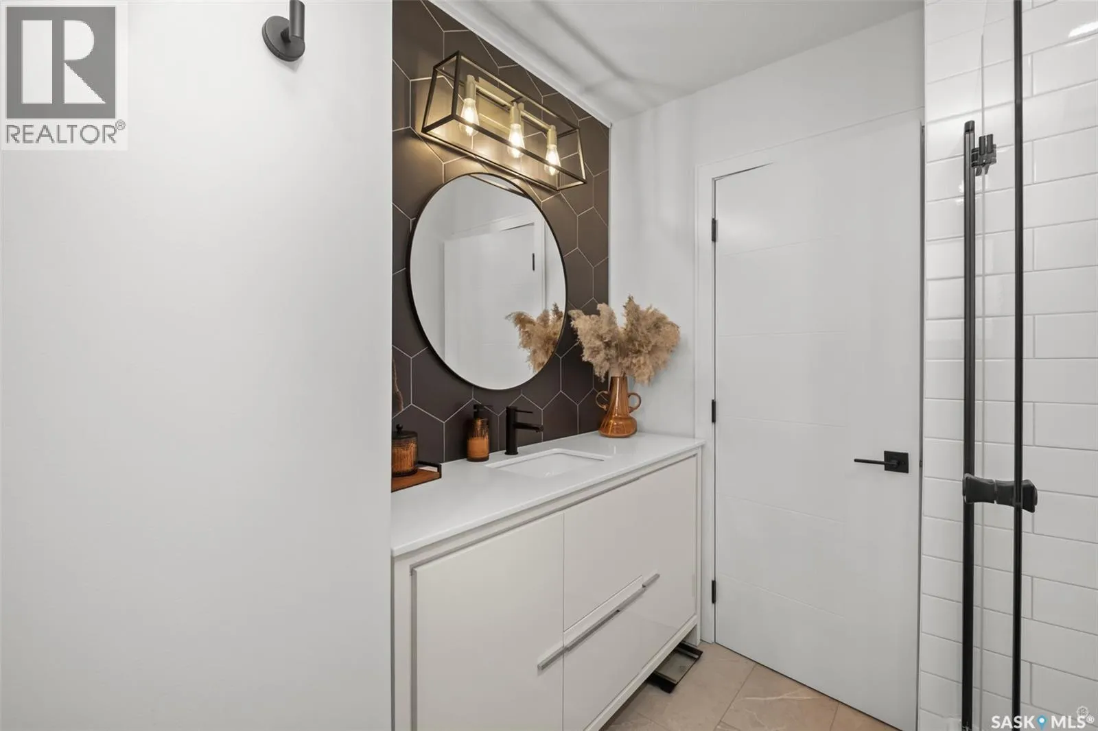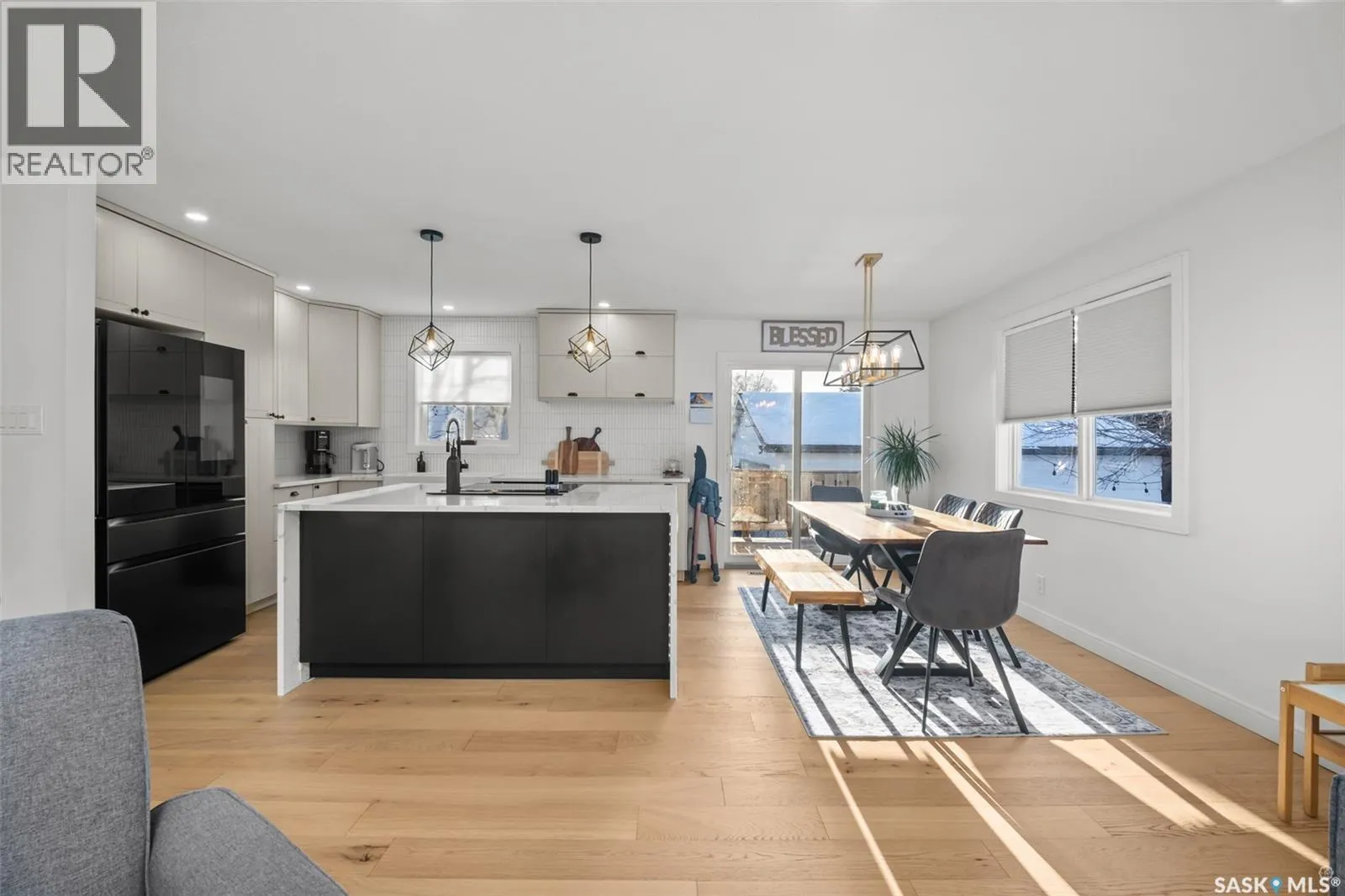 Beautifully reimagined Carlton Park show stopper! Needing absolutely nothing this 3 bedroom, 2 bathroom bi-level is situated on one of Prince Albert's most iconic streets. The main level details a gorgeous custom kitchen that features quartz counter tops with waterfall edges on the island, stylish appliances, combined dining area, clear slight lines into the back yard and supplies a ton of warming natural light. The lower level comes complete with a large recreational/family room, wood burning fireplace, spacious laundry room, upgraded 3pc bathroom and direct entry into the 20 x 24 attached garage. The exterior of the property is finished off with a massive 0.17 acre fully fenced yard, RV parking to the rear of the home, underground sprinklers and a ground level patio. (id:27476)