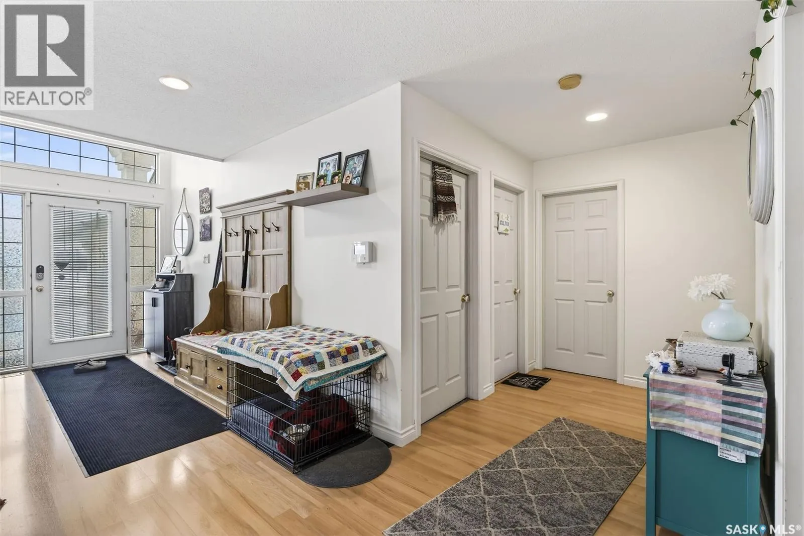 Exceptional family home in Crescent Acres offering 4 bedrooms, 3 bathrooms and a fantastic location. With charming curb appeal highlighted by a grand arched front entry and mature landscaping, this home makes a lasting first impression from the moment you arrive. Step inside to a spacious foyer that opens into a bright south facing living room filled with natural light and anchored by a cozy gas fireplace. The eat-in kitchen is both stylish and functional and features a large island with a butcher block counter top, crisp white cabinetry, white tile backsplash, stainless steel appliances and patio doors leading directly to the back deck. A generous primary bedroom complete with a walk-in closet and 3 piece ensuite, two additional spacious bedrooms and convenient main floor laundry complete the main floor. The fully developed lower level expands your living space with a large family room, an additional bedroom, a versatile den ideal for a home office or gym, a 3 piece bathroom and a utility room with a substantial crawl space providing excellent storage options. Additional features include central air conditioning, central vacuum and a double attached insulated garage. The fully fenced and beautifully landscaped yard features mature trees and shrubs, along with a large deck finished with metal railings and tempered glass. Ideally located across the street from the Rotary Trail, Crescent Acres Park, St. Francis School and Vickers School, this exceptional home offers space, functionality and a prime location. Schedule a viewing today! As per the Sellerâs direction, all offers will be presented on 02/14/2026 3:00AM. (id:27476)