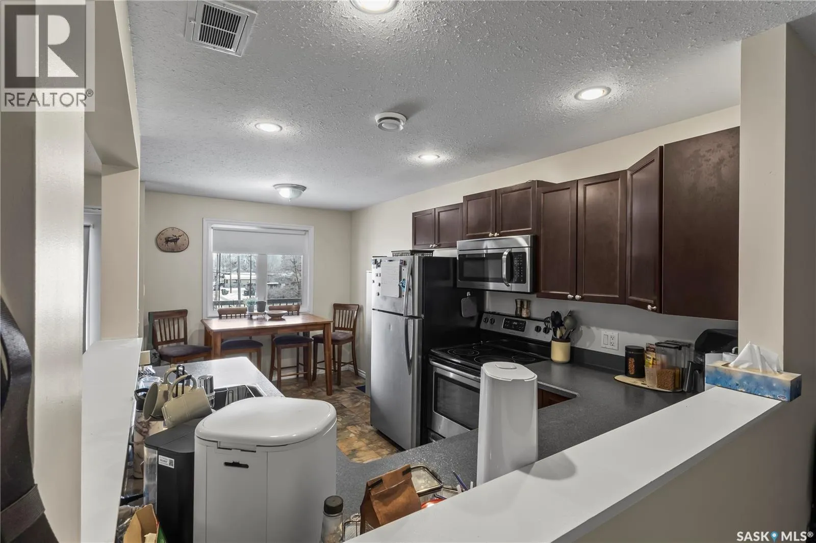 Carlton Terrace one of Prince Albert's premier affordable condos. All major renovations were completed 2010 including cabinetry, flooring, bathroom, PVC windows, electrical fixtures, DDF hot water heater, furnace and concrete siding. All this within walking distance to Carlton High School and bus stop directly in front on 28th Street East. Covered deck includes dura deck flooring and aluminum railing. Available for fall possession. (id:27476)