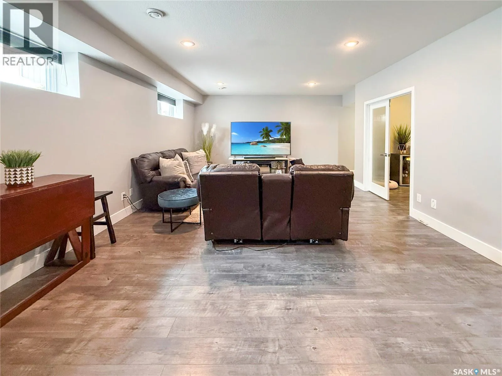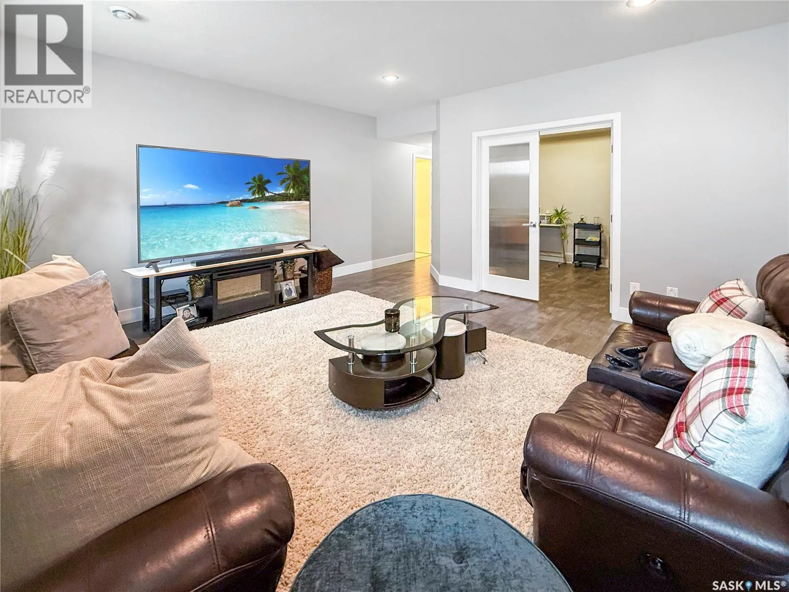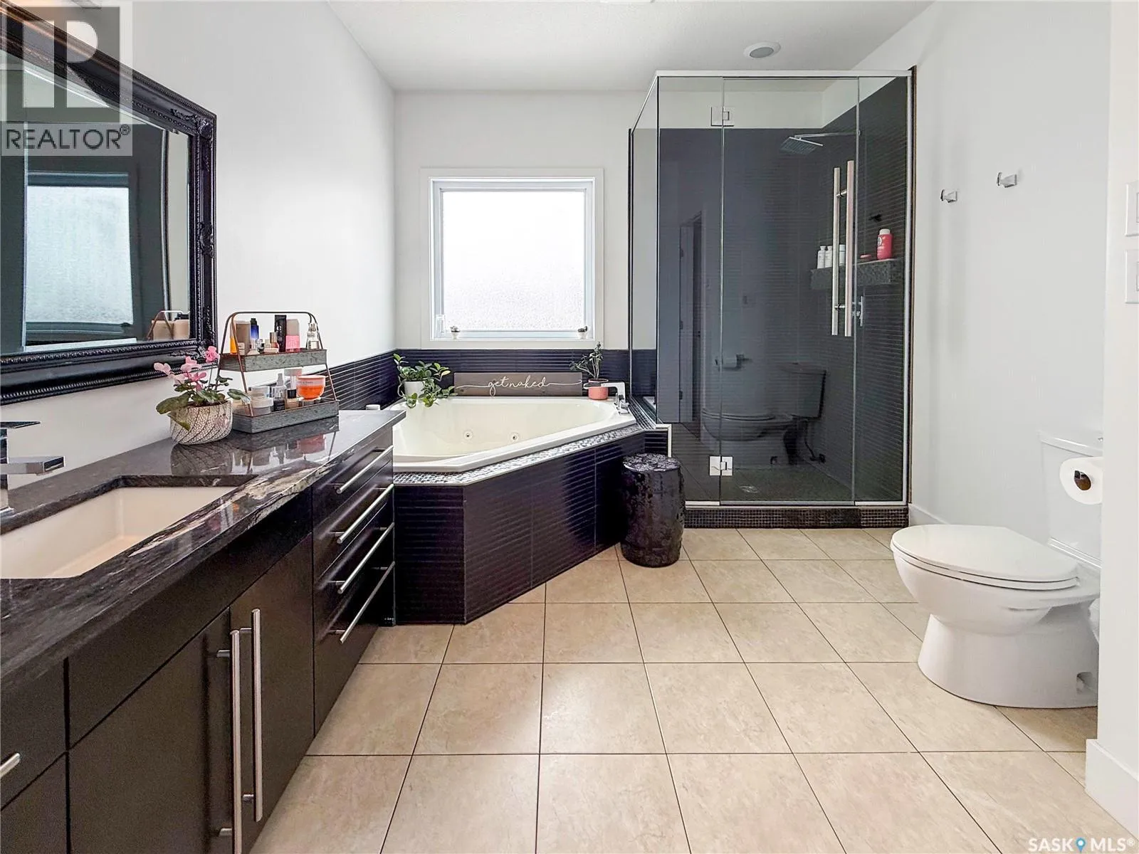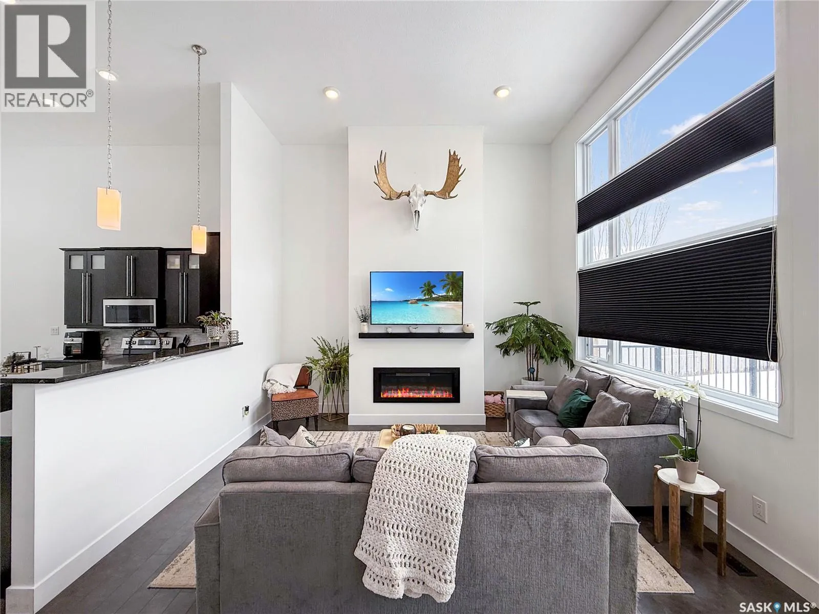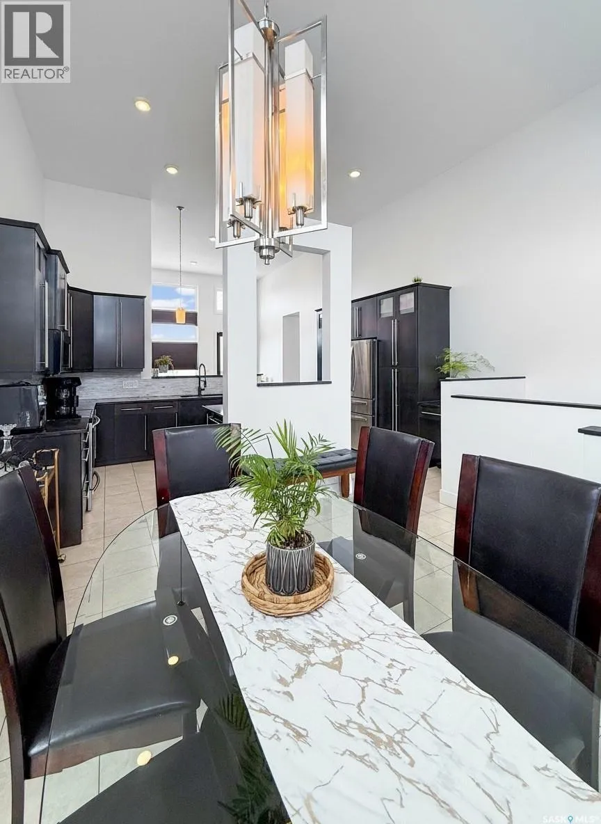 One-of-a-kind Custom home is Crescent Acres. 1608sqft, 5 bedrooms, 3 bathrooms, with heated attached garage. Step into a grand foyer with soaring ceilings. The main living area features 13.5â ceilings and oversized windows providing abundance of natural light with a sense of balance and warmth throughout the house. Open-concept layout connects the living, dining, and kitchen, ideal for everyday living and entertaining. The kitchen stands out with custom black maple cabinetry, granite countertops, backsplash, large island, and built-in desk. The spacious primary suite offers a walk-in closet and a well-appointed ensuite featuring a soaker tub and glass shower. Two additional bedrooms, a full 4-piece bathroom, and a convenient main floor laundry room complete the main level. The fully developed basement features a spacious family room, a private office with glass French doors, two additional generously sized bedrooms, a full 4-piece bathroom, a bar area, and ample storage. All with 9â ceilings, creating an open and inviting feel throughout. 24â x 26â heated garage with 14â ceilings, floor drain, built-in shelving, and workspace. Wonderful outdoor space featuring a back patio with natural gas hookup, a rock garden, huge back yard and a dedicated hot tub area. Situated on a quiet cul-de-sac, this property features a large pie-shaped lot backing onto the Rotary Trail. Steps to schools and a community rink. Luxury, function, and location, this could be #yourhappyplace. (id:27476)