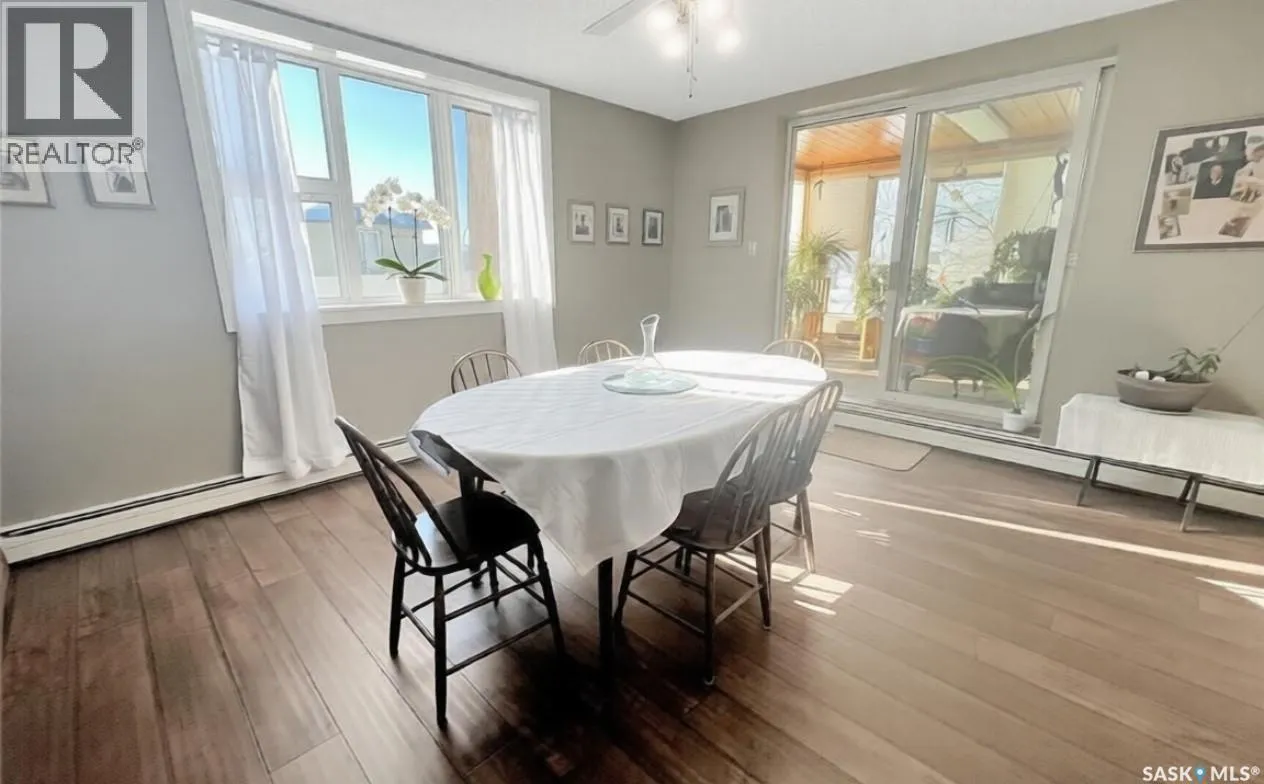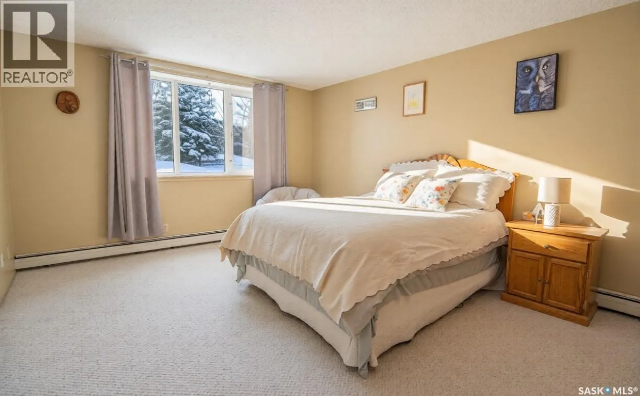 Welcome to one of Prince Albert's most distinctive condominium offeringsâa sprawling 1,900 sq ft residence that seamlessly blends space, light, and comfort. Upon entering, you're greeted by an expansive lounge and dining area bathed in natural light, complemented by an enclosed four-season sunroom perfect for year-round enjoyment. The well-appointed kitchen boasts ample storage, catering to both everyday living and entertaining needs. This condo features three generously sized bedrooms and two 4-piece bathrooms. The second bedroom is a versatile space, equipped with a wet bar and its own private balcony, ideal for guests or a personal retreat. The oversized primary bedroom is a sanctuary unto itself, offering a spacious walk-in closet and a private four-piece ensuite bathroom. Residents will appreciate the convenience of in-unit laundry facilities and abundant storage solutions throughout the home. Two dedicated parking bays provide secure and easy access. Beyond the individual unit, the condominium complex offers exceptional amenities, including a four-season indoor pool, hot tub, and saunaâensuring endless enjoyment for both adults and children, regardless of the season. Experience the perfect blend of comfort, convenience, and unique charm in this remarkable Prince Albert condo. (id:27476)