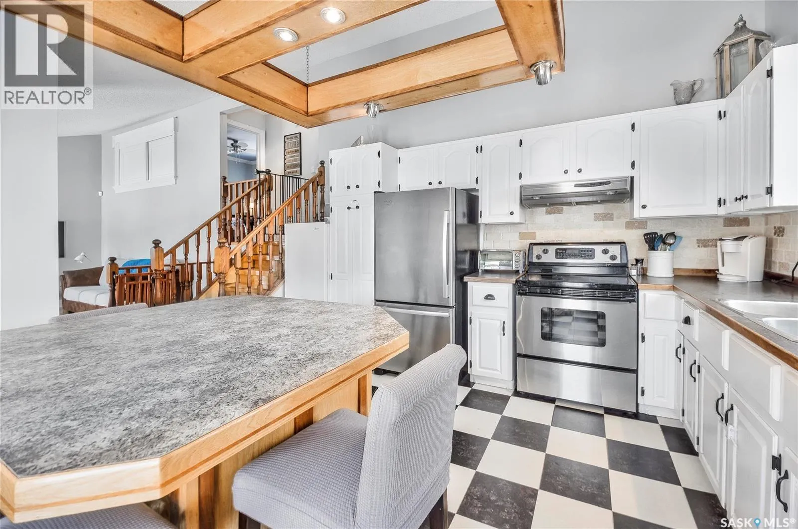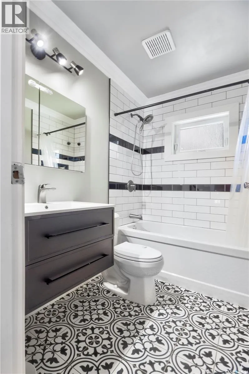 Situated on a quiet River Heights cul-de-sac next to the Rotary Trail, this immaculate four-level split offers three bedrooms, two custom bathrooms, and extensive updates inside and out. The home features mostly newer PVC windows, fresh interior and exterior paint, hardwood flooring, new shingles, eaves, soffits, and fascia on both the house and the detached double garage, along with central air conditioning for year-round comfort. The fully finished basement includes a walk-out and in-floor heat in the lower bathroom, while the fully fenced yard provides great outdoor space. Completing the property is the insulated, heated double garageâan ideal touch for Prairie winters. (id:27476)