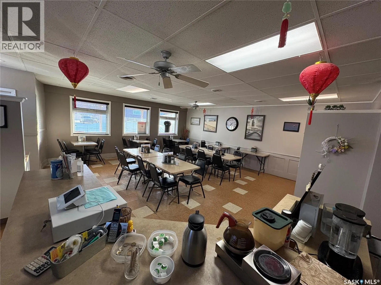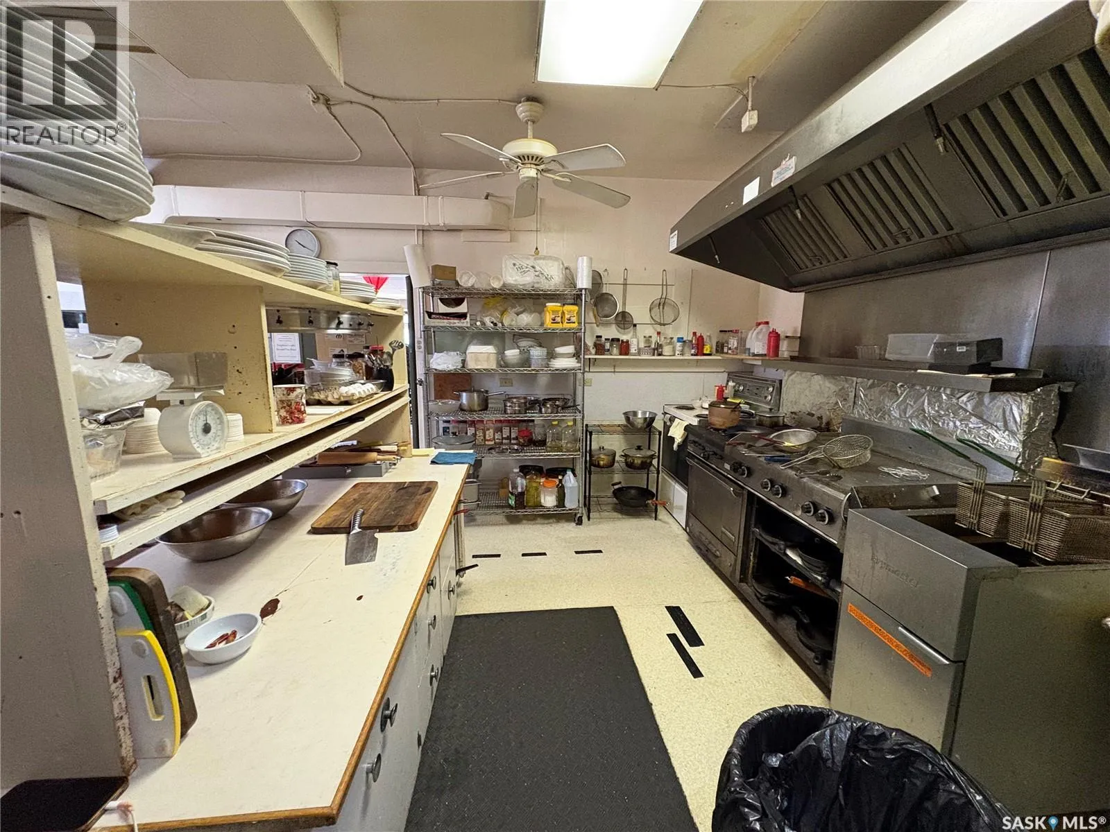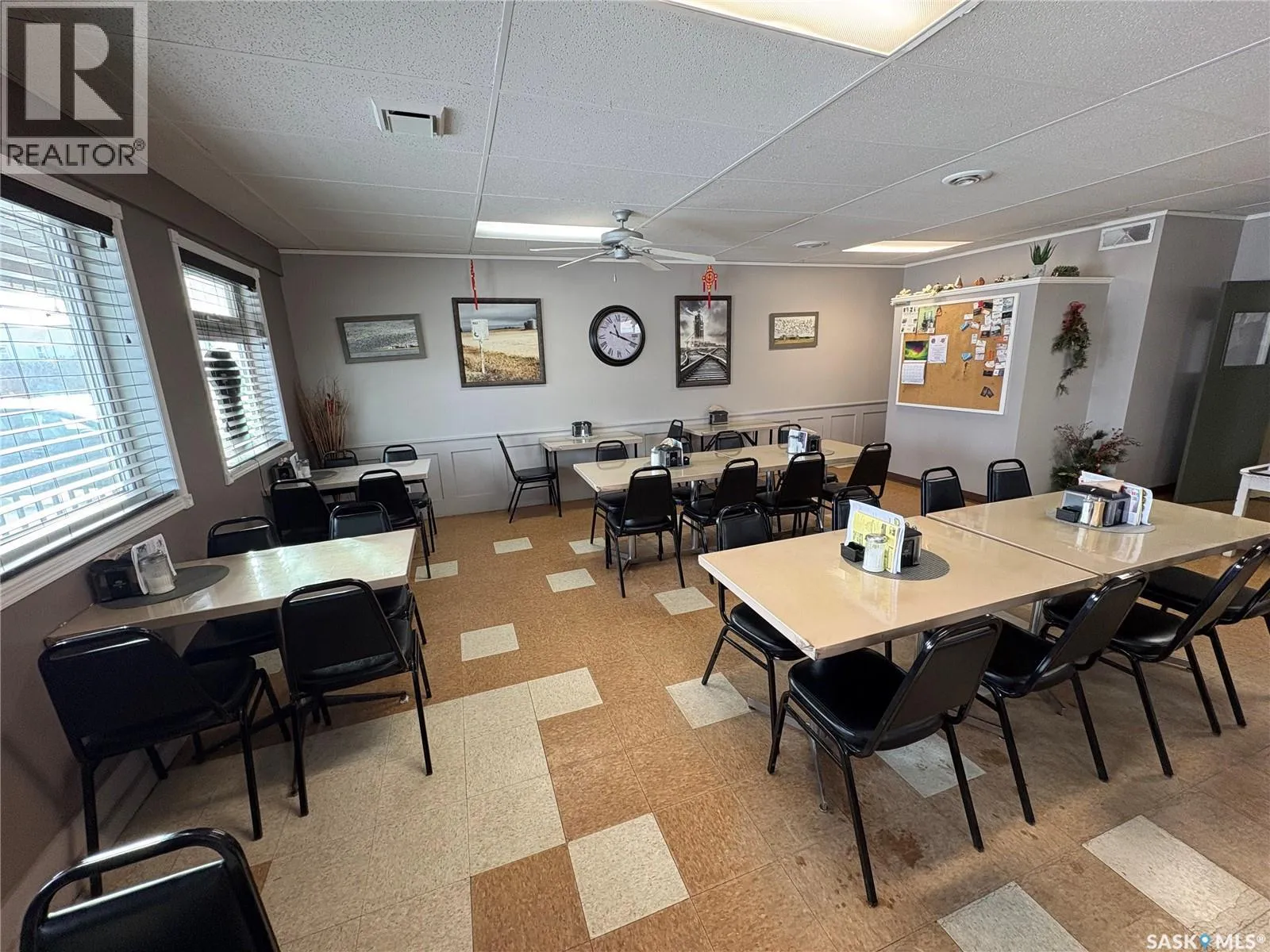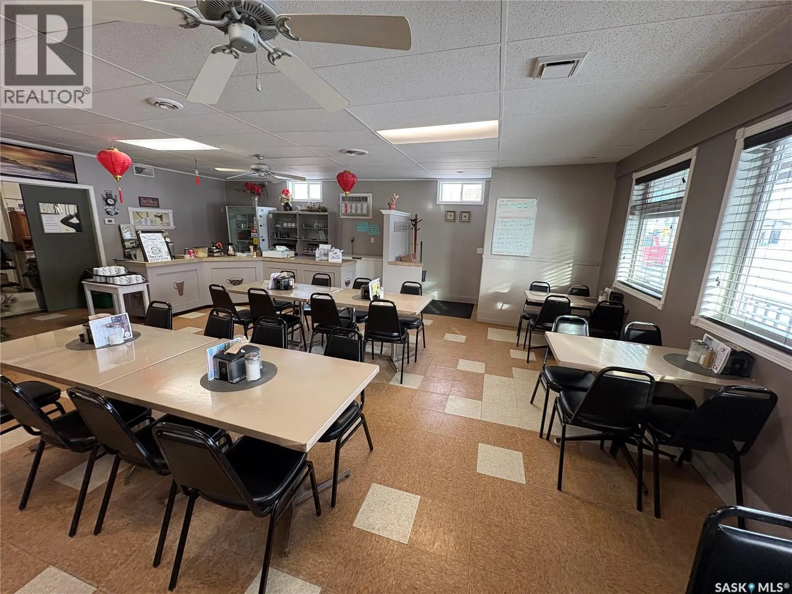 Fang Diner This cute little diner in Quill Lake Saskatchewan offers a 30-40 seat diner/restaurant with a two bedroom residence in the back. On main street Quill Lake take advantage of the small town community support along with the busy hunting, fishing, hockey, school sport and snowmobiling seasons in the area. The area is known for patrons traveling a distance to come to restaurants like this with the current owner having "regular" customers from as far as an hour away. The building property restaurant furnishings and equipment are included in the listing price with inventory to be calculated at time of purchase if buyer wants the supplies. Quill Lake, located in Saskatchewan, is a village known for its rich history and natural beauty. Incorporated in 1906, it has become a central service, commerce, and gathering spot for the surrounding agricultural community. The village is situated along the migratory paths of many waterfowl species, earning it the title of the "Goose Capital of Saskatchewan." The Quill Lakes wetland complex is a designated Western Hemisphere Shorebird Reserve Network site, where many migrating shorebirds stop during long migrations. The village's population has seen a slight decrease from 387 in 2016 to 377 in 2021, but it remains a vibrant community with a strong sense of history and community spirit. (id:27476)