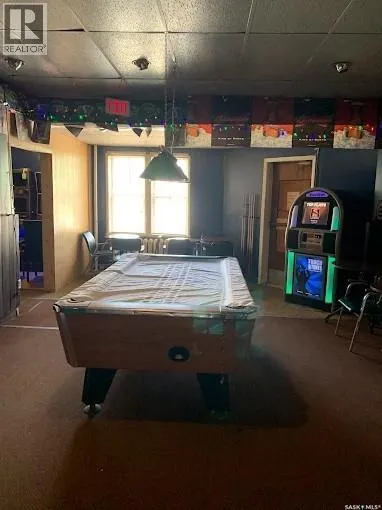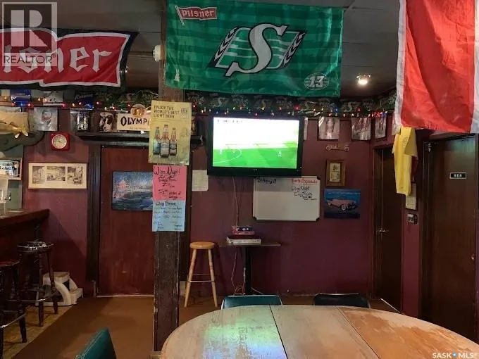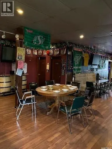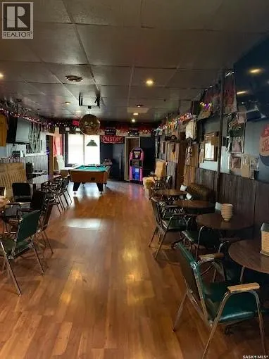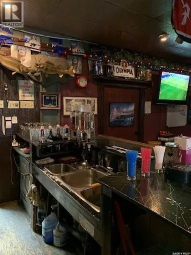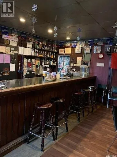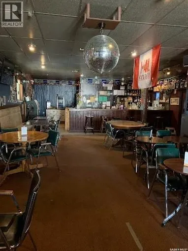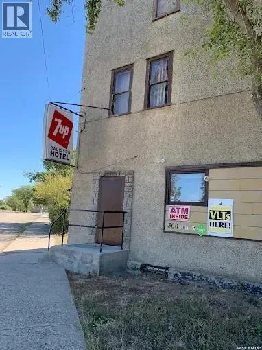 An excellent investment opportunity! This property is ideally located in the vibrant town of Radisson, just off the Yellowhead Highway and just a 50-minute drive from Saskatoon. This is a mature, turnkey business with a stable customer base and multiple revenue streams, including a bar, catering, seven rentable rooms, three VLTs, a pool table, a jukebox, an ATM, and a valuable off-sale liquor license. This three-story building boasts 4,800 square feet of space, providing ample space for your business. Owners will also enjoy a spacious 890-square-foot living area with a full kitchen, bathroom, and two bedrooms. Recent upgrades include a newer walk-in cooler compressor and water heater. There's also a private, fenced-in patio. (id:27476)