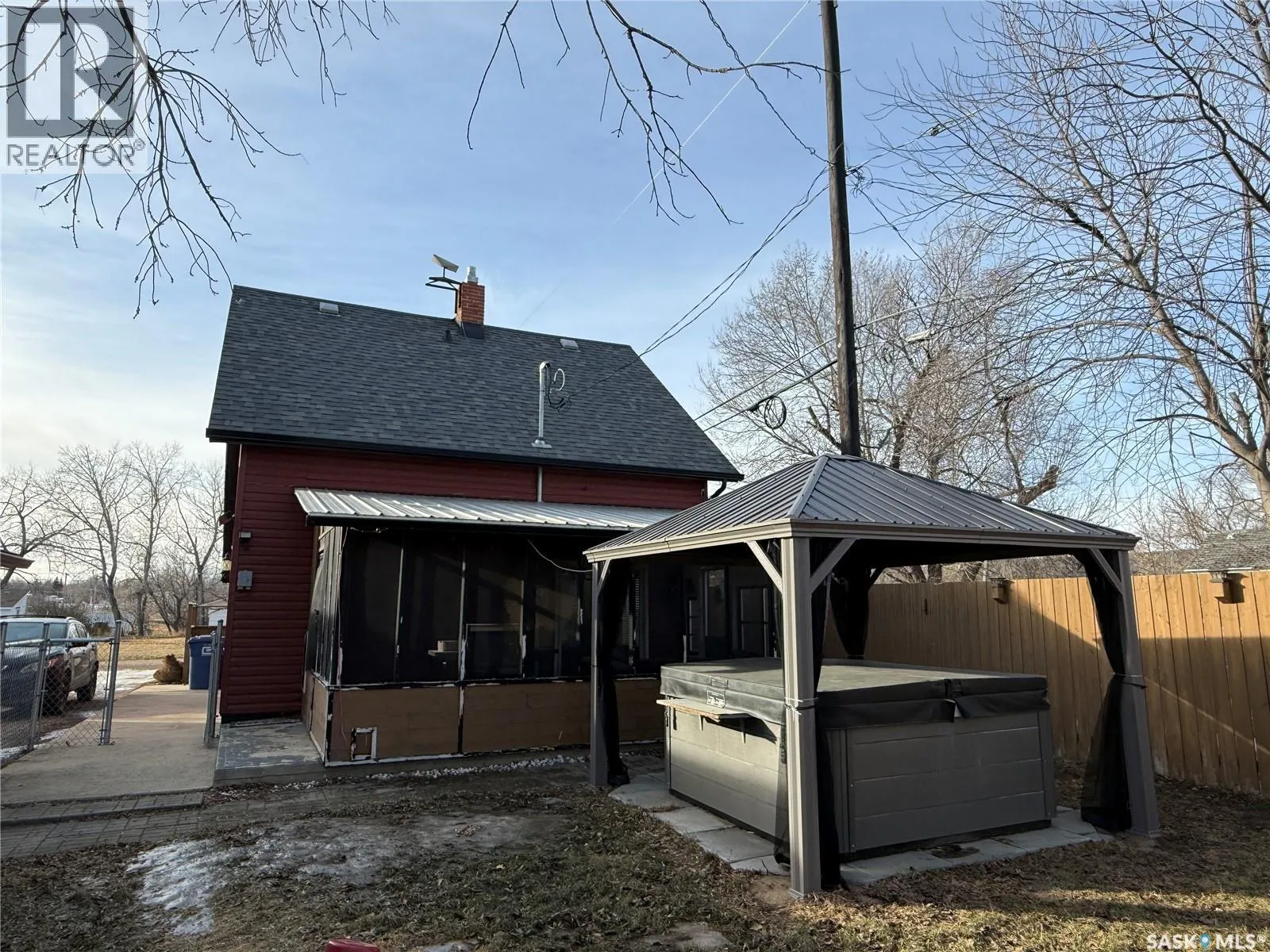 Well-kept and welcoming Radville home with great curb appeal and extensive updates in a quiet area of town. This 1 1/2 storey property features 3 bedrooms on the second floor, a renovated main floor bathroom, and a functional layout with a front entrance mudroom. Enjoy the fully developed, fenced yard with a screened patio, plus a hot tub with gazebo included. The detached garage is great for storage and projects, heated with an included pellet stove. Bonus newly built 15x30â multi-purpose building has endless potential and was originally planned to be a simulator room. Key updates: furnace (2013), fence (2015), most windows & patio door (2016/17), shingles (2018), siding/soffit/fascia & front door (2019), bathroom (2019), cork foundation coating (2019), electrical panel (2020), RO system (2020), central air (2021), water softener and on demand water heater (2024). Move-in ready with comfort and value throughout. (id:27476)