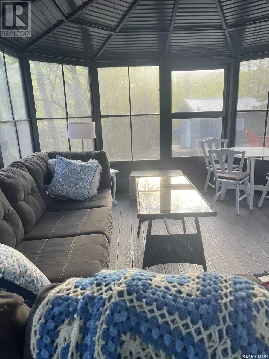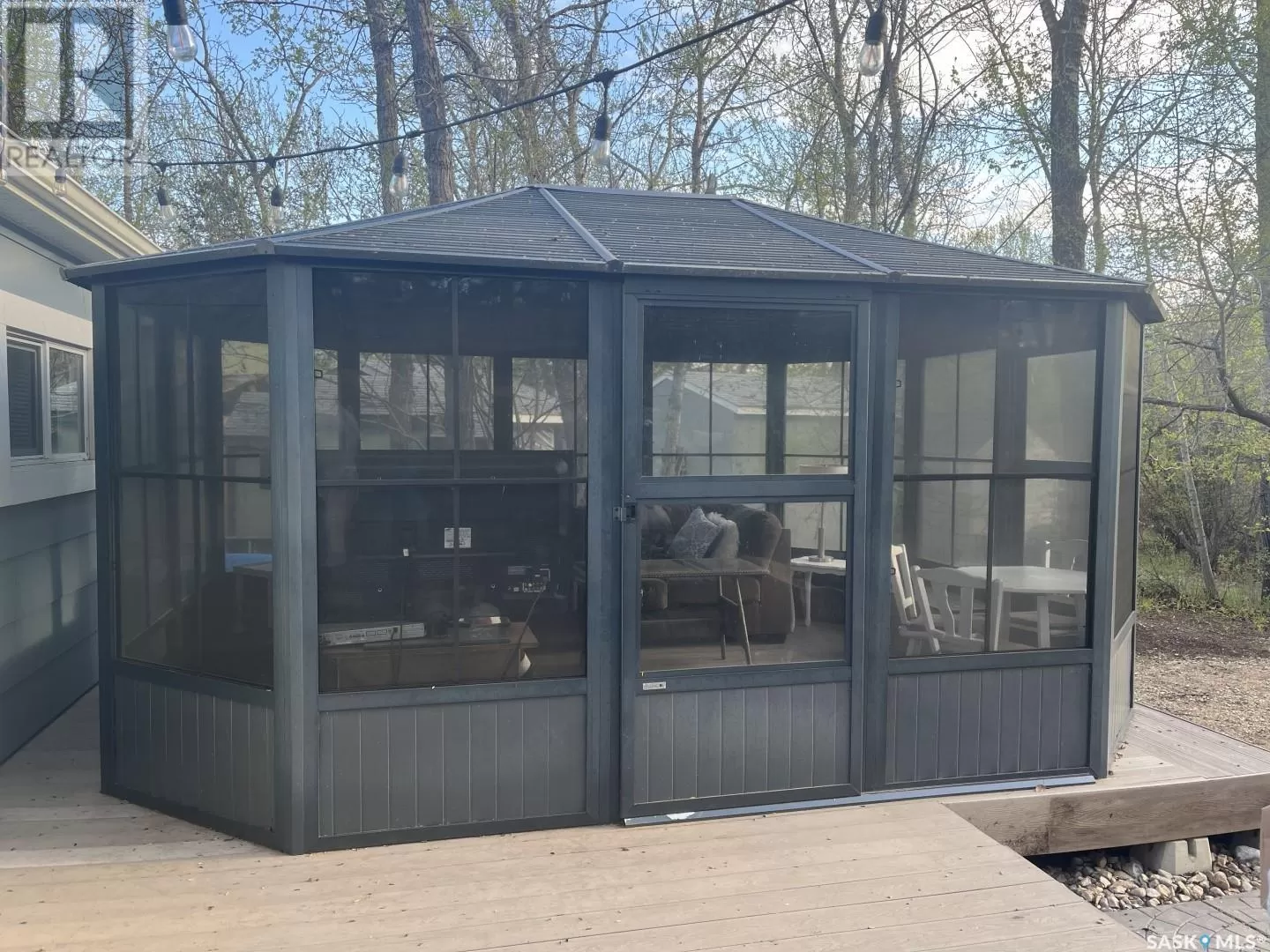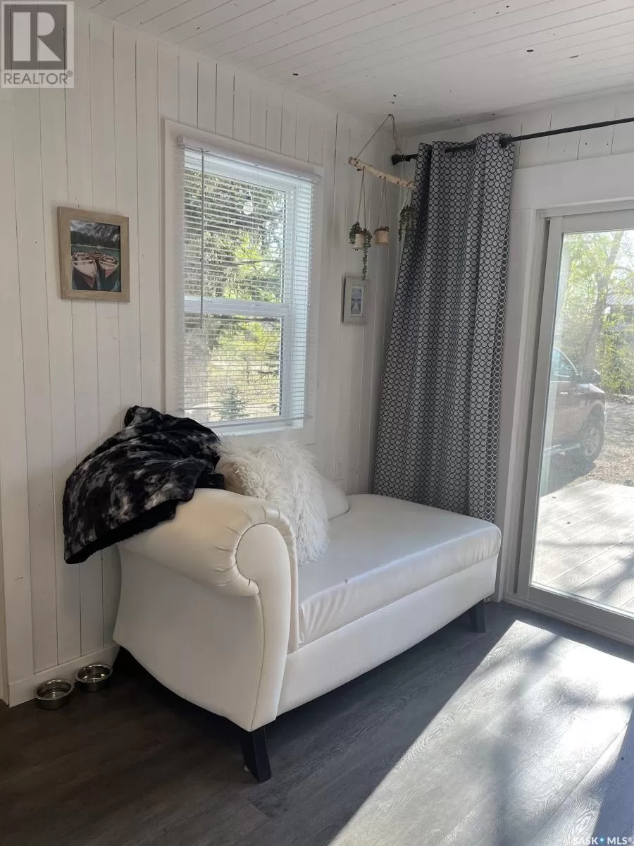 Cabin for sale at Redberry Lake regional park! Turn key. Completely redone cabin top to bottom within the last five years. 2 bedrooms, one bathroom, granite countertops in the kitchen, and vinyl plank flooring. Comes with a 230 square ft. bunk house, 12âx 15â solarium and a shed. Cabin comes complete with most furnishings inside and out, ready to move in. 750 sq. ft. living space, sleeps 8, but room for more. Enjoy the beautiful large composite decks front and back, wrapping around on one side! Low maintenance yard, one row back from lakefront with direct lake access. Only 1 hour from Saskatoon, makes a convenient getaway for family. Lake has a great community along with with public beach and play ground, golf course, disc golf, trails, berry picking, water sports and much more. (id:27476)