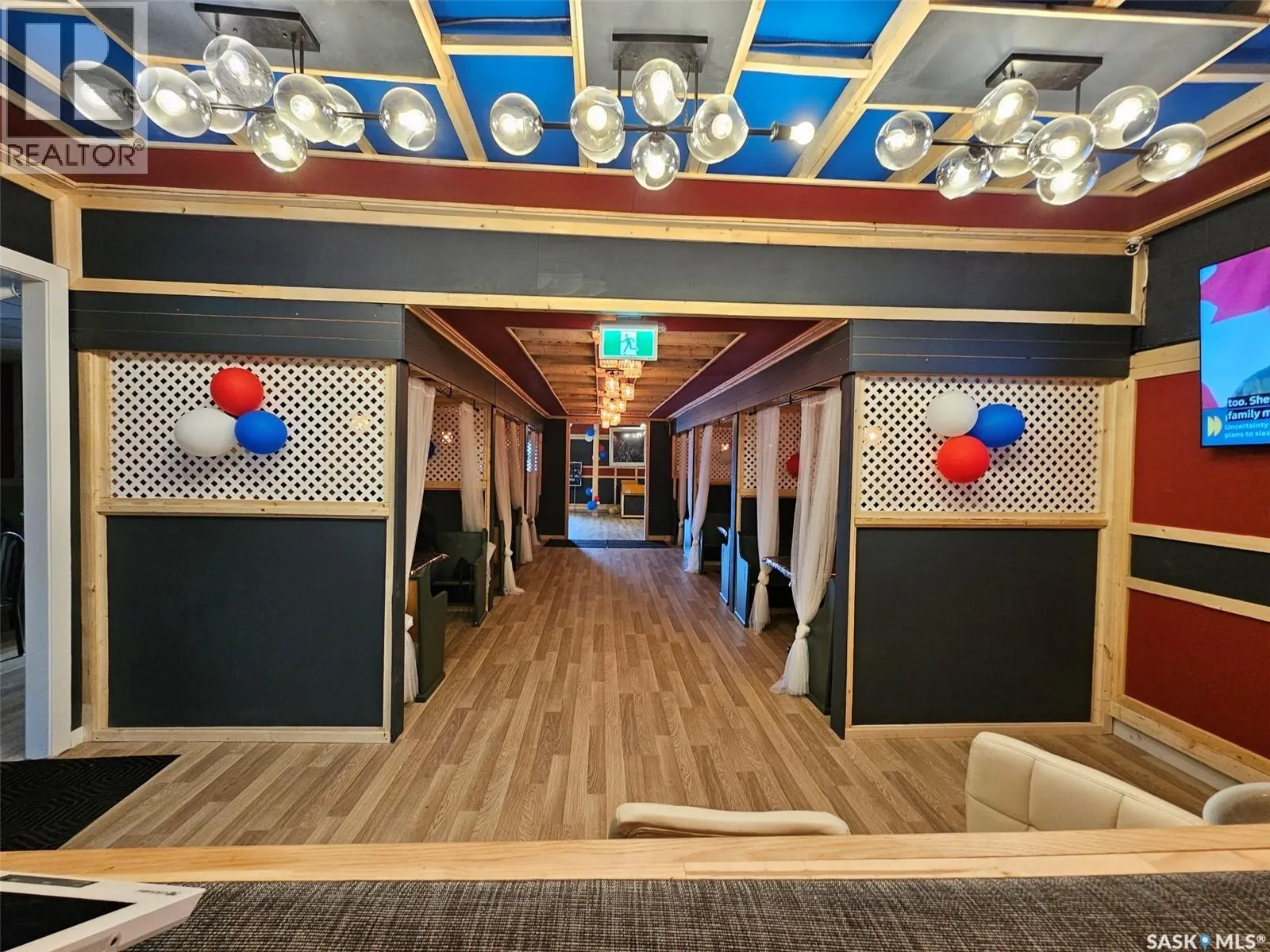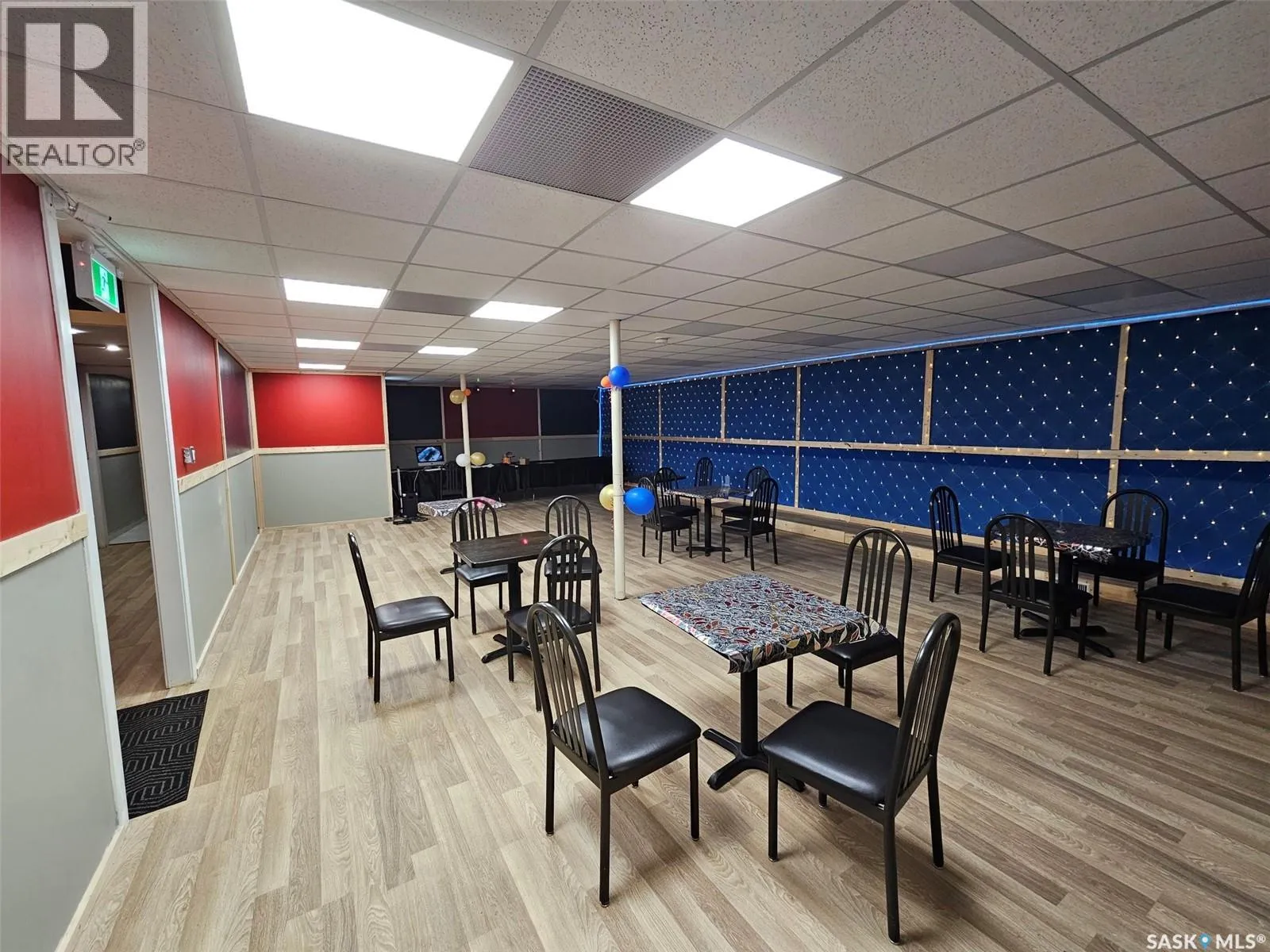 7 Broadway Street, Redvers Licensed Restaurant and Banquet hall with commercial kitchen ready for new owner to step in and make it there own. 4500 sq ft of interior space accommodates a spacious kitchen, private booths and a banquet room plus a couple offices, 3 washrooms. Licensed for total of 75. Banquet space has separate entrance. Kitchen includes SS range hood with fire suppression system, Deep Fryer, Pandoor Clay oven, Pizza Oven, Large refrigerated prep table, 3 compartment dish washing station with grease trap., under counter fridge for bar and display beer cooler, Coffee machine with grinder. Includes 75" Samsung smart TV in Bar area and 42" LG flat screen TV in Reception area. Architect floor plan included in pictures. GREAT OPPORTUNITY TO WALK IN, TWEAK THE BRAND AND COMMENCE OPERATION. Call Realtors to schedule a private viewing. (id:27476)