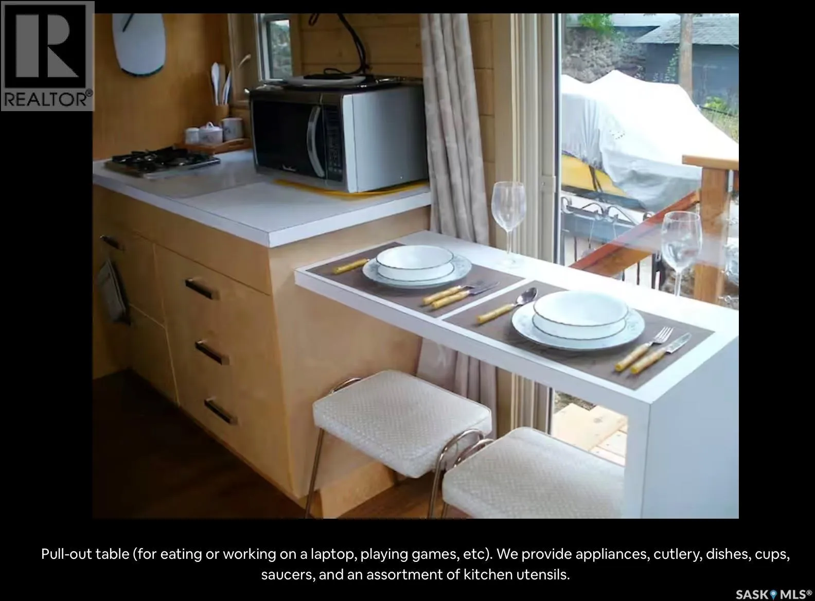 Unique opportunity for a four season lake property located on a quiet crescent with natural gas, plus a custom built "Tiny Home" for additional rental income. Main home includes functional kitchen. Living-room with patio doors to deck. Three bedrooms, updated four piece bath and sun room which is currently setup as a dining area. Seller states exterior was redone with 1.5" styrofoam insulation. Natural gas furnace and fireplace, plus supplemental electric heaters. Natural gas fireplace. Newer garage. Crawlspace has been spray foamed. DragonFly Tiny House This accessory building was completely permitted by the Township and placed on the property in mid-June 2018. It is completely self-contained with propane heater, a propane cook top, 3-way fridge (runs on propane, 12V or 110V power), kitchen sink, hot water heater (electric 3 gallon), and three-piece bathroom with full shower. It has a pull out couch and a loft area (sleeps 3 adults very comfortably). The DragonFly Tiny House was designed by renowned architect, John Robinson of Robinson Residential in Regina. It is built with SIP panels, that provide an R40 insulation rating. It is 159 sq. ft. with ample windows and skylights and main deck area. The tiny house was outfitted with Nest Temperature Sensors, motion sensor light, key lock box and all smart house light switches (that can be remote controlled). (id:27476)