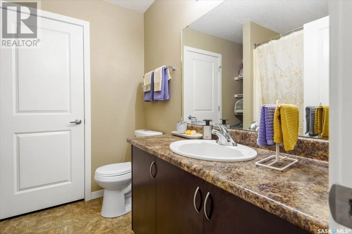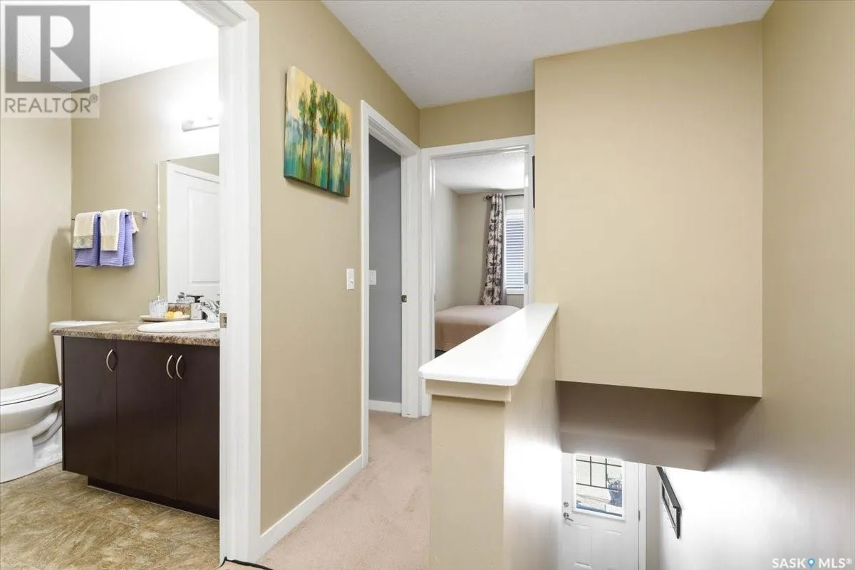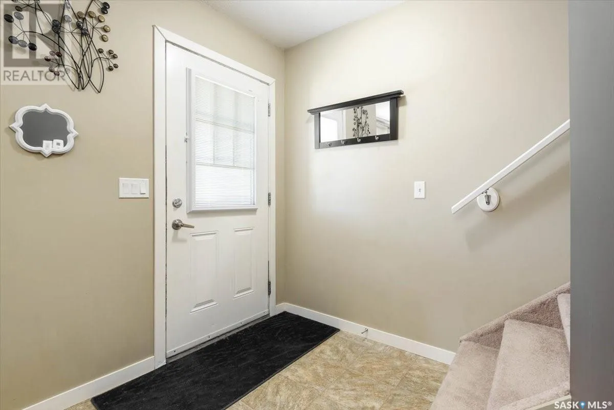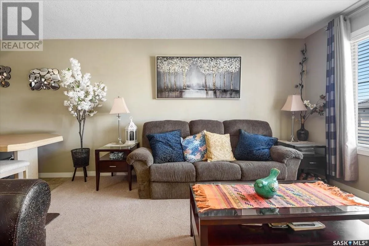 Discover easy living in this charming two-storey condo located in Harbour Landing! This fantastic location puts you within easy reach of everything you need and love from diverse restaurants and a variety of shops to grocery stores and gas station, as well as a K-8 English and French Immersion School. Enjoy leisurely strolls through nearby parks and along scenic paths. This lovely unit features 2 bedrooms, including a master suite with a walk-in closet, a 4-piece bathroom, and convenient in-suite laundry. Experience comfort with a tankless hot water heater and cozy in-floor heat throughout. Lovingly maintained by the original owner. Relax and unwind on your west-facing covered patio, two electrified parking stalls add to the convenience, this condo is ready for you to move in and enjoy. (id:27476)