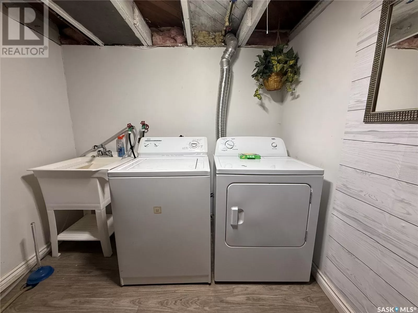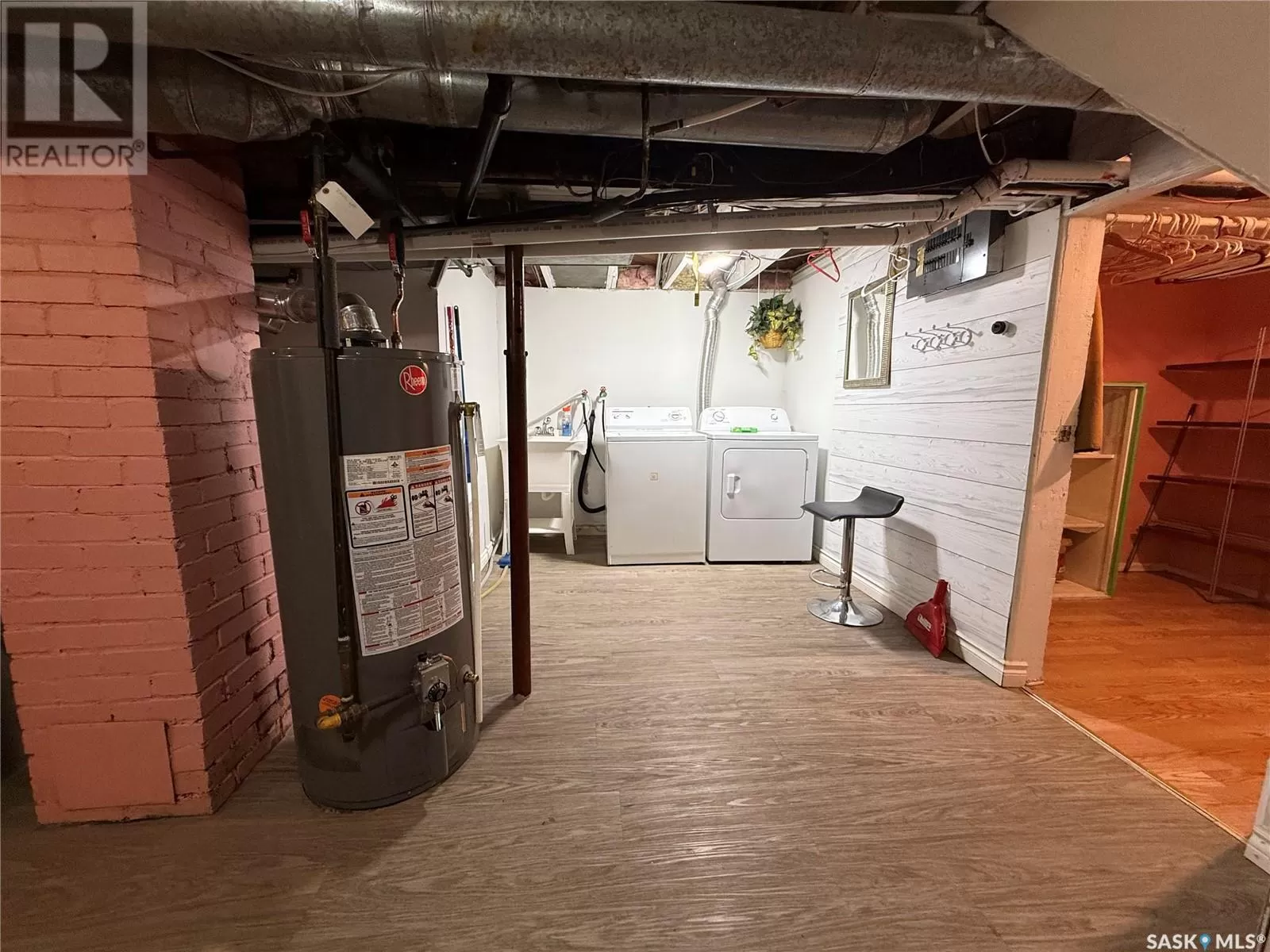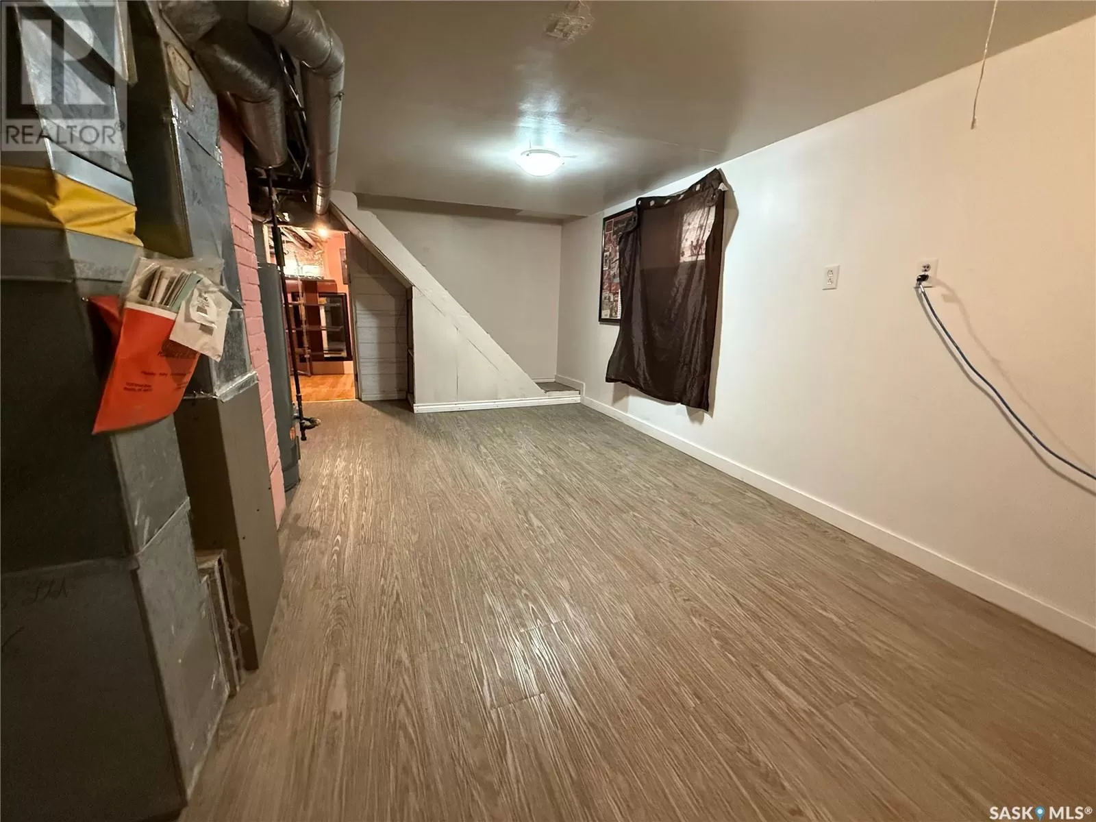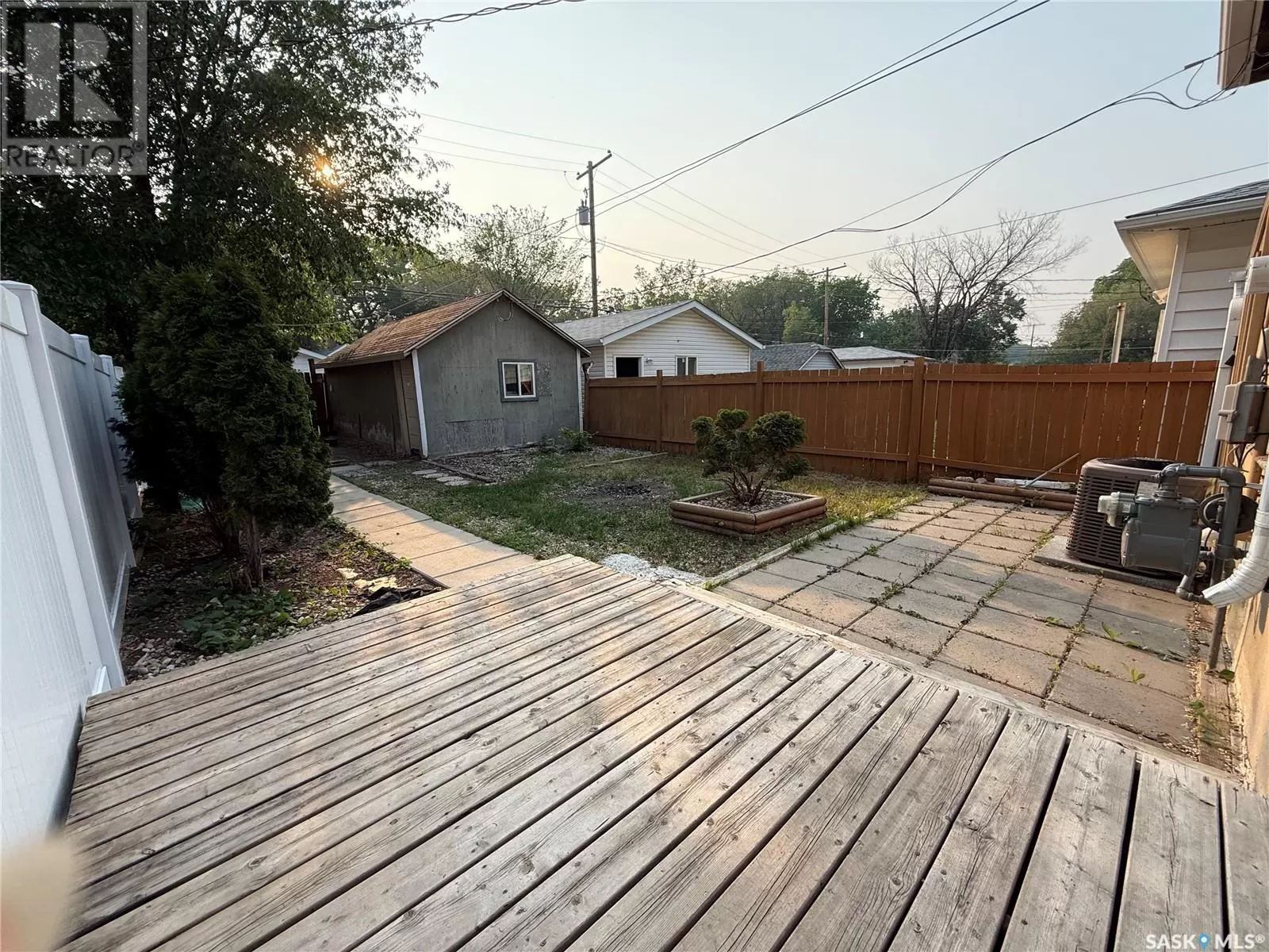 Located just a five-minute walk to downtown and only 100 meters from Victory Avenue, this meticulously maintained 2-bedroom, 2-bathroom home offers excellent value. It features a single garage with lane access and has seen numerous updates over the past 15 years, including blown-in insulation, newer drywall in most rooms, PVC windows on the main and basement levels, remodeled bathrooms on both floors, a newly renovated front and back porch, a newly added basement bonus room, brand new basement washroom, updated flooring throughout, fresh interior and exterior paint, new storm windows, a beautifully landscaped backyard, a spacious patio, a newer high-efficiency furnace, water heater, shingles, and an attached storage shed. Perfect for a young family or professional seeking a yard and convenient city-center access. (id:27476)