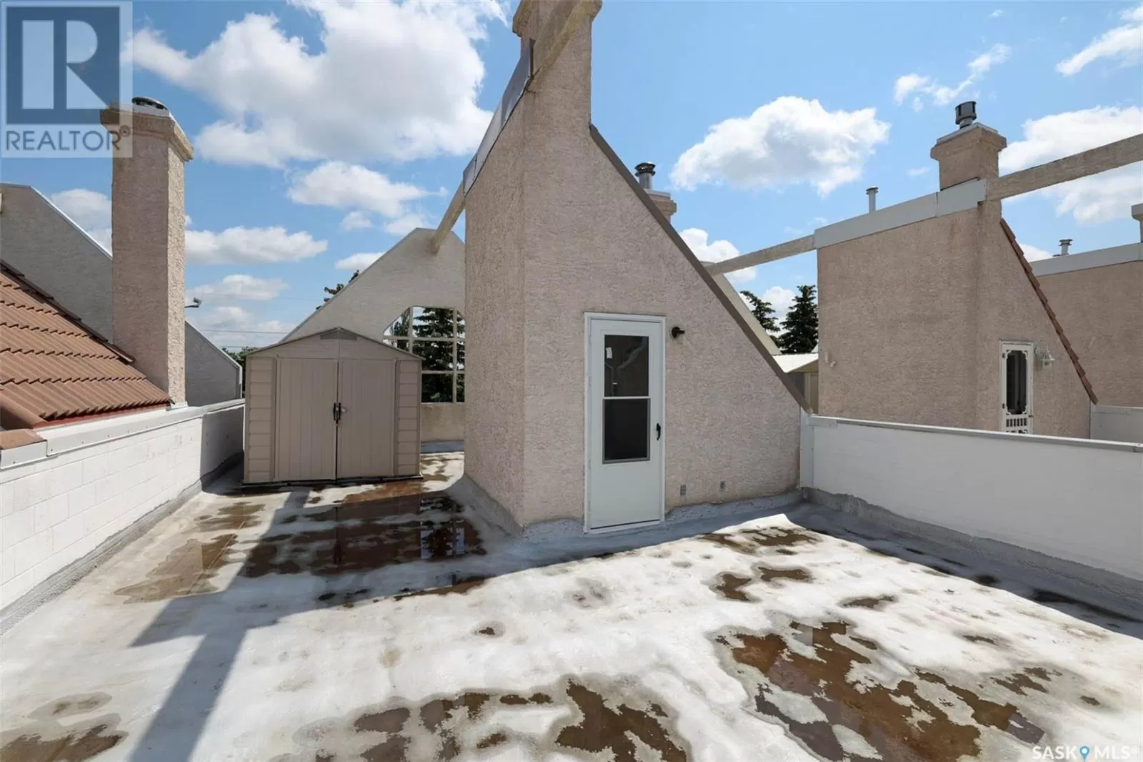 Quick Possession, Pet Friendly! Meticulously maintained 1870 sq ft condo with many recent upgrades. Gorgeous, lush landscaping greets you with raised new front decks and outdoor seating area overlooking greenspace. Like new condition the main level is perfect for entertaining, featuring an open-concept living and dining area that flows seamlessly into the functional kitchen with upgraded appliances, garburator, plenty of cabinet and counter space and built in desk. Newer luxury vinyl plank runs throughout the main living areas. Upgraded modern gas fireplace feature wall and large newer picture window flood the space with natural light and offers a view onto adjacent open area. Handy 2pc bath and very large rear multi-purpose room perfect for home office, gym area or mudroom has rear yard access to enclosed courtyard patio. Under stair storage offers additional space for larger items. New carpet leads to 2nd level featuring massive primary suite with 3pc ensuite with soaker tub, gorgeous hardwood floors and large walk-in closet. 2 additional bedrooms also with new carpet are generous in size along with an updated full bath complete the 2nd One more level up you will find the rooftop patio (with additional waterproofing added) offering even more outdoor space is waiting for your perfect potted garden, sunbathing or entertaining and dining space. Direct access to the heated underground parking garage with 2 stalls, wash bay and large storage room. Many upgrades including new Hunter Douglas blinds throughout (some on remote) new stove, luxury vinyl plank, carpet and toilets. Complex has had many recent upgrades and ideally located close to schools, U of R, bike and walking paths, bus stop right out front allows easy access east side shopping, downtown and University. Perfect for an executive with also enough space for a family. Truly a pleasure to show, quick poss available. Call today! (id:27476)