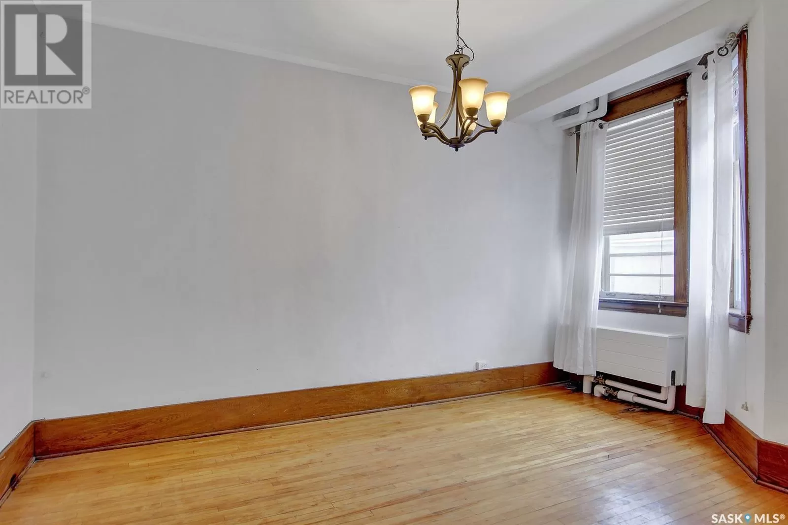 Experience the timeless character of this two-bedroom condo in the iconic Bartleman building. Featuring beautiful original hardwood flooring throughout the bedrooms, living room, and formal dining area, this home exudes warmth and classic elegance. The kitchen offers generous cupboard space and a cozy dining nook, with direct access to a private balcony and exterior staircase, an ideal spot for relaxing or hosting BBQs. The spacious 4-piece bathroom includes a convenient linen closet for extra storage, while the primary bedroom boasts a large walk-in closet to meet your organization needs. Perfectly situated within walking distance to Downtown, Wascana Park, and the General Hospital, this condo combines comfortable living with exceptional location. Donât miss your chance to own a unique home full of character in one of the cityâs most sought-after areas. (id:27476)