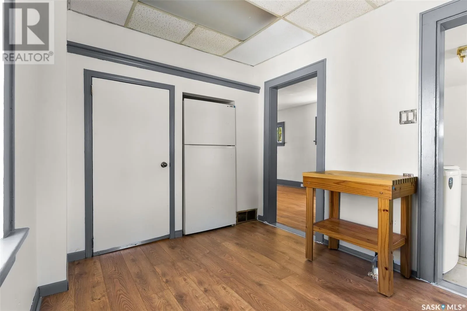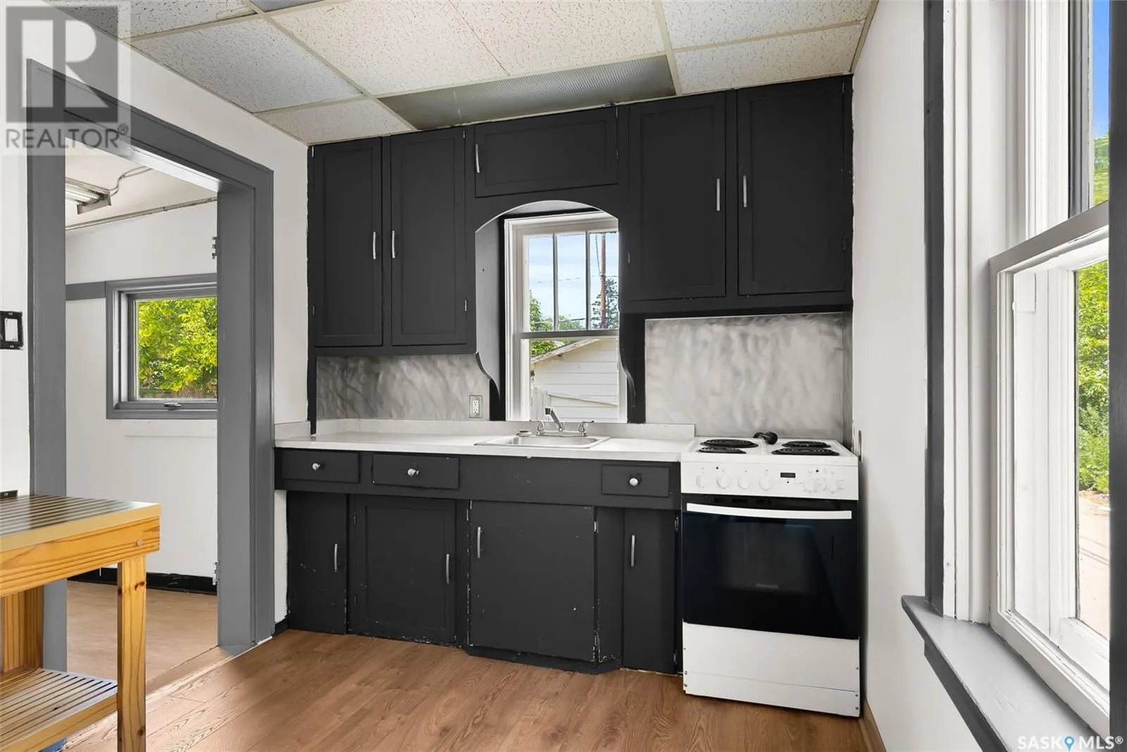 Welcome to this charming 1 1/4 storey home, nestled on a generous lot in the heart of Rosemont. Built in 1930, this charming home offers 2 bedrooms and 1 bathroom, complete with a classic clawfoot tub. The main floor features beautiful hardwood flooring in the cozy living room and bedroom, the kitchen is functional and has a view to the yard, along with the added convenience of main floor laundry. Upstairs, you'll find the second bedroom, a 3 piece bathroom bathroom, and additional storage spaceâperfect for keeping things tidy and organized.Step outside to enjoy the spacious yard, which includes a large deck ideal for relaxing or entertaining, a shed for extra storage, extra parking, and an oversized single detached garage. Whether you're a first-time home buyer or looking to build your investment portfolio, this property has great potential. (id:27476)