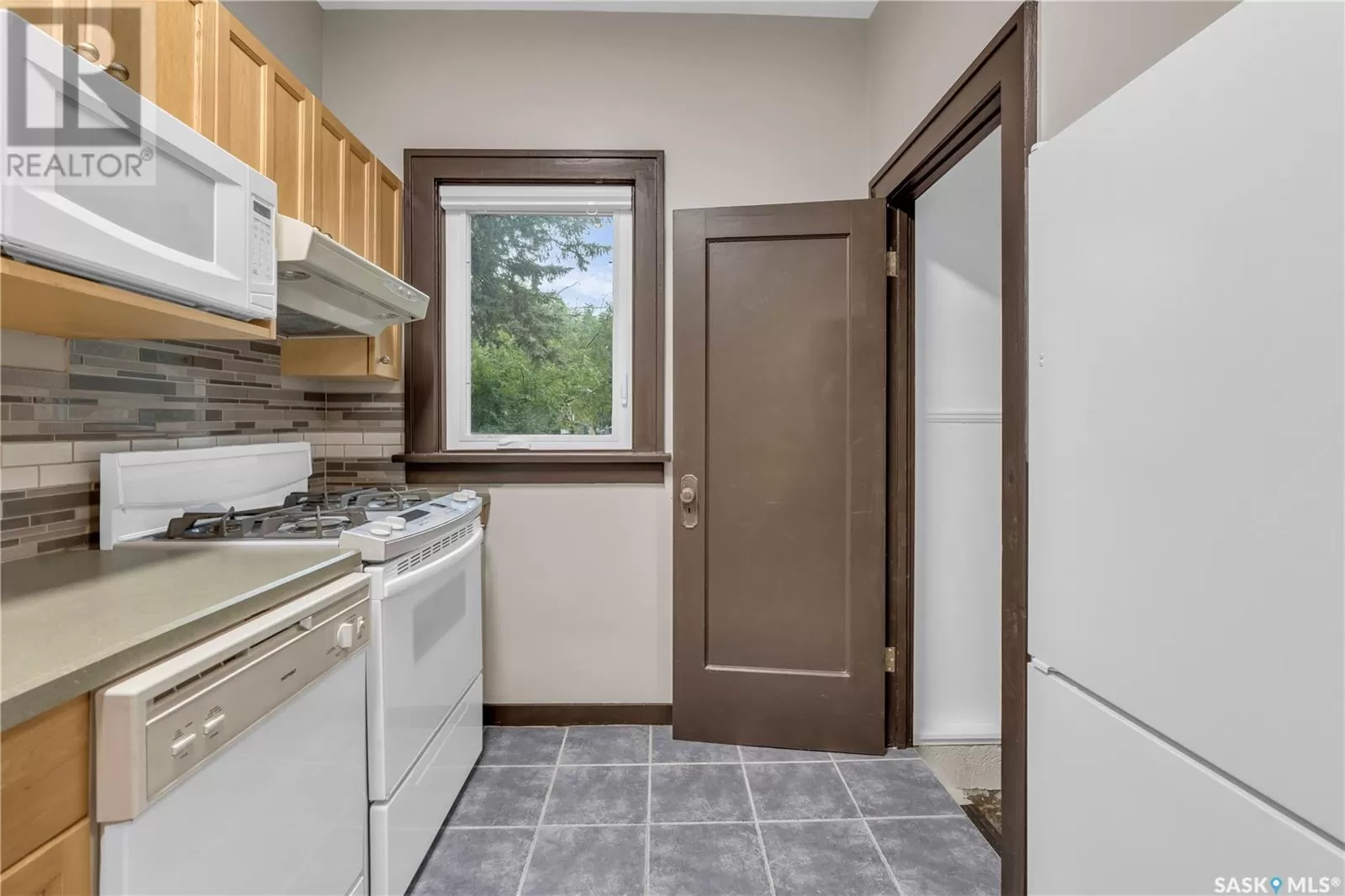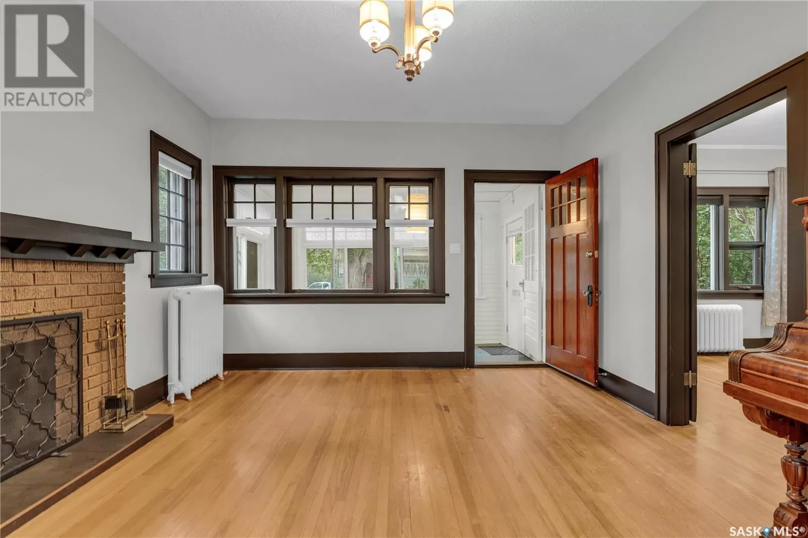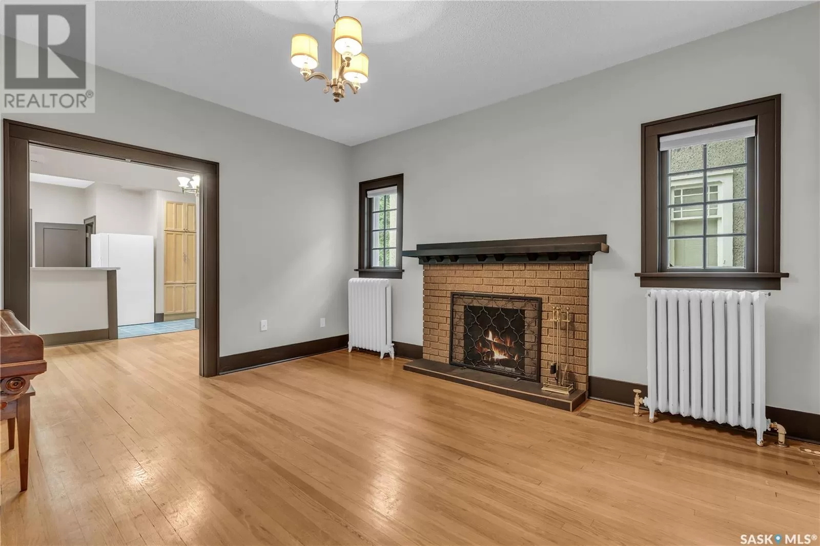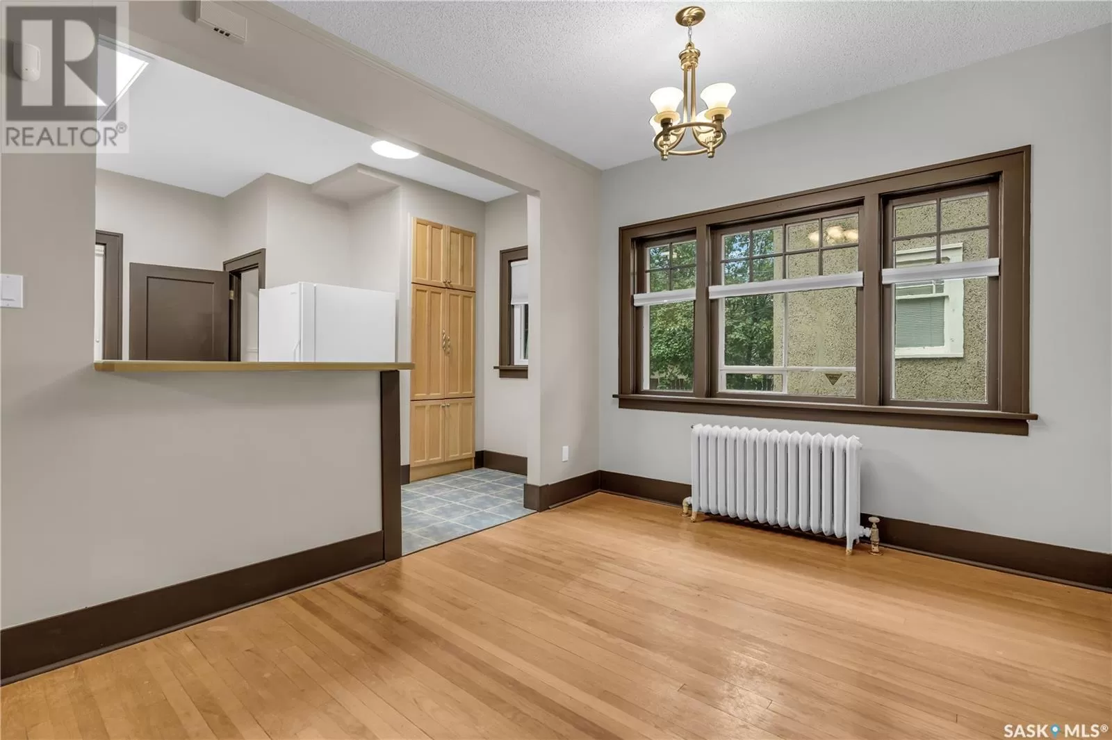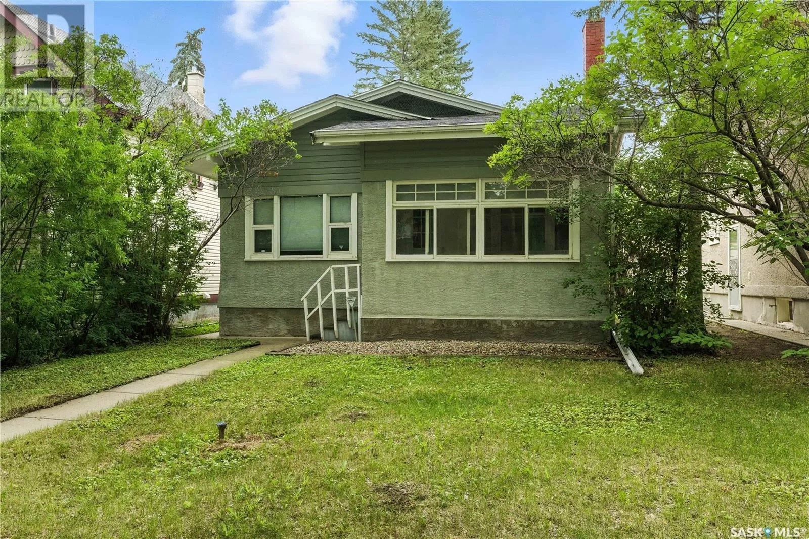 Fantastic starter home or revenue property in the highly desireable Cathedral neighbourhood. Located on a quiet street a short walk away from restaurants, a grocery store and coffee shops, this well cared for bungalow is move-in ready. The character home features a nice sized enclosed porch bringing in plenty of light from the front street. Upon entering the home you will see original hardwood throughout the main. The living room is centered around an original fireplace (owner has never used). A large dining room separates the living room from the kitchen. Kitchen has updated maple cabinets, dishwasher, gas range and backsplash. Off the living room is a large primary bedroom with 2 additional bedrooms and a 4 piece bath down the hall. Basement is undeveloped but in great condition. Back yard is fully fenced and ready for your family pet, has a convenient shed and parking for 2 vehicles. Book your viewing today. (id:27476)